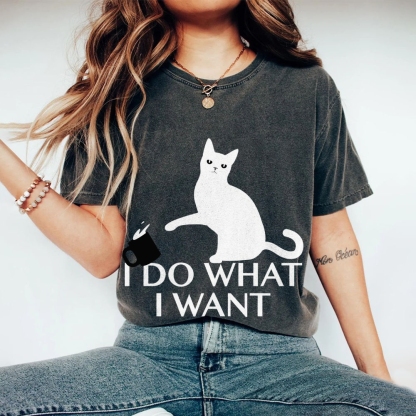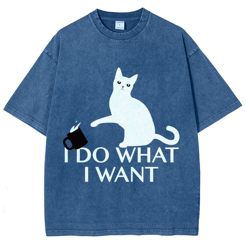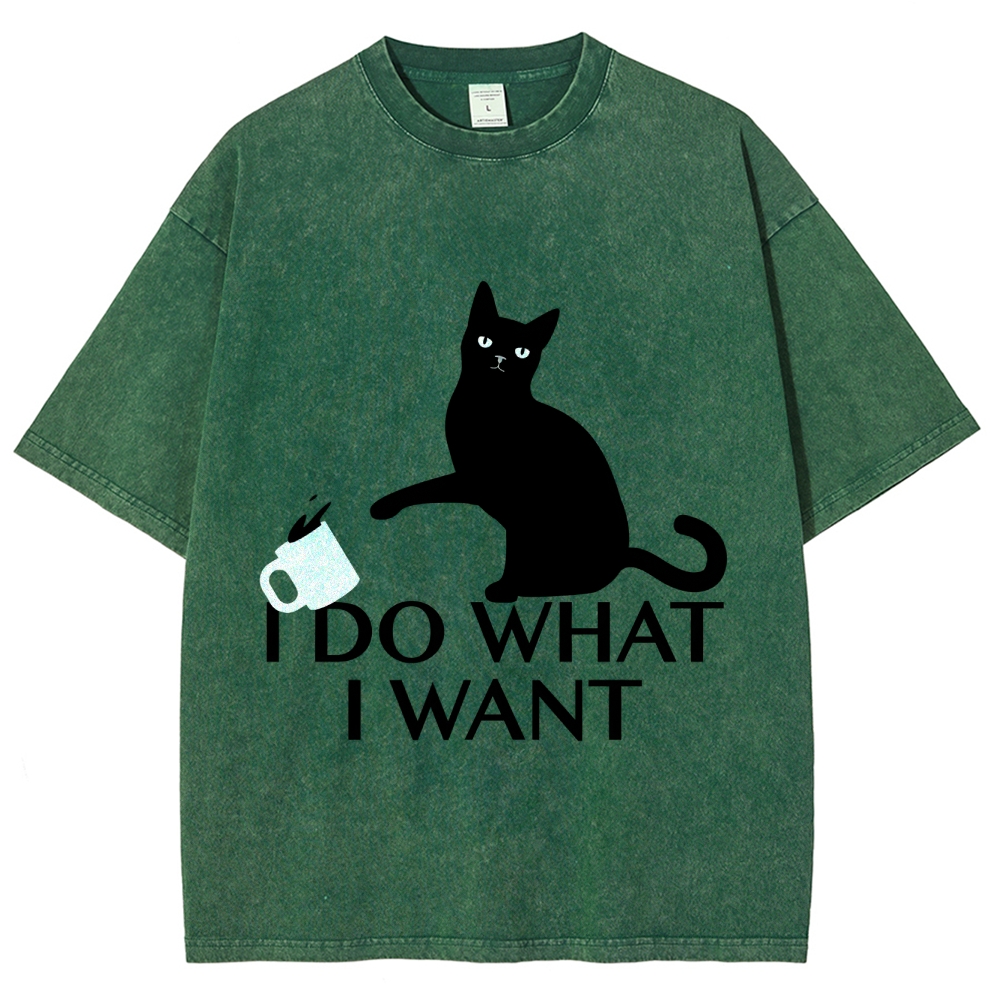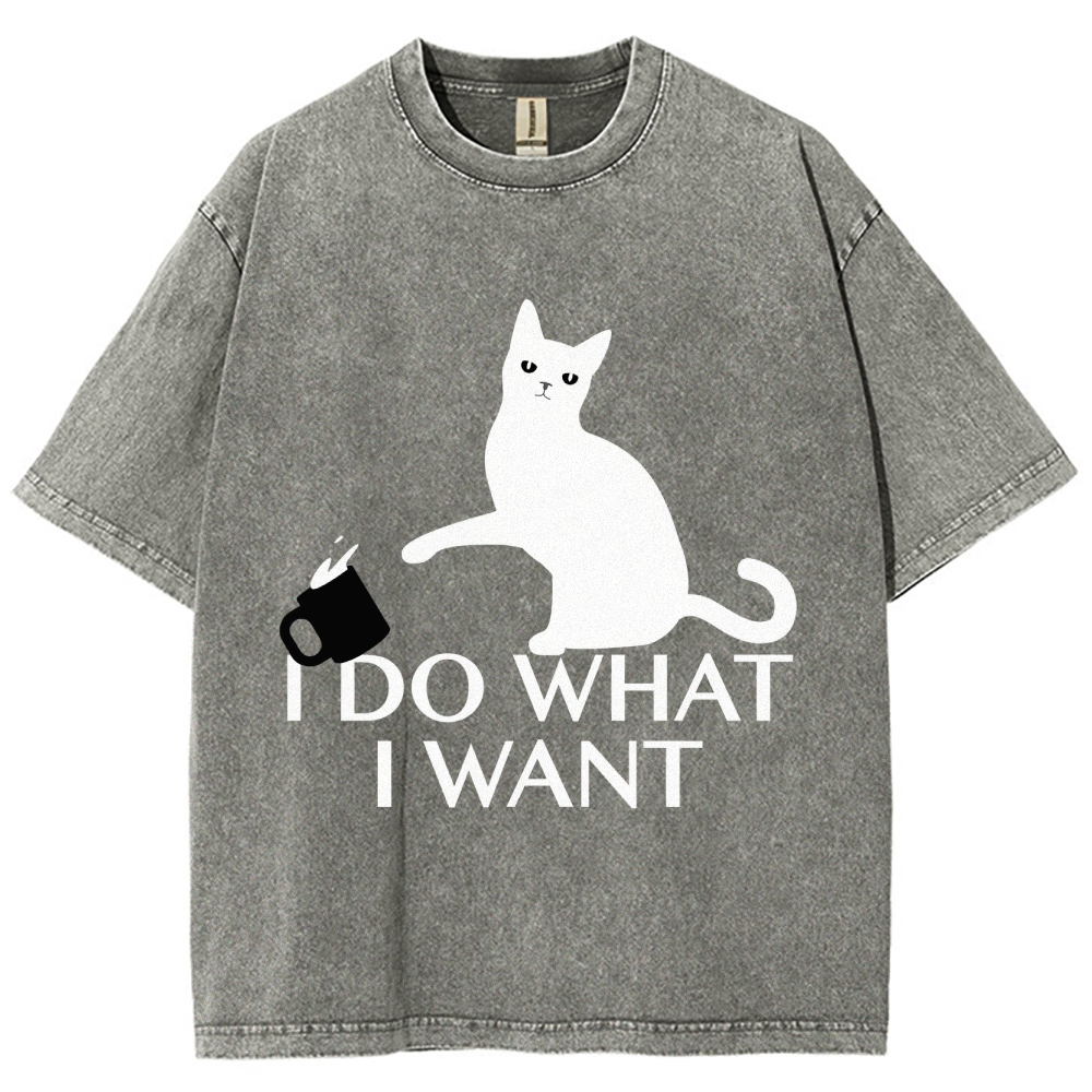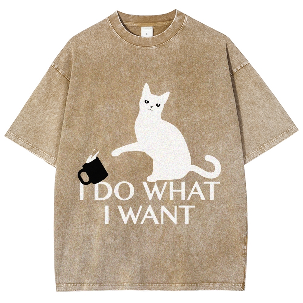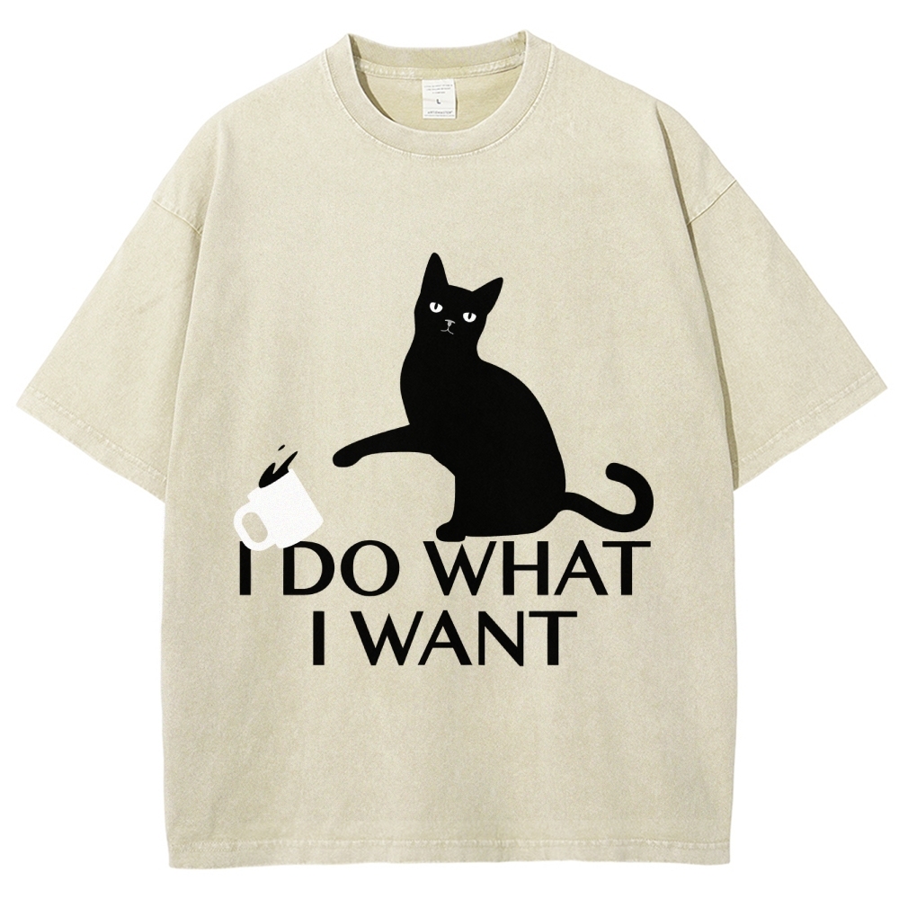 Naughty Cat Washed Vintage Short Sleeves T-Shirt
