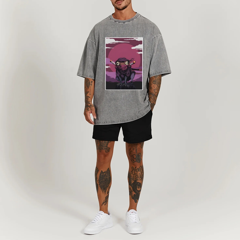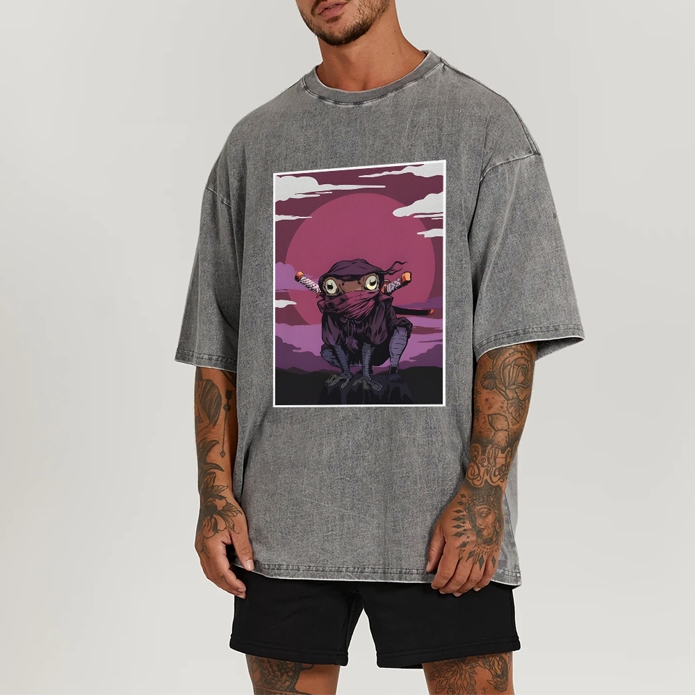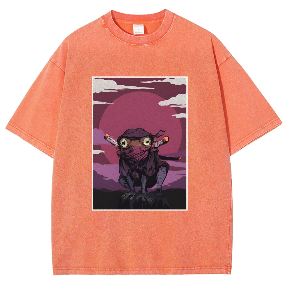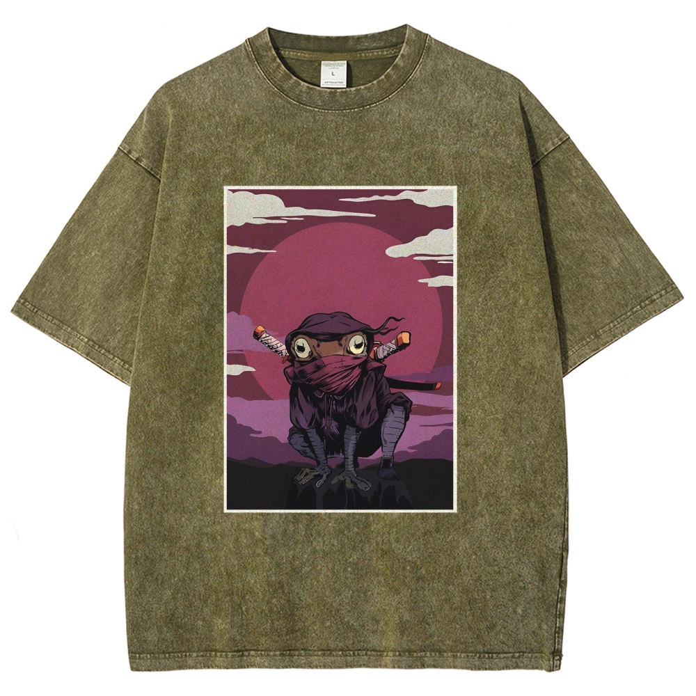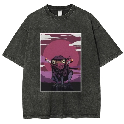 Ninja Frog Washed Vintage Short Sleeves T-Shirt