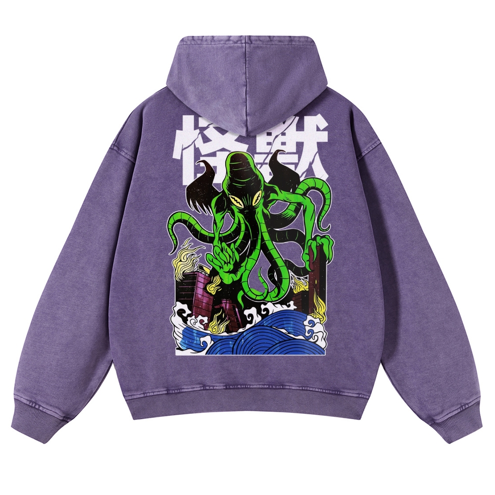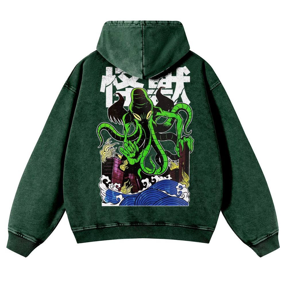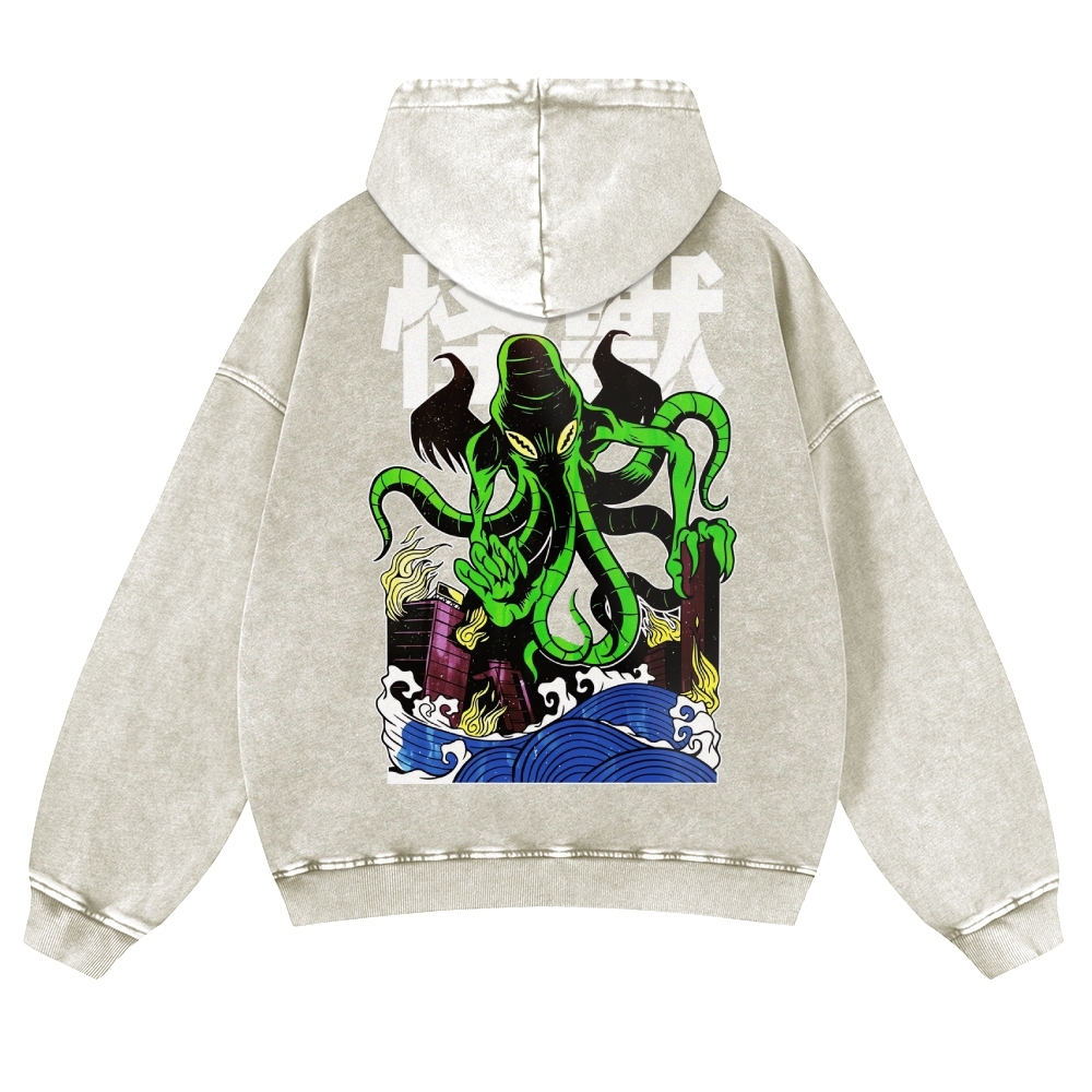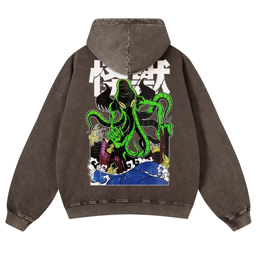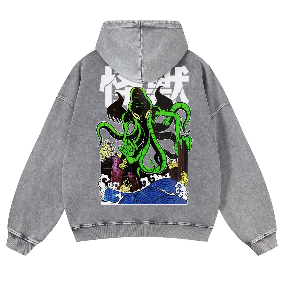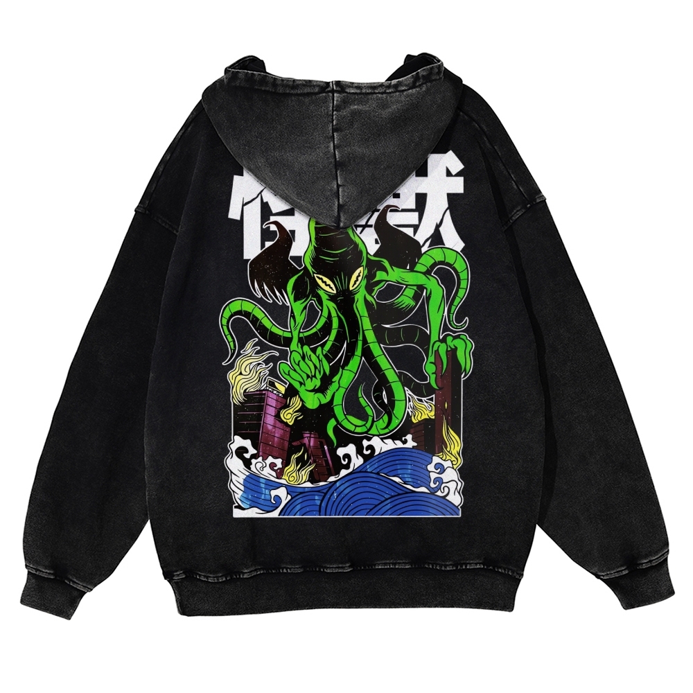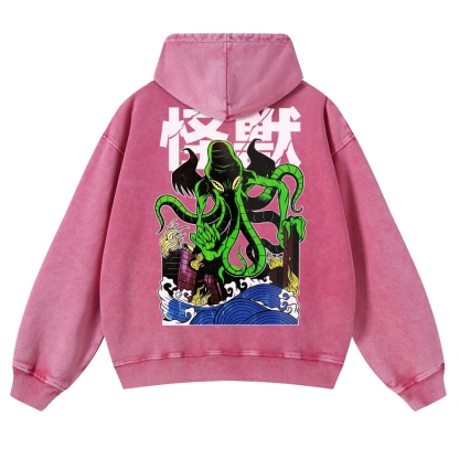 Octopus Monster Casual Vintage Washed Hoodie