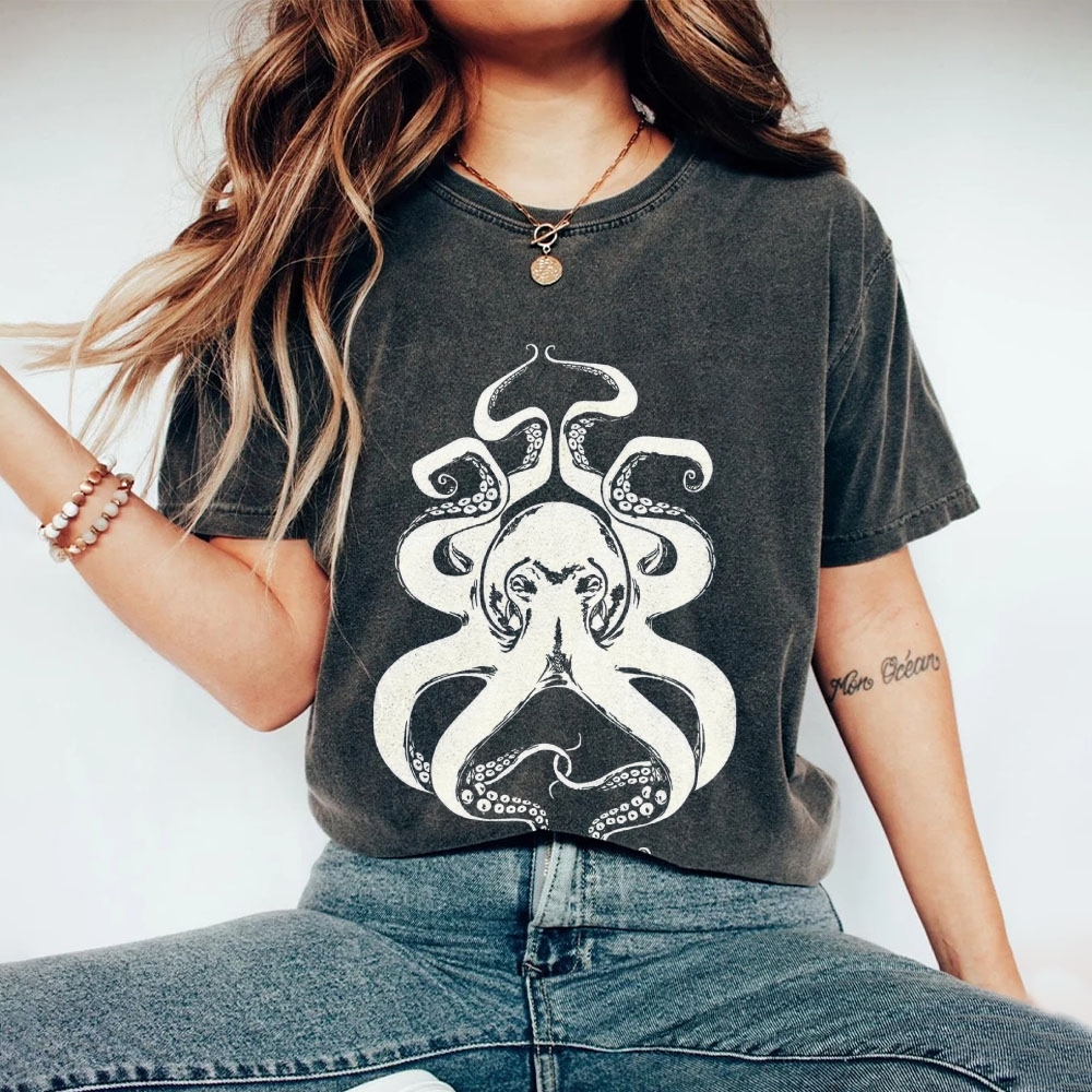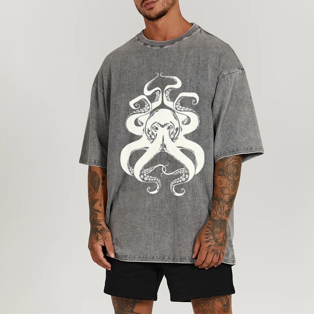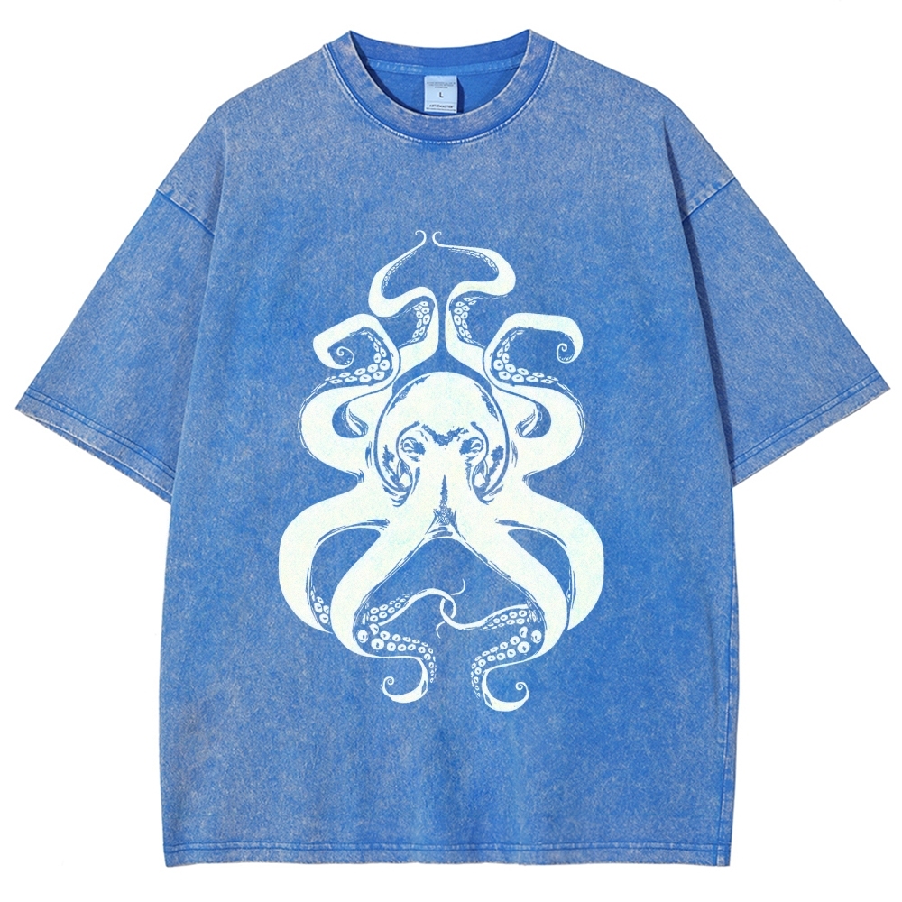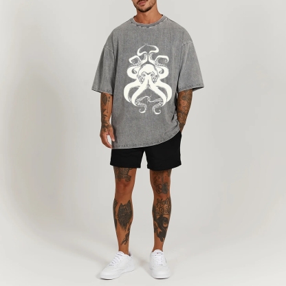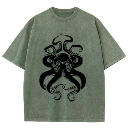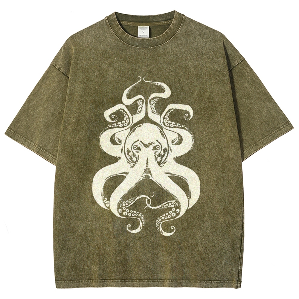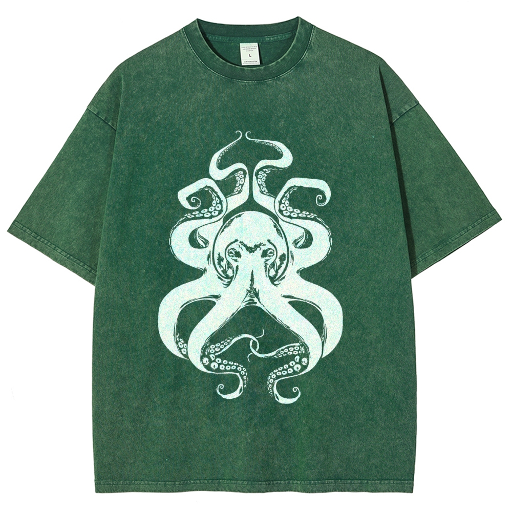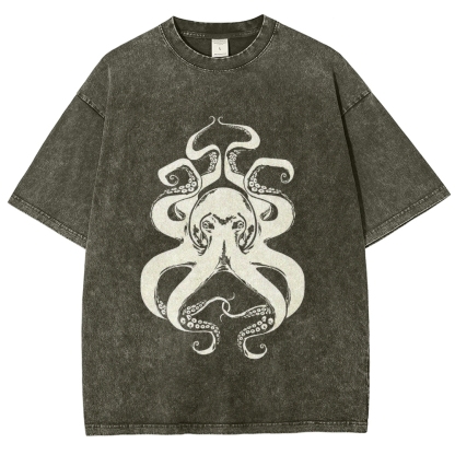 Octopus Printed Washed Vintage Short Sleeves T-Shirt