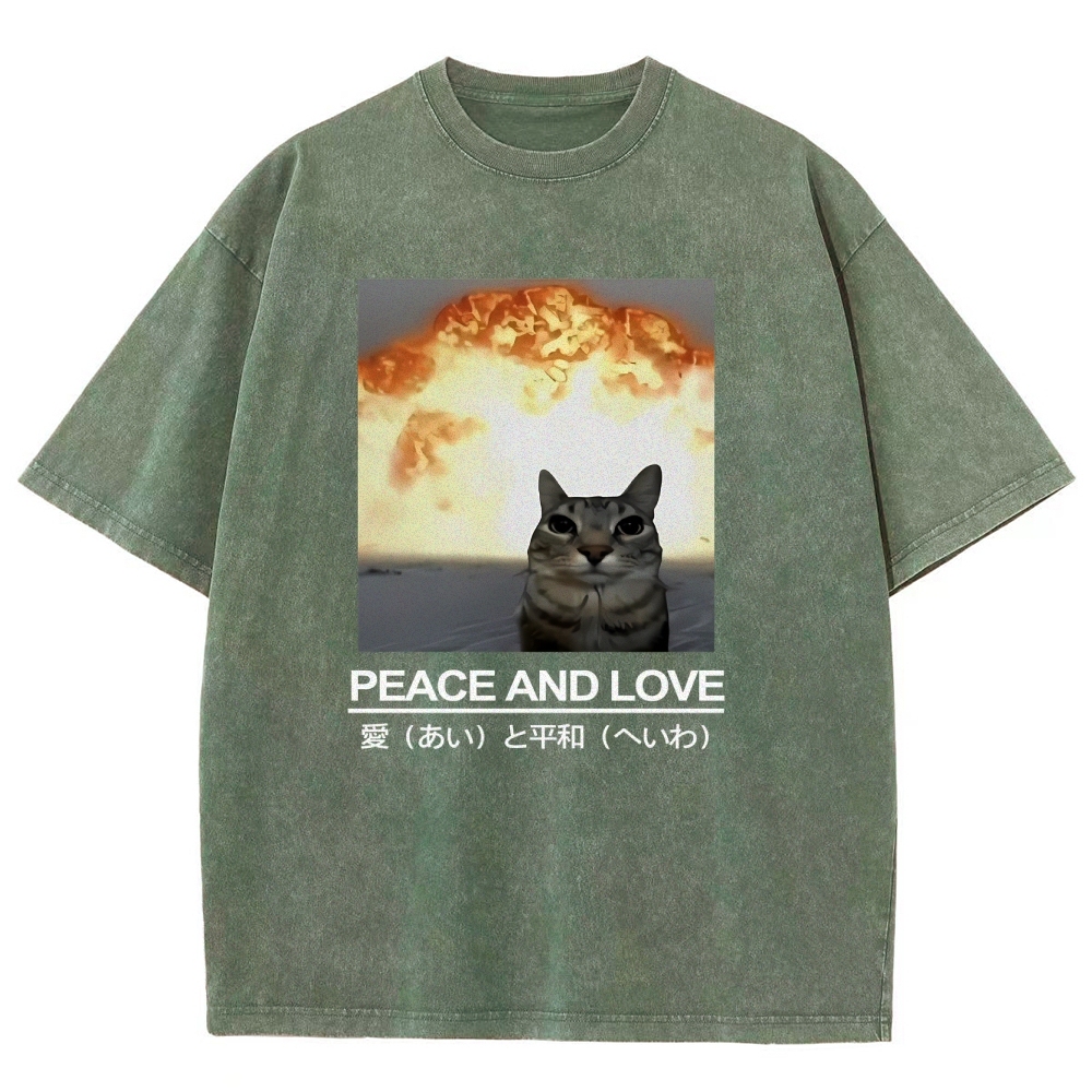 Peace And Love Cat Unisex Fit Washed T-Shirt