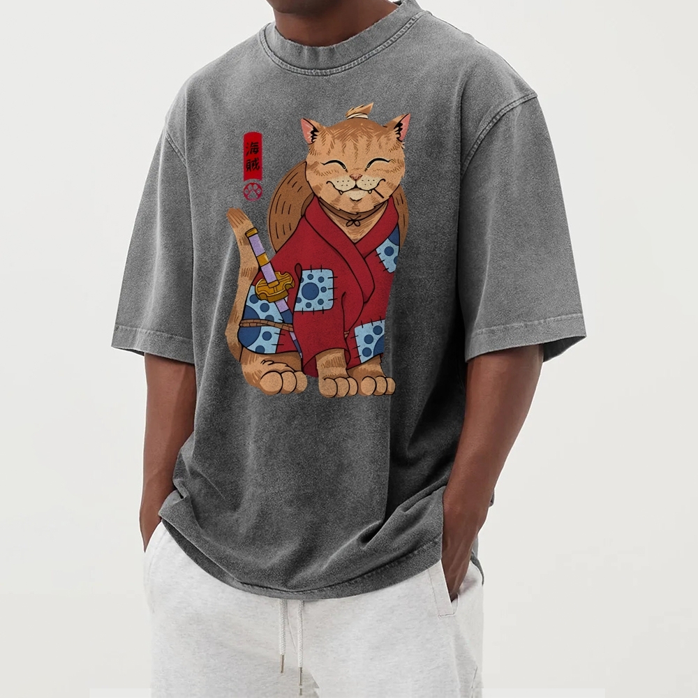 Pirate Cat Washed Vintage Short Sleeves T-Shirt