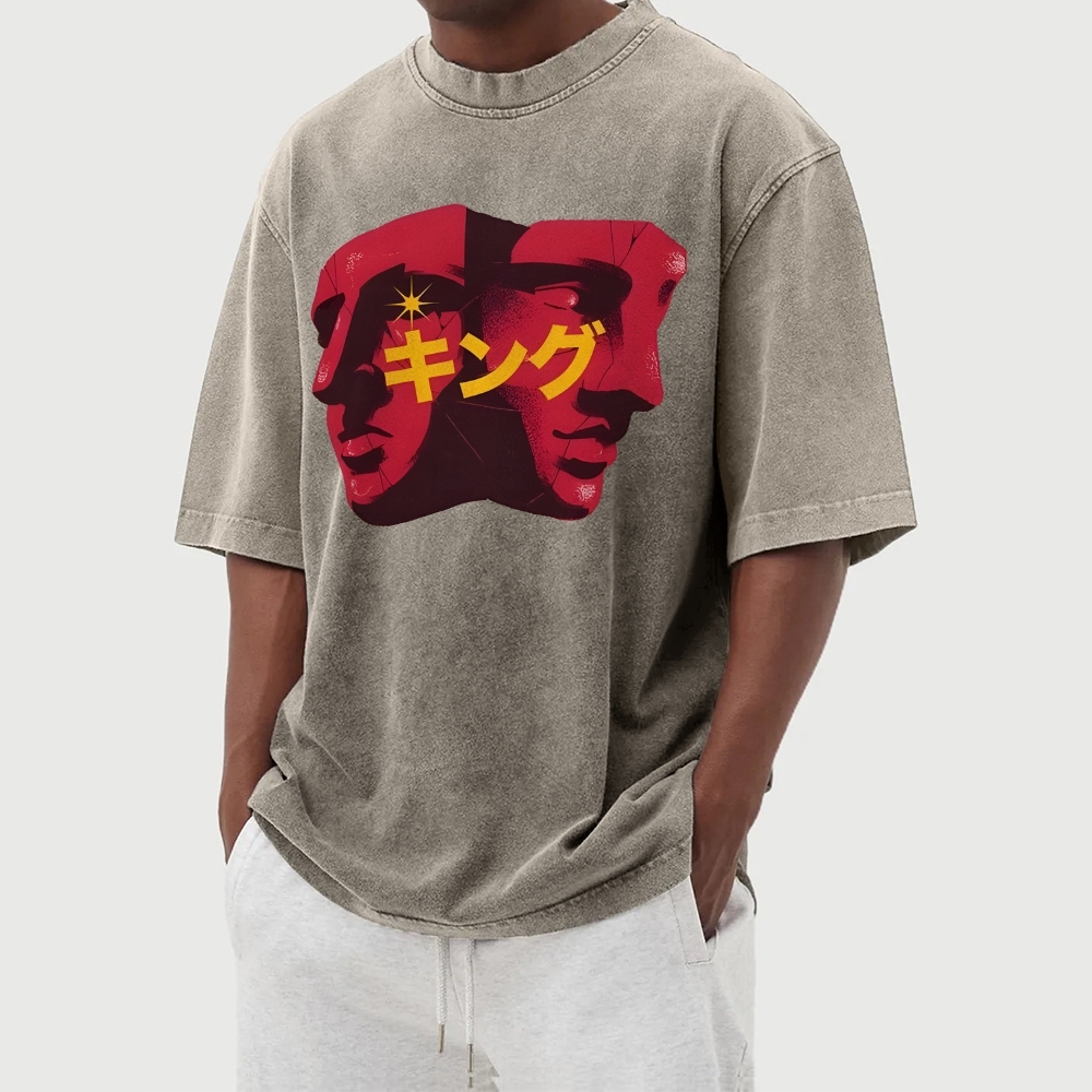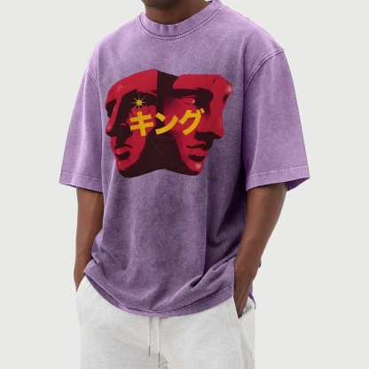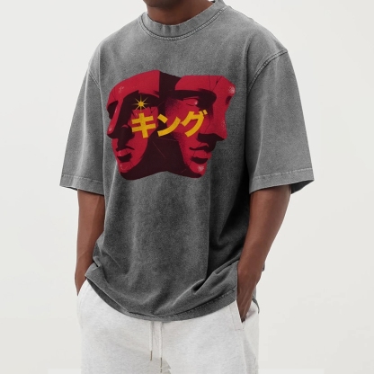 Plaster Figure Prints Washed Vintage Short Sleeves T-Shirt