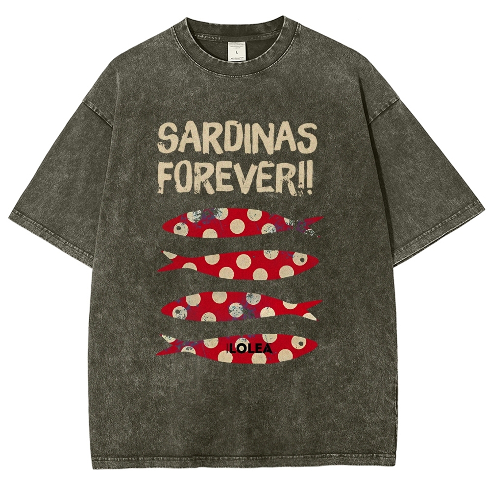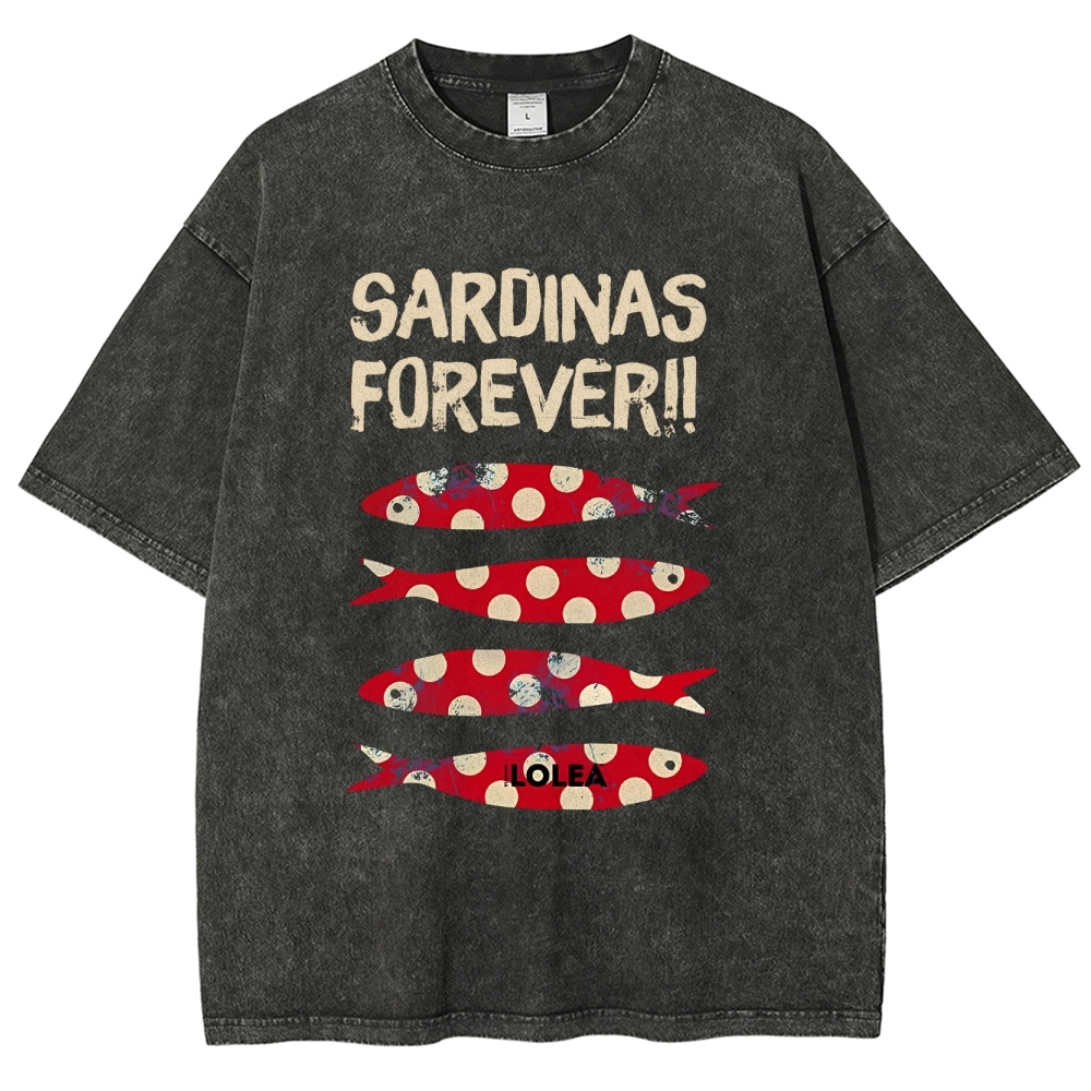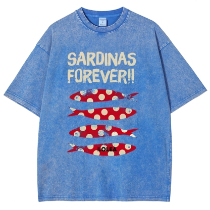 Polka Dot Fish Washed Vintage Short Sleeves T-Shirt