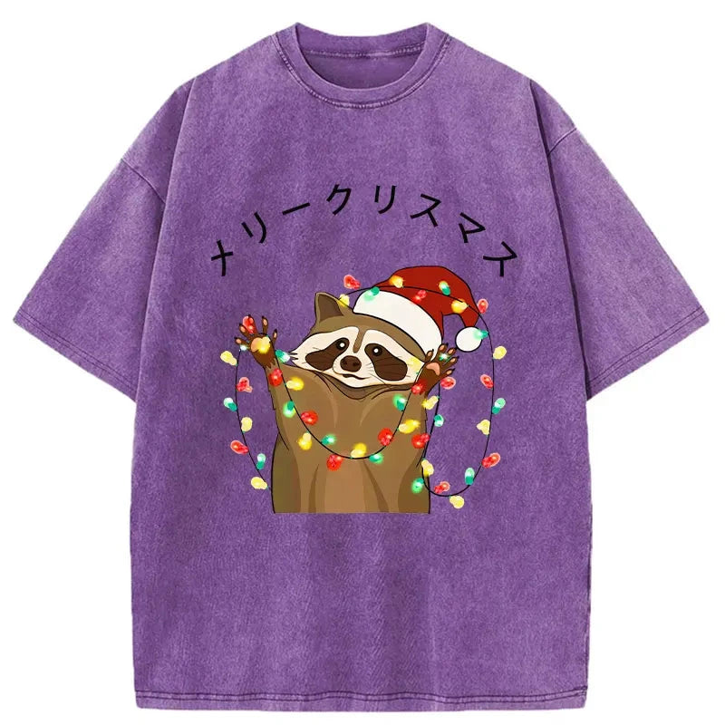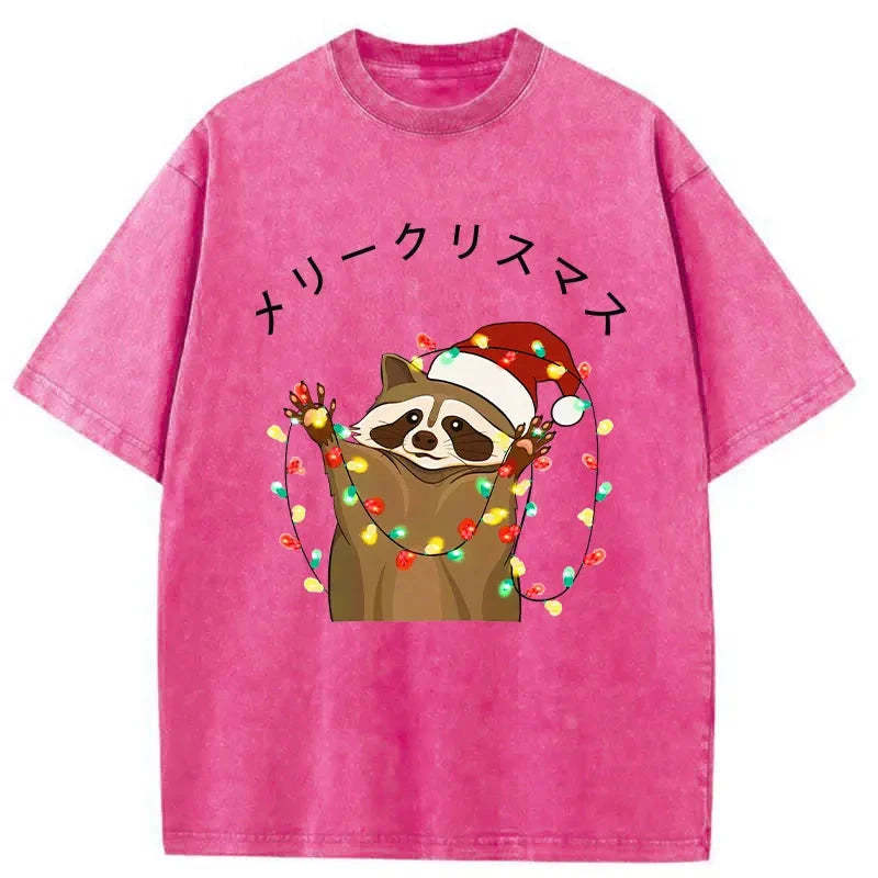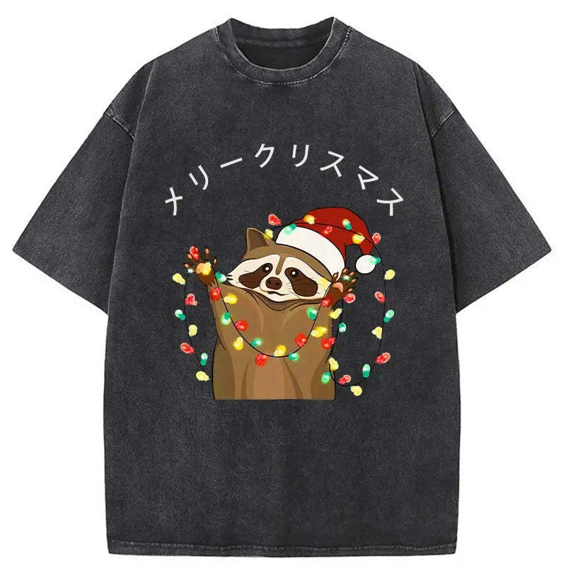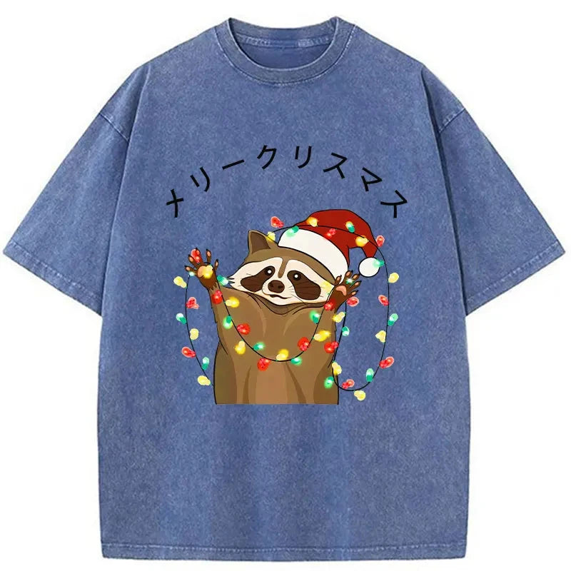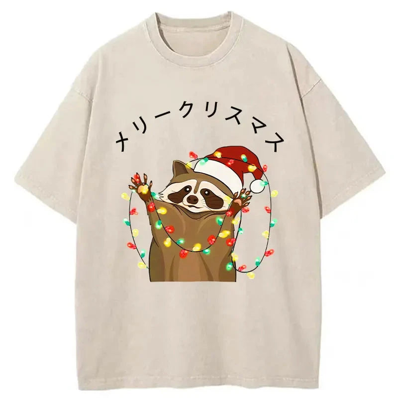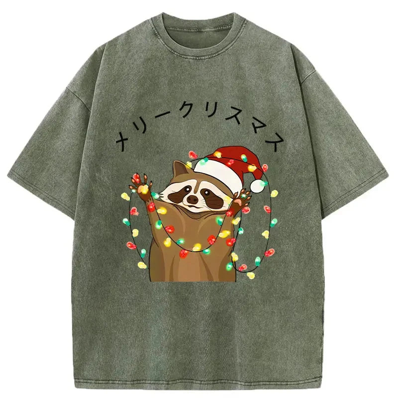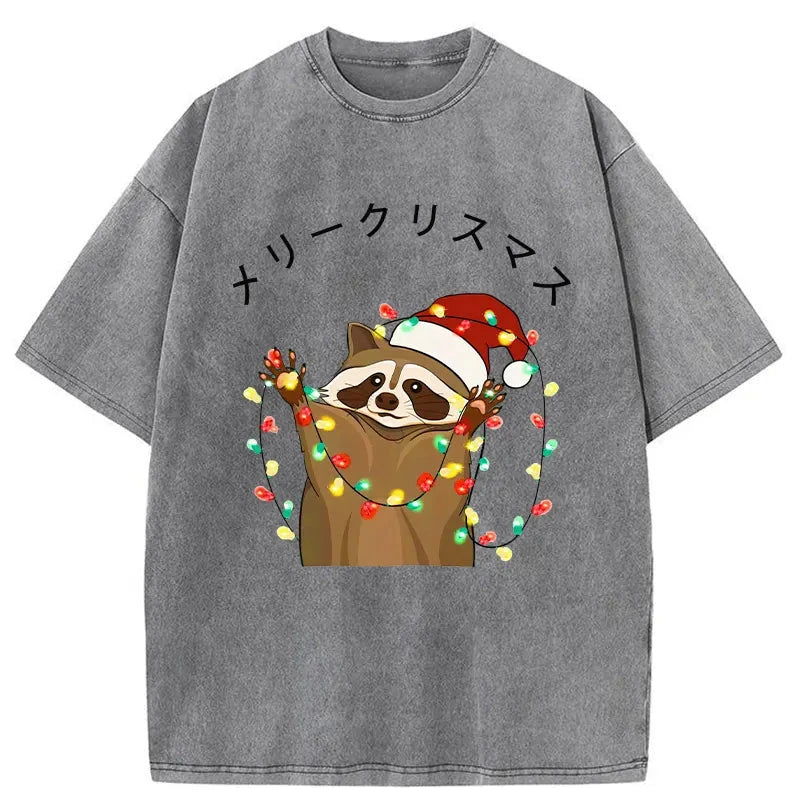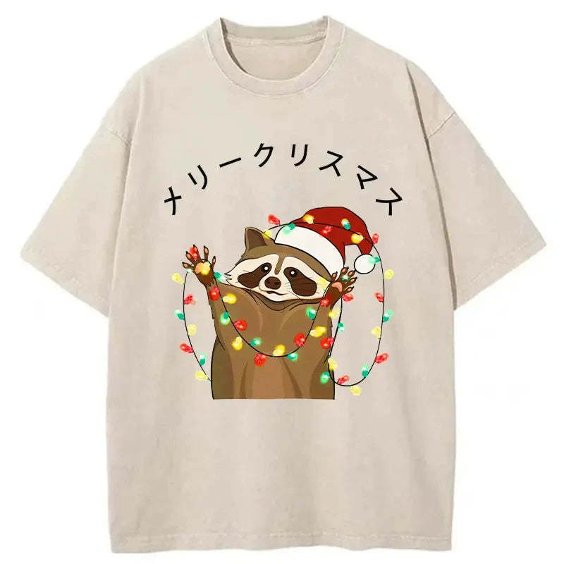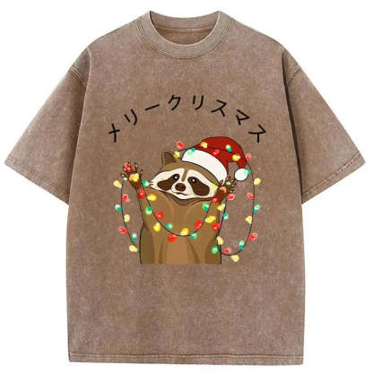 Raccoon Christmas Washed Vintage T-Shirt