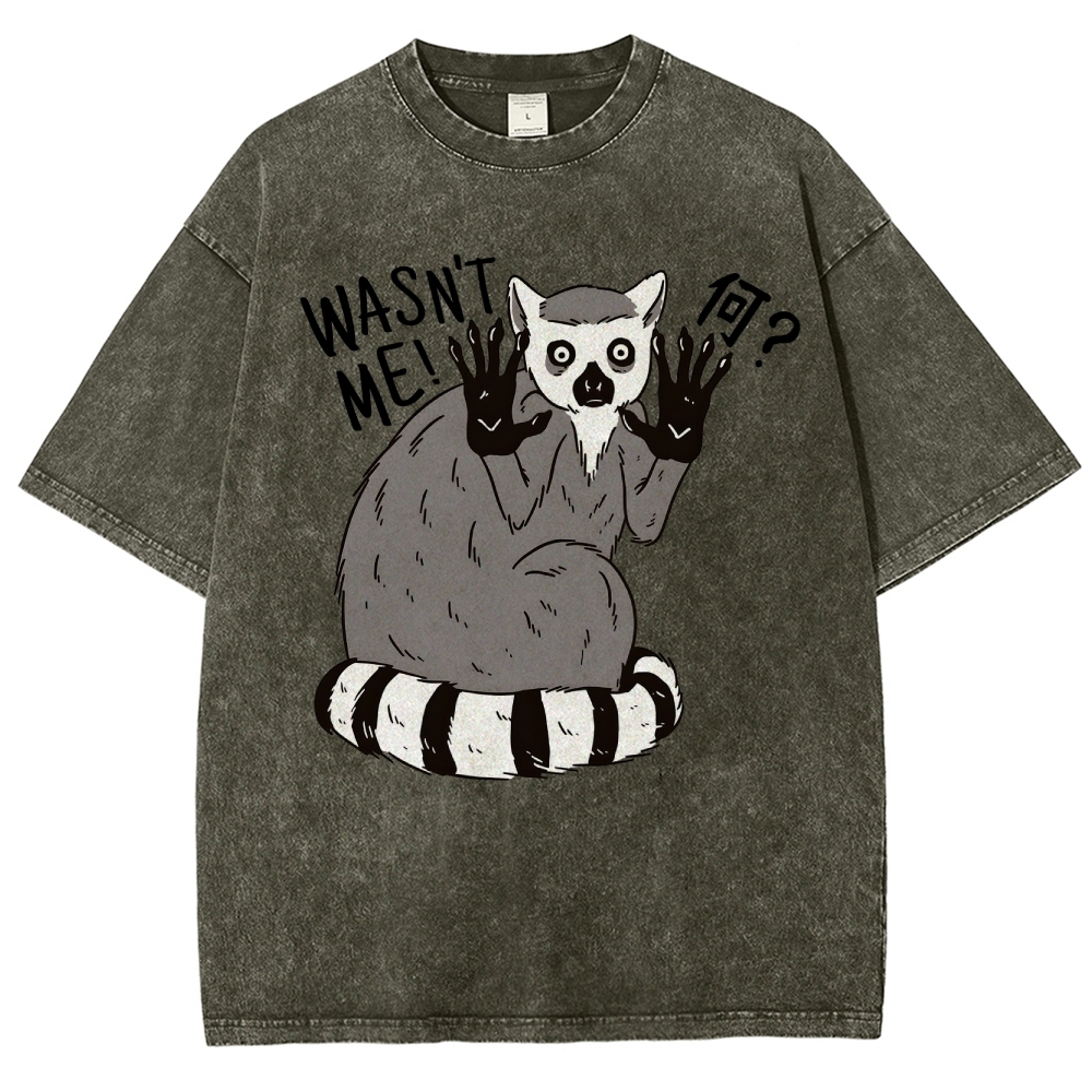 Raccoon Pattern Unisex Fit Washed T-Shirt