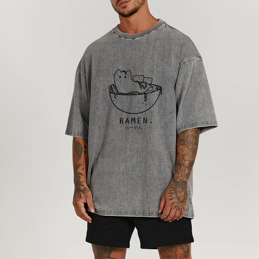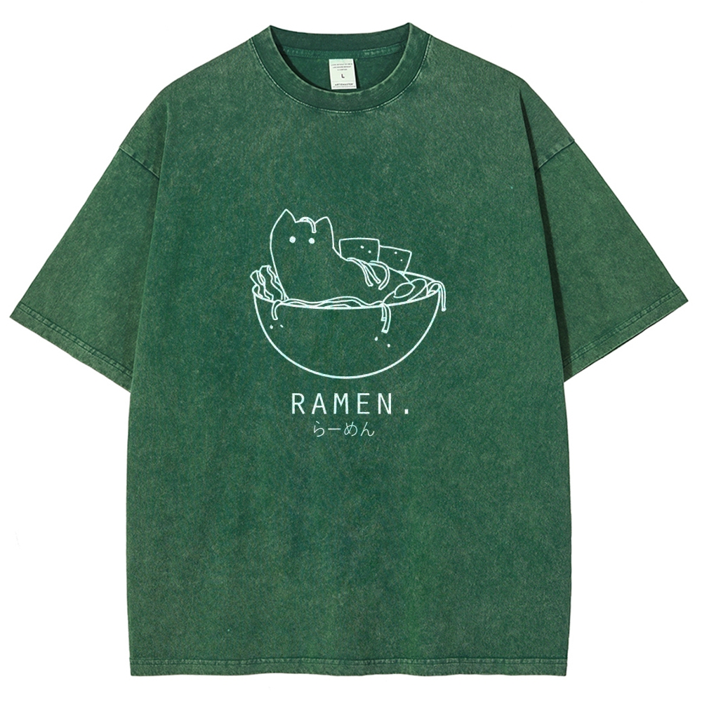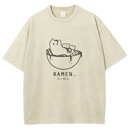 Ramen Cat Washed Vintage Short Sleeves T-Shirt