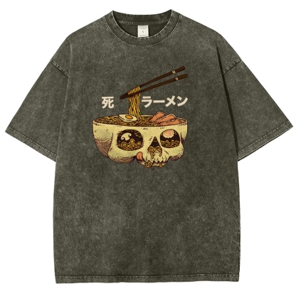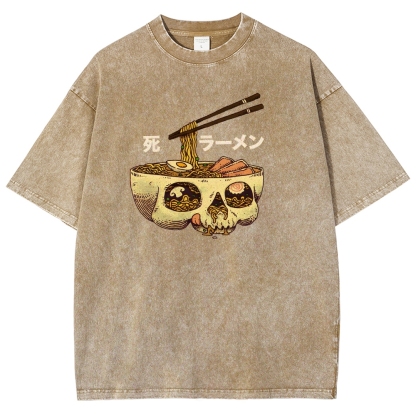 Ramen Skull Washed Vintage Short Sleeves T-Shirt