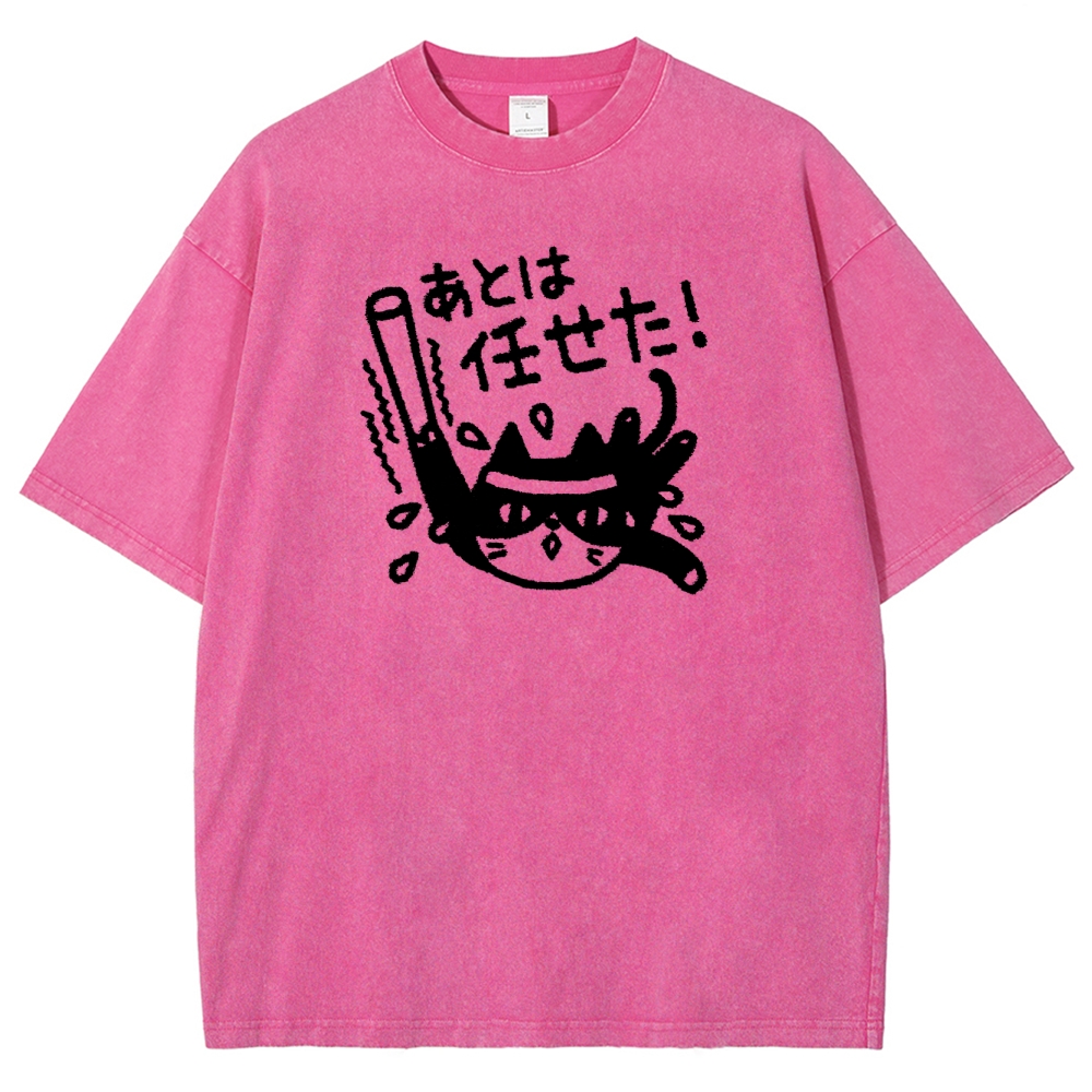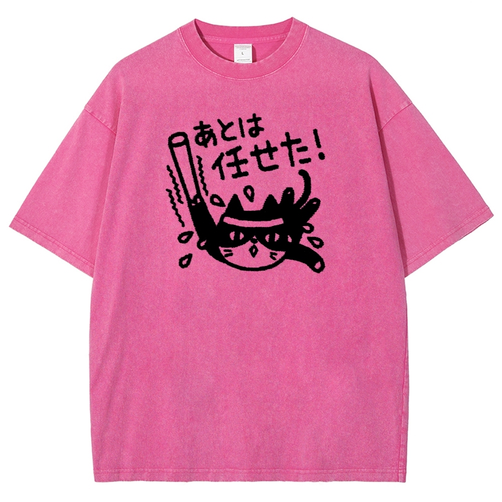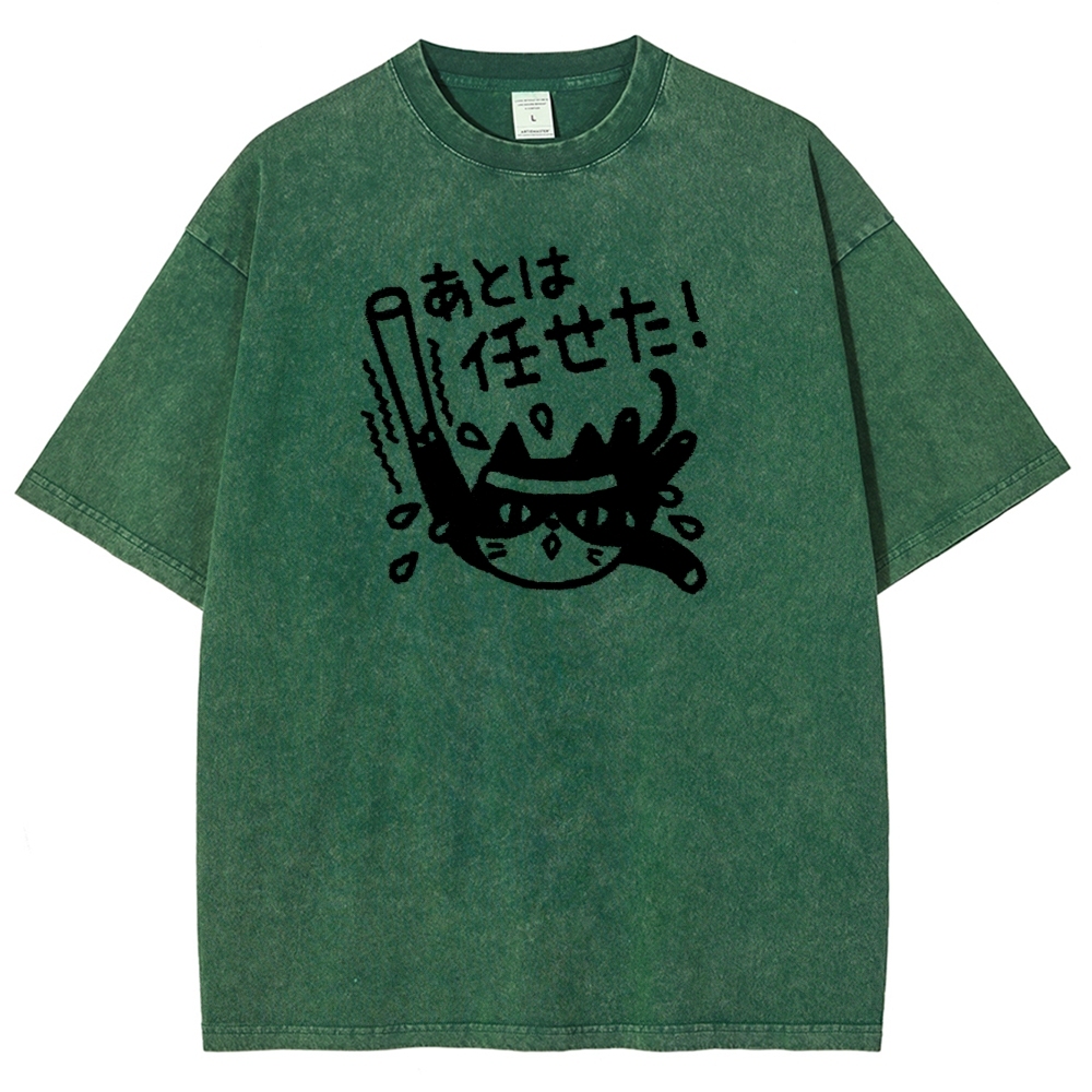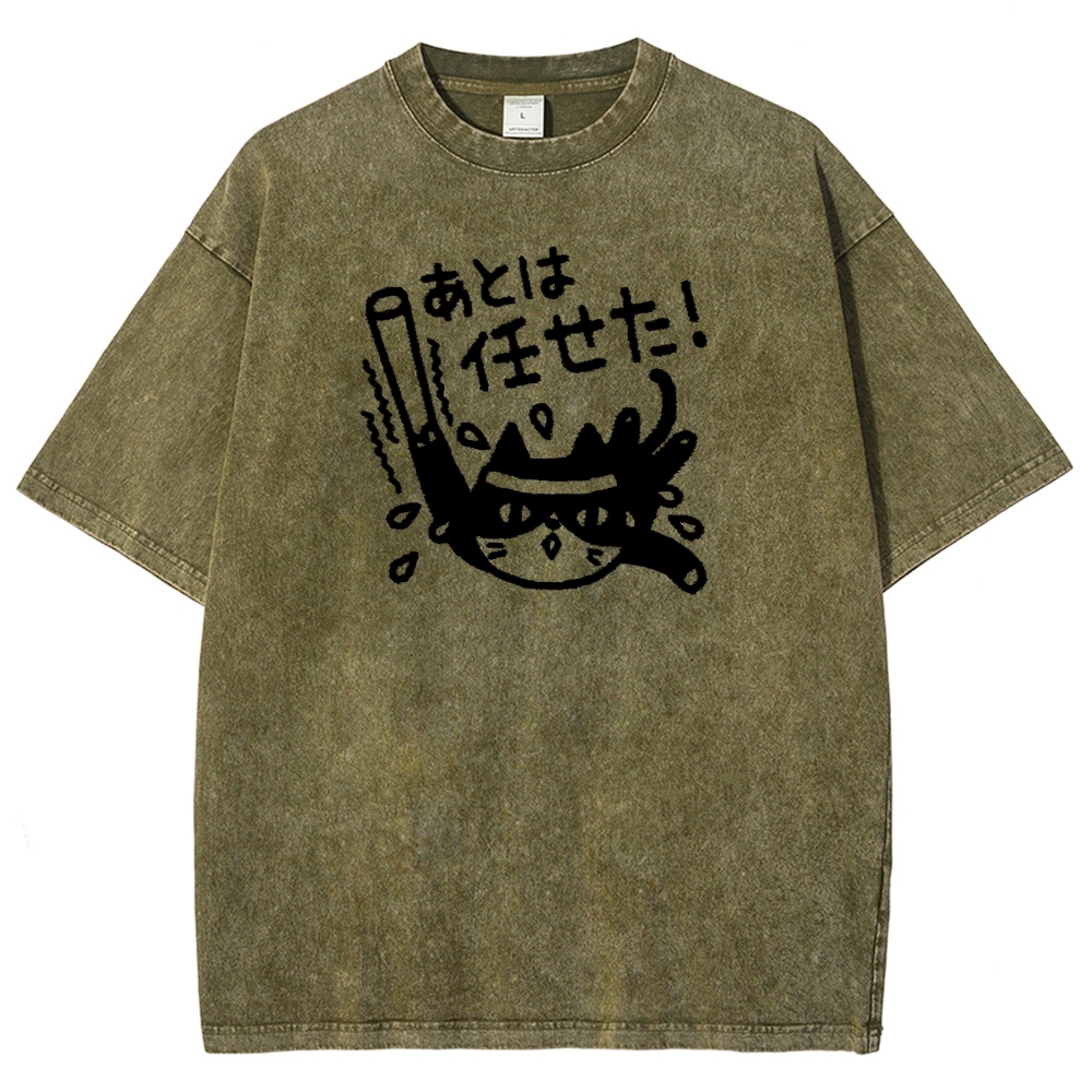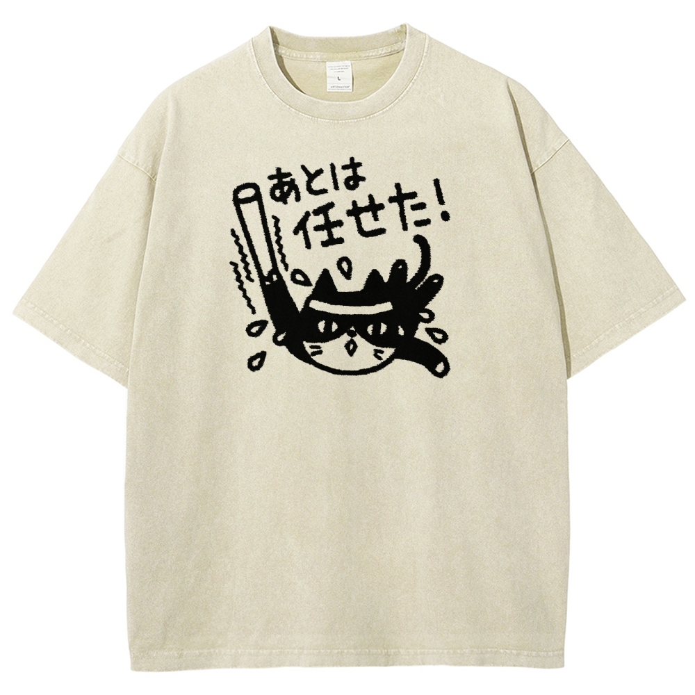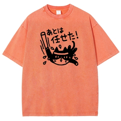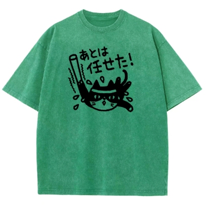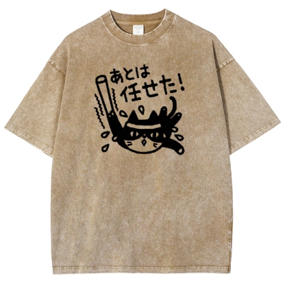Relay Race Cat Washed Vintage Short Sleeves T-Shirt