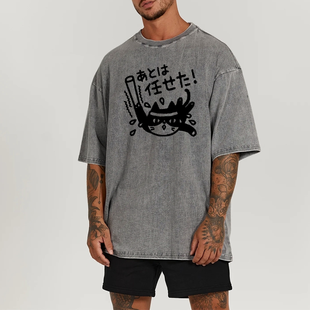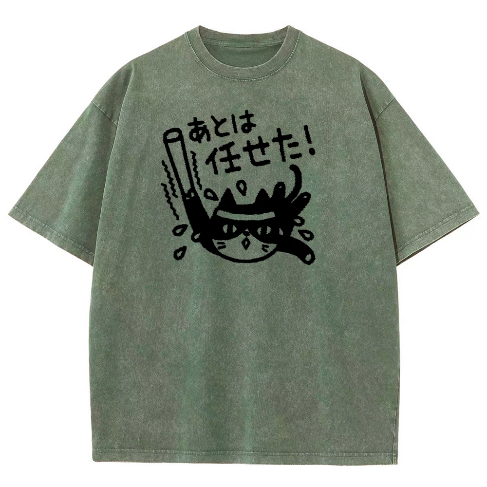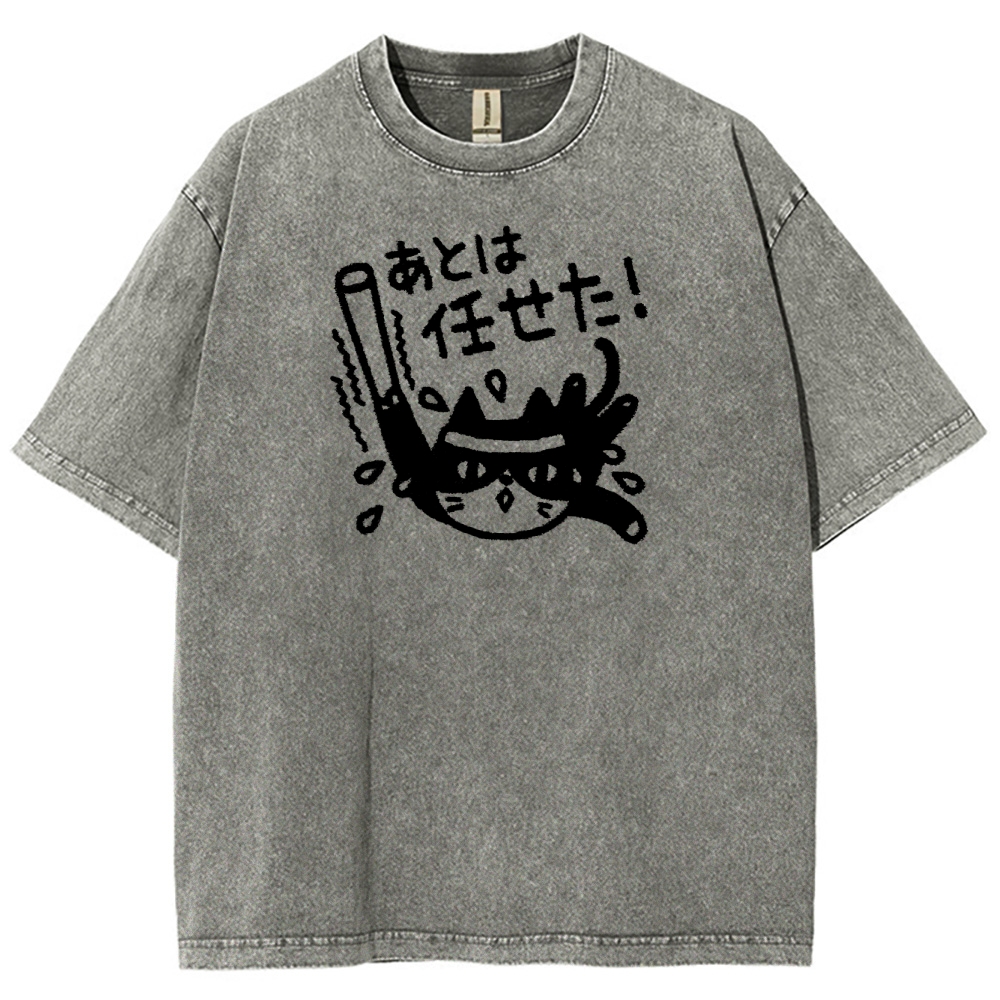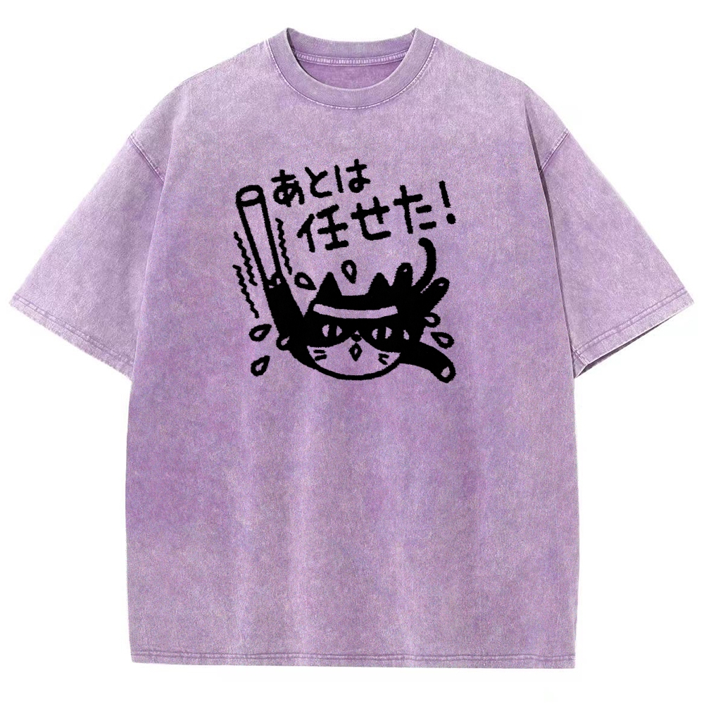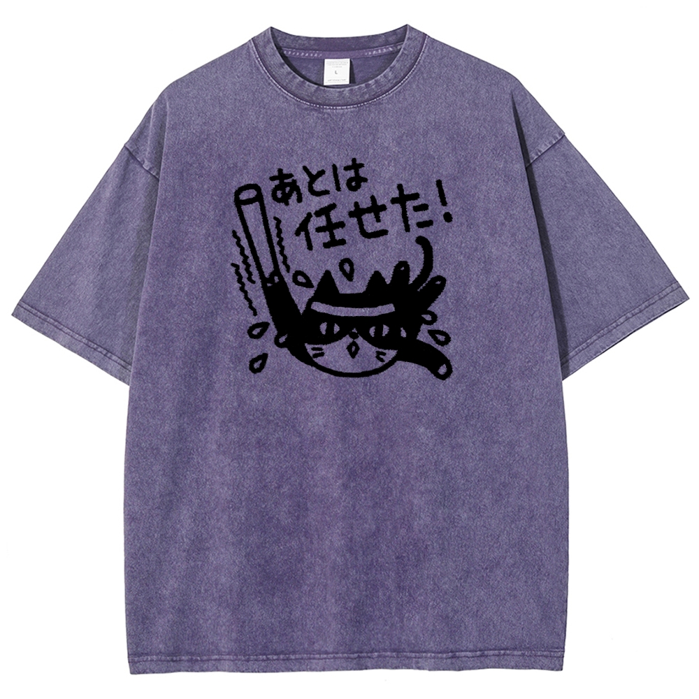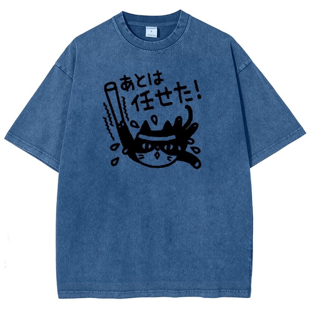 Relay Race Cat Washed Vintage Short Sleeves T-Shirt