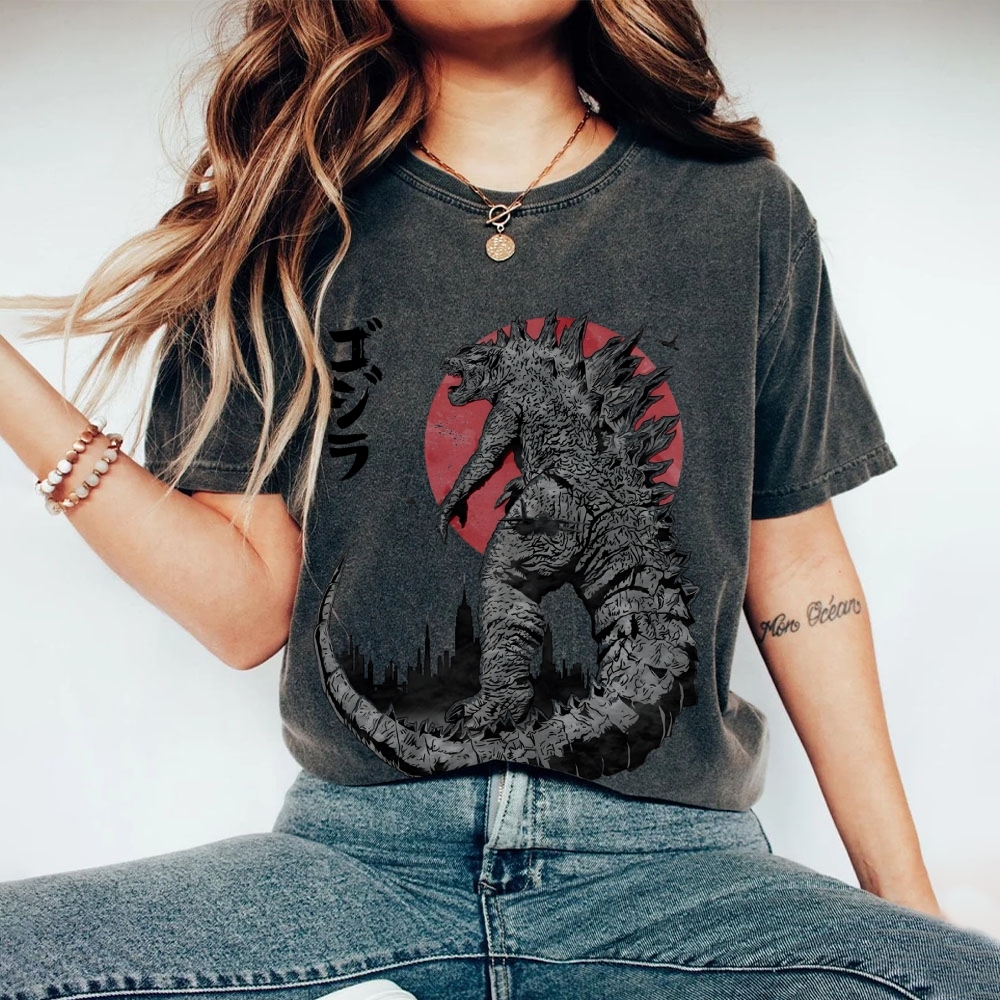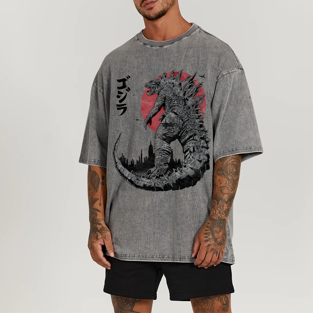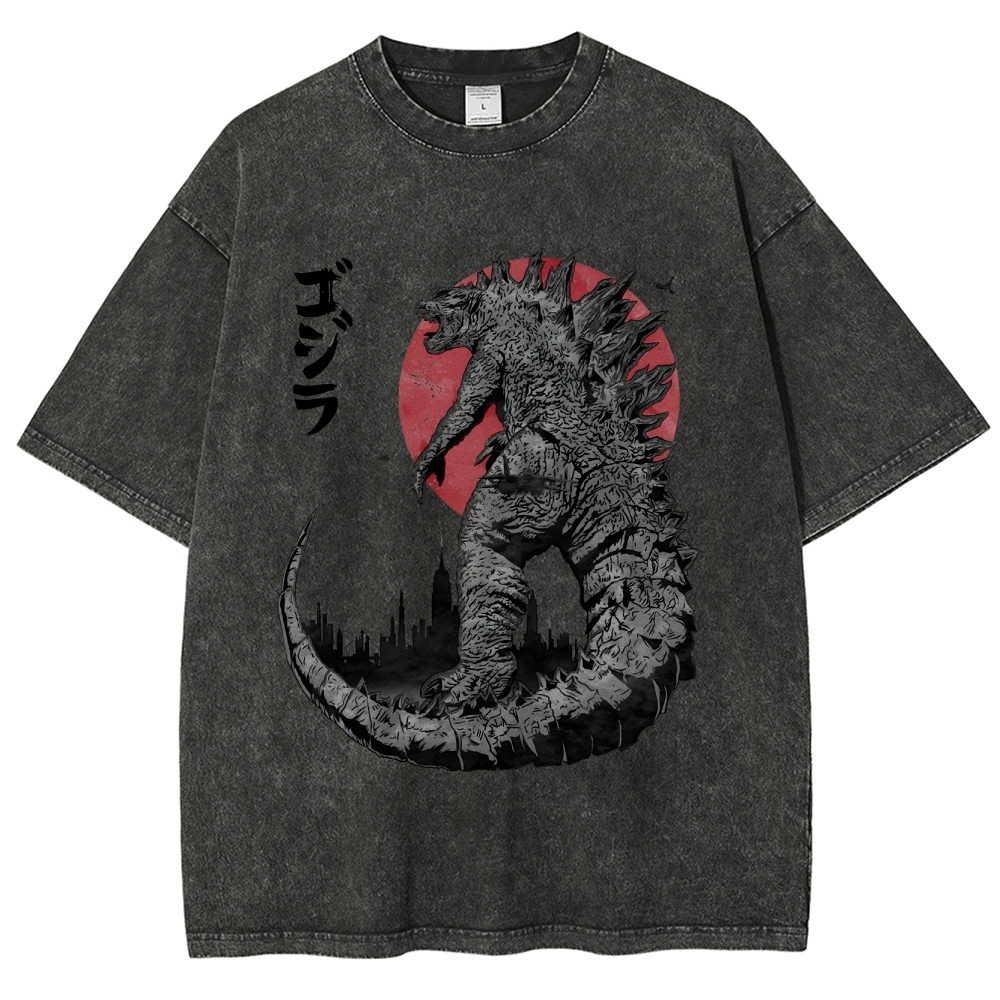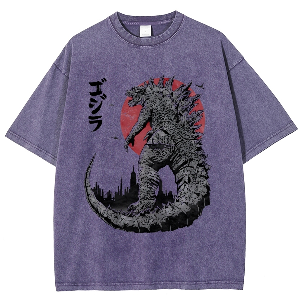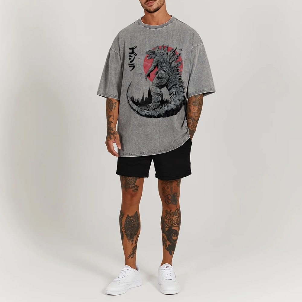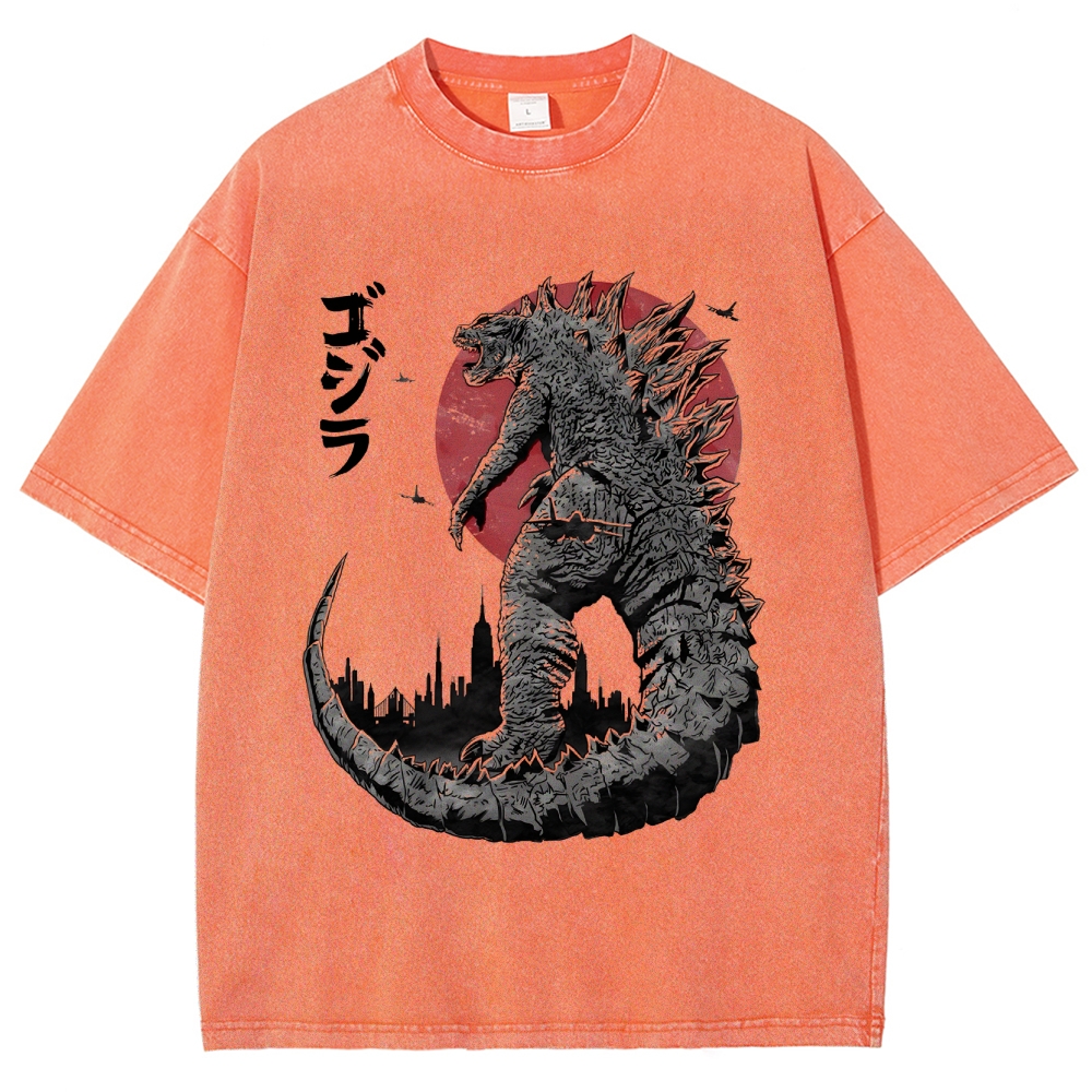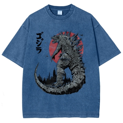 Roaring Godzilla Prints Washed Vintage Short Sleeves T-Shirt