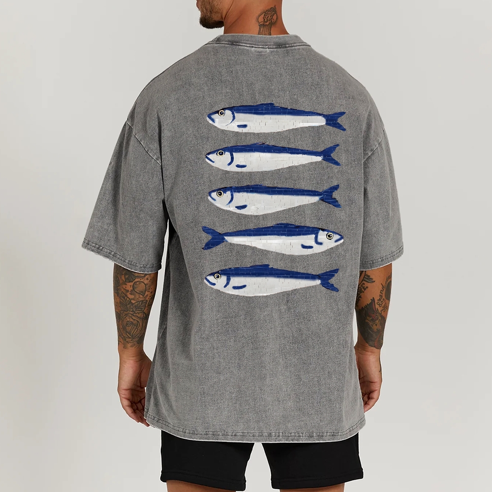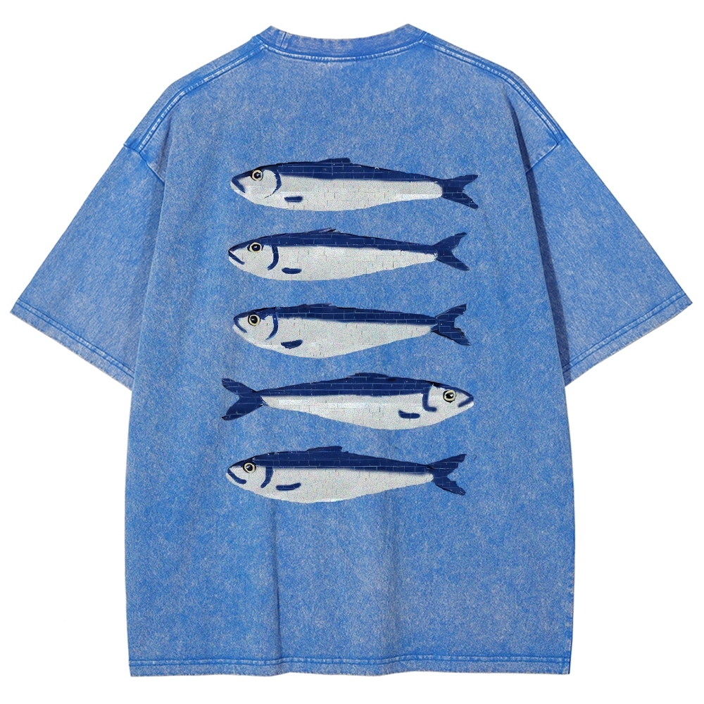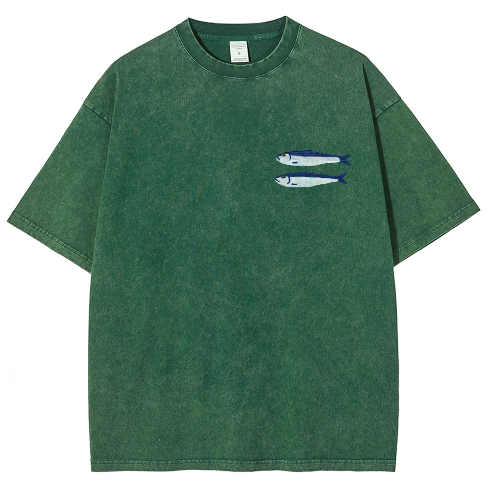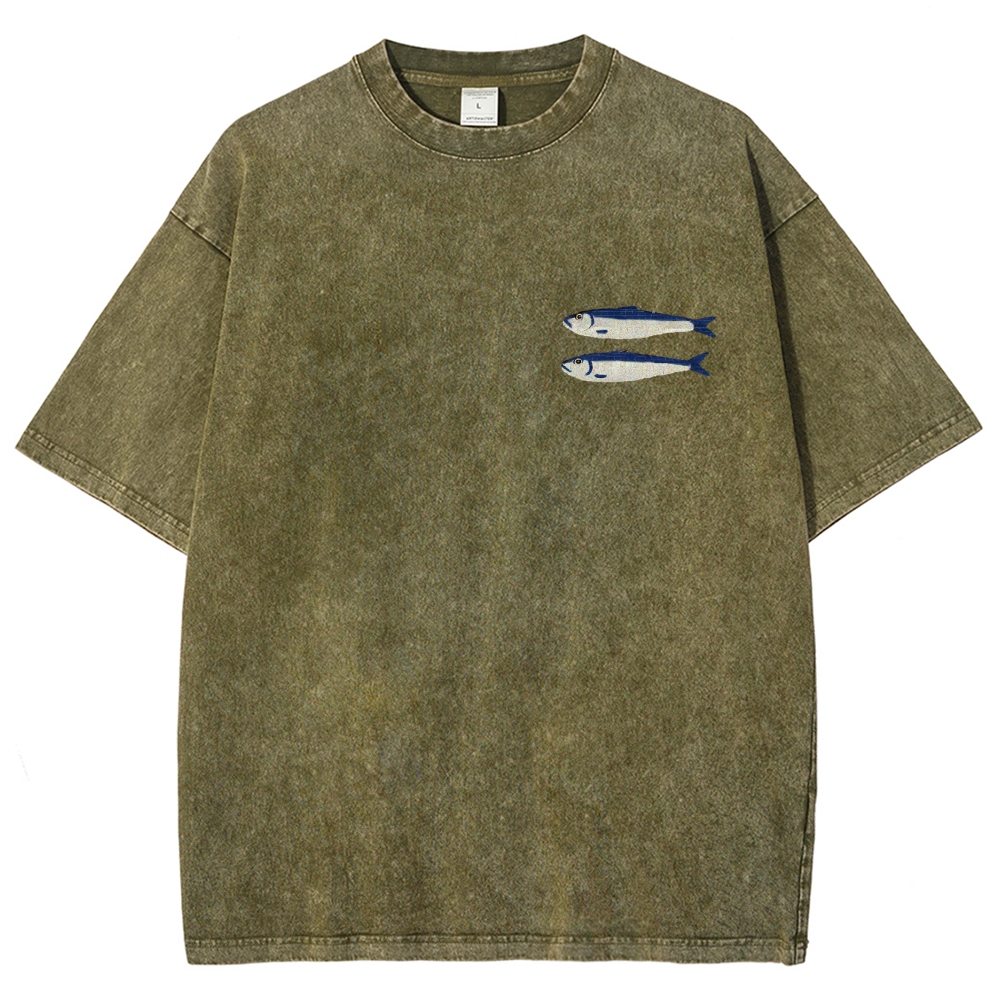 Sardine Fish Printed Washed Vintage Short Sleeves T-Shirt