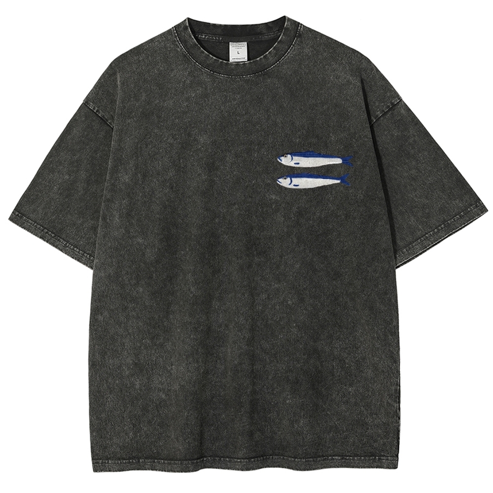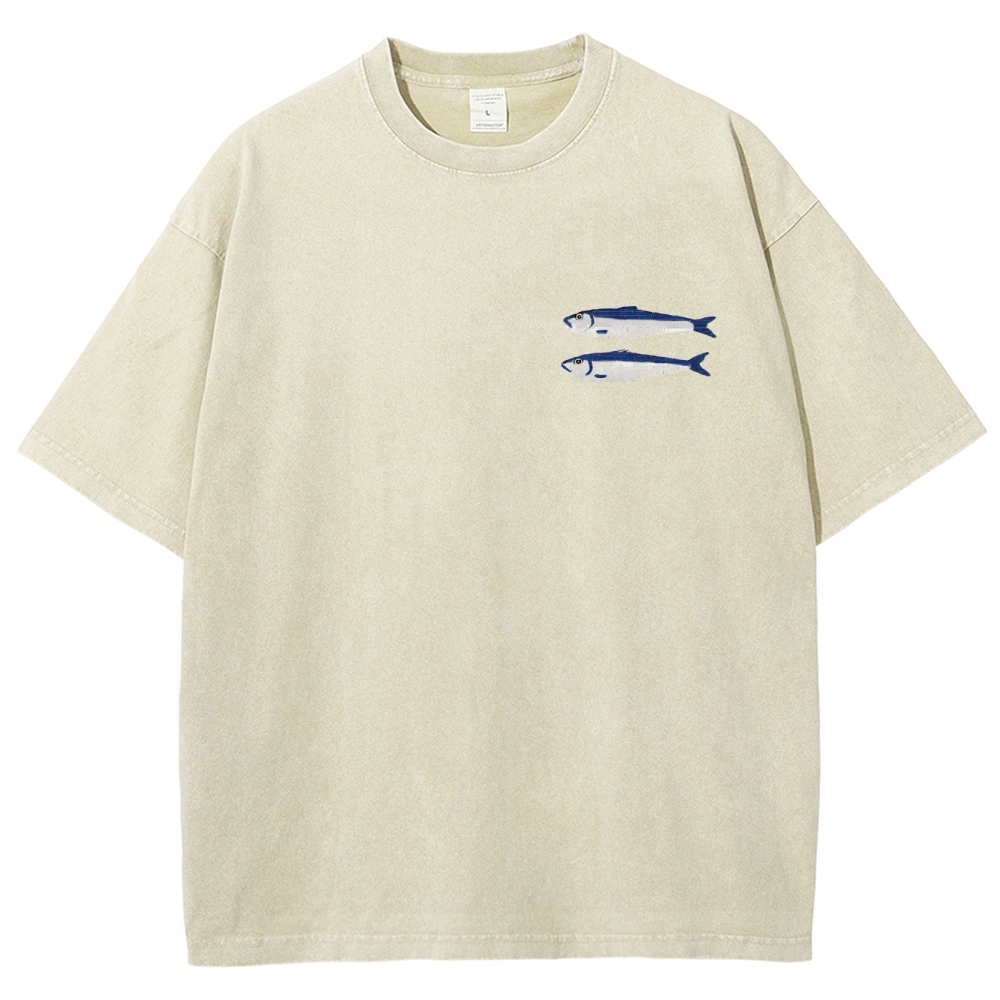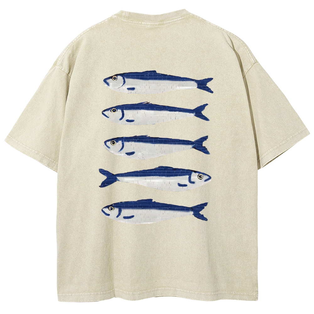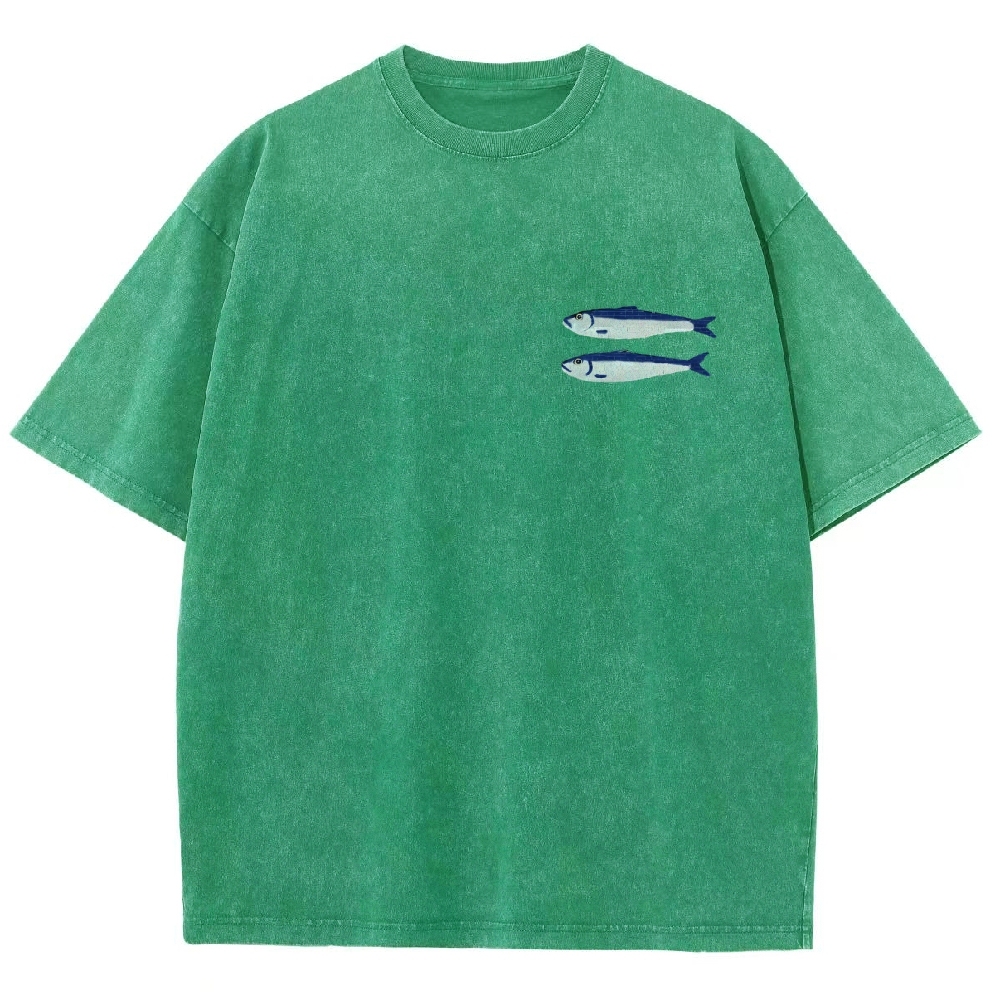 Sardine Fish Printed Washed Vintage Short Sleeves T-Shirt