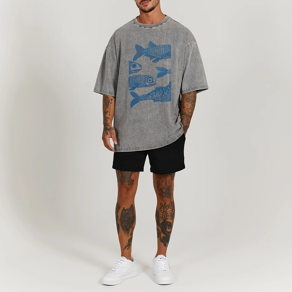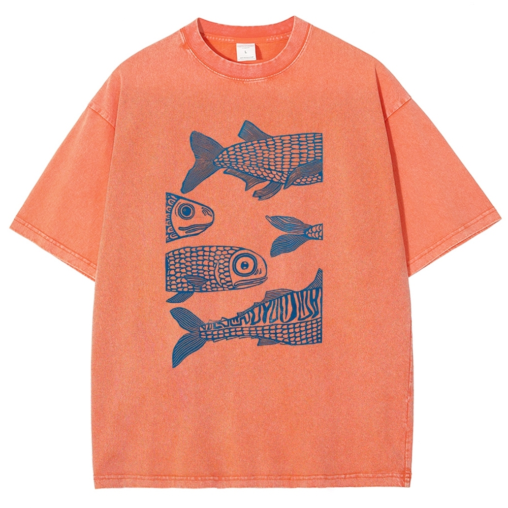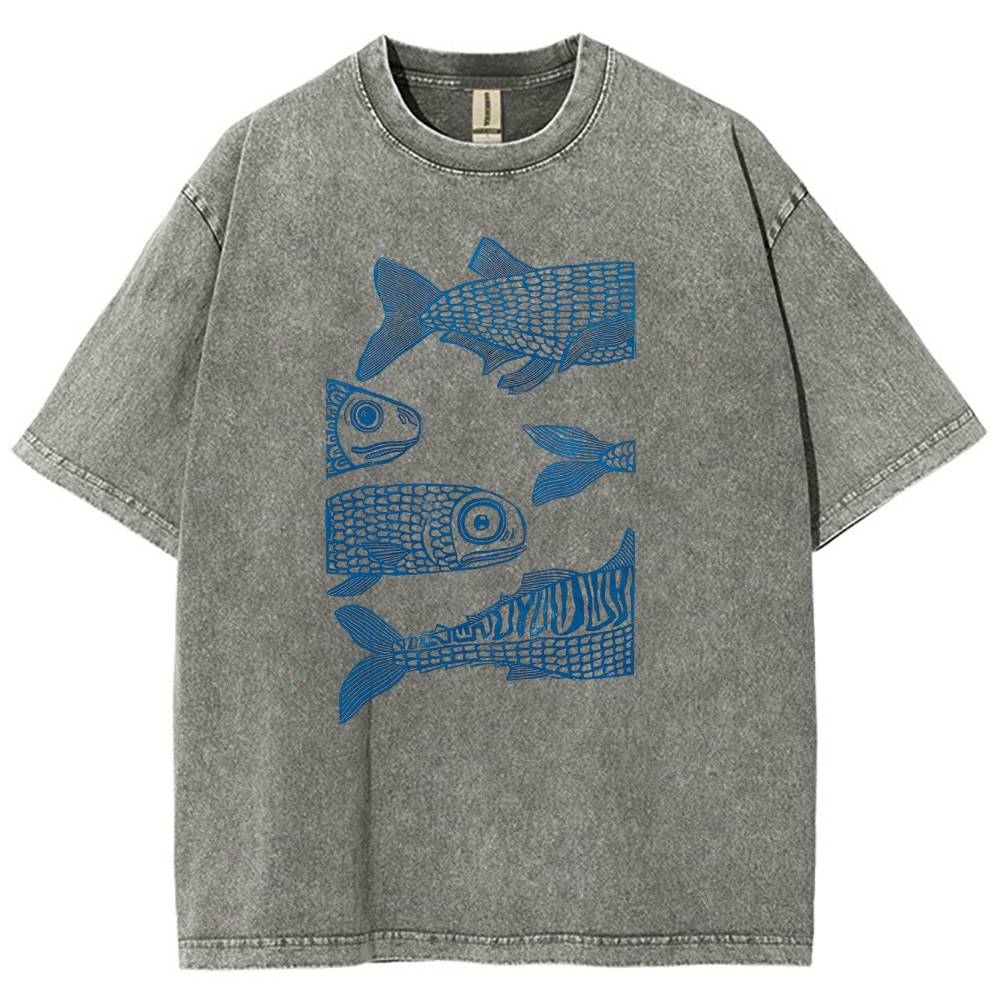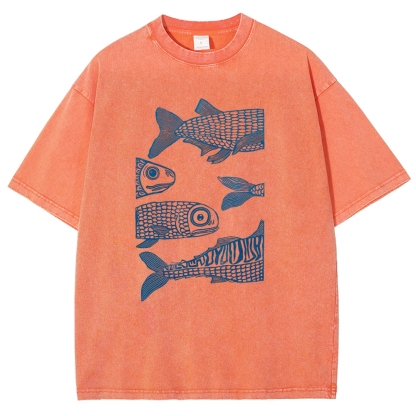 Sardine Fish Washed Vintage Short Sleeves T-Shirt