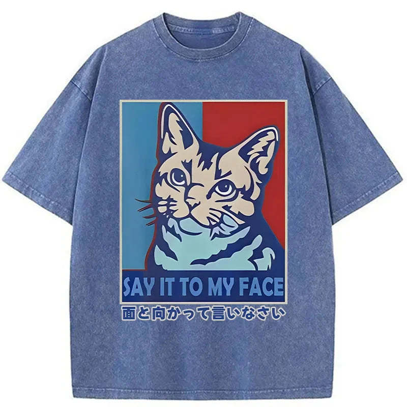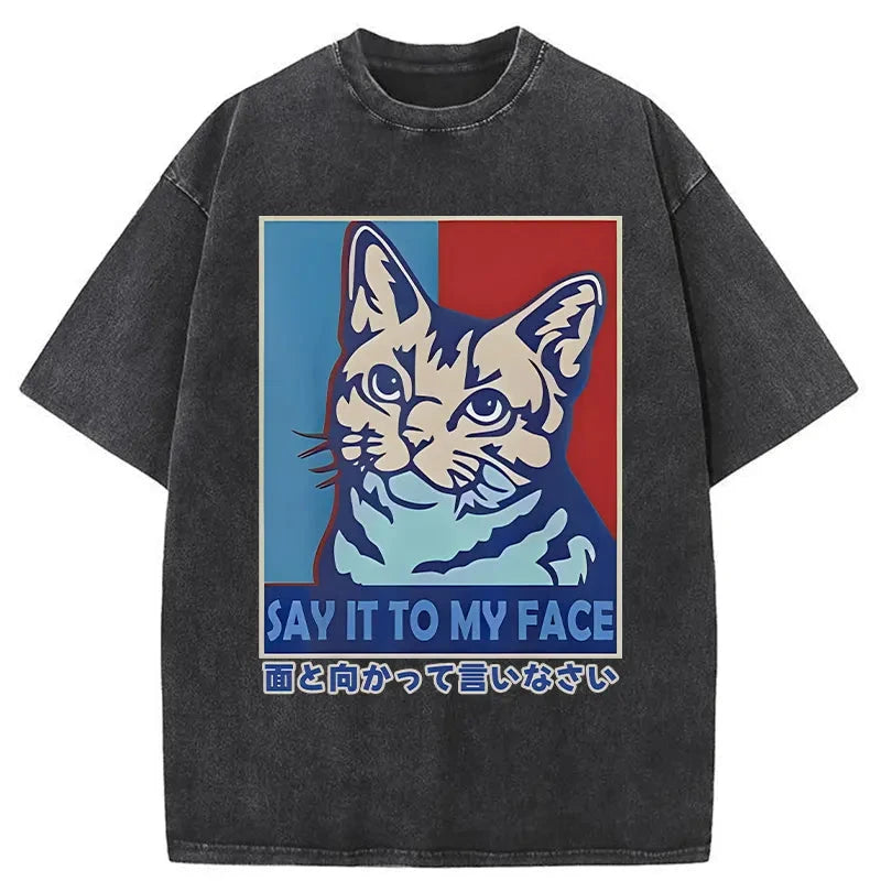 Say It To Cat Face Washed Vintage T-Shirt