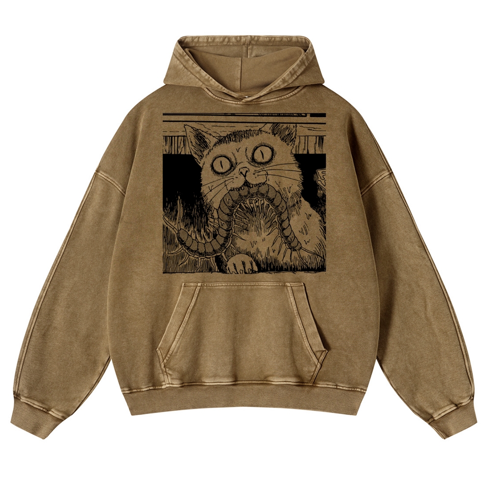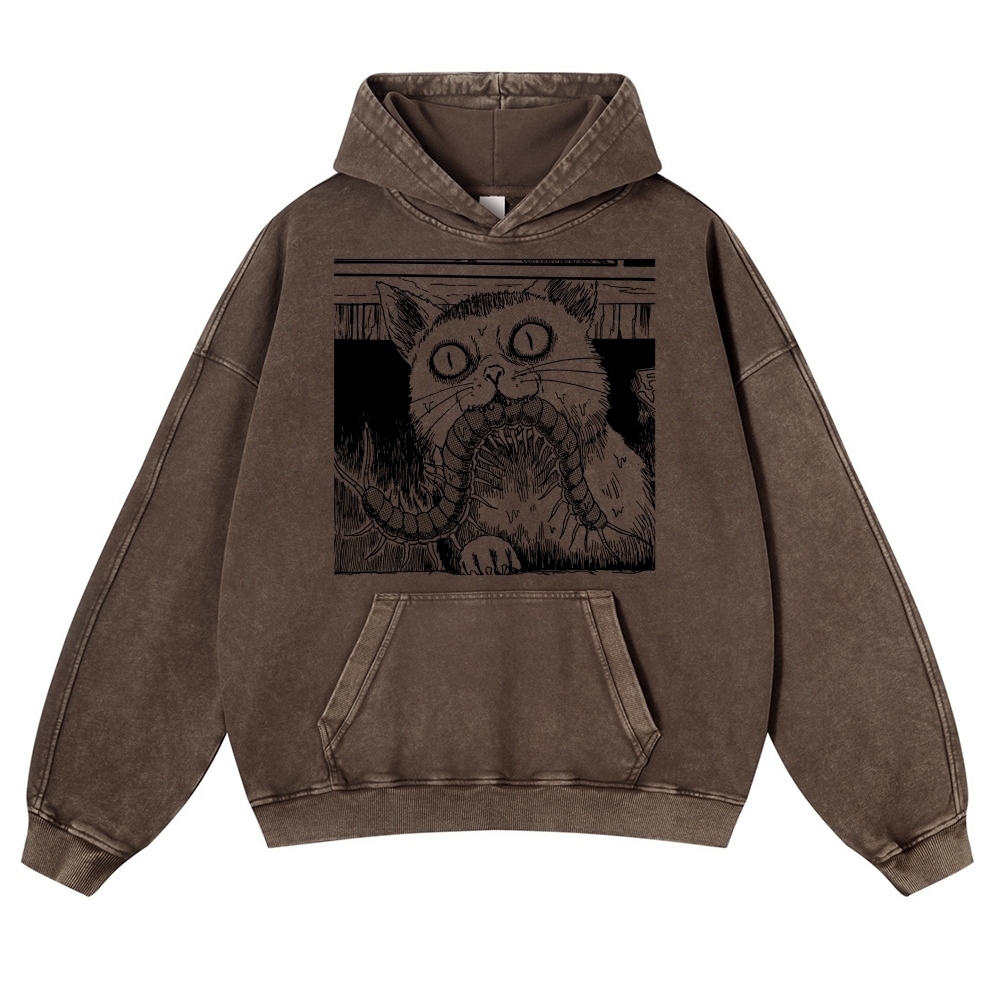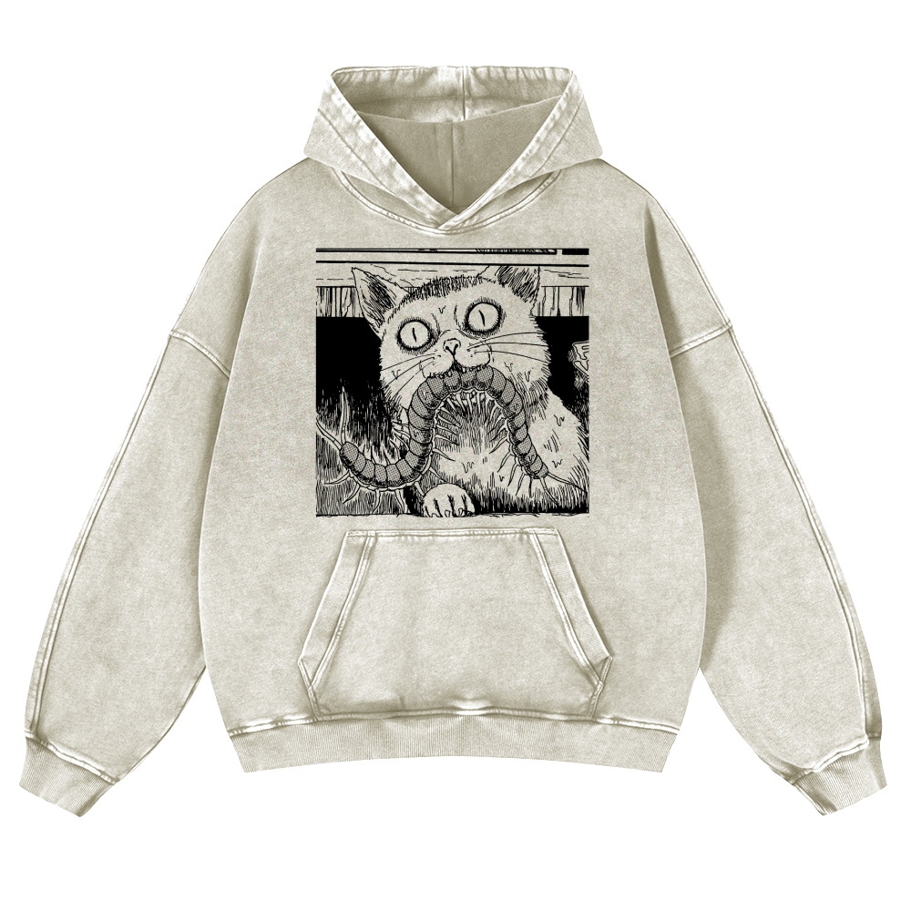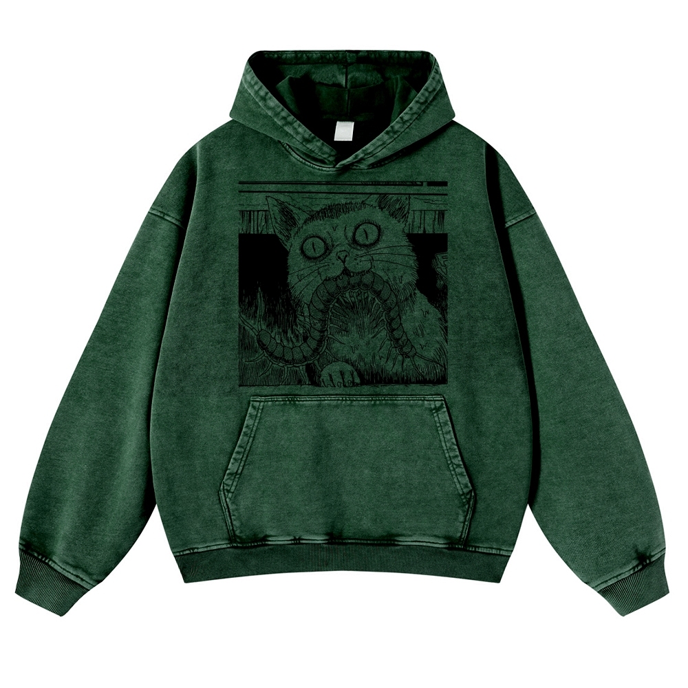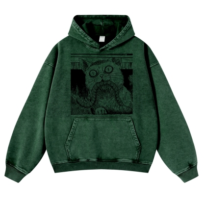Scary Cat Pattern Casual Vintage Washed Hoodie