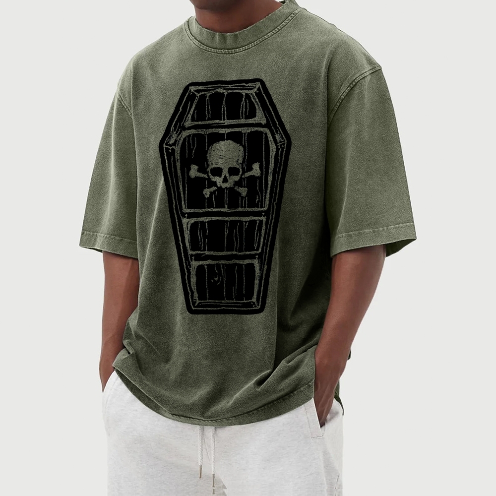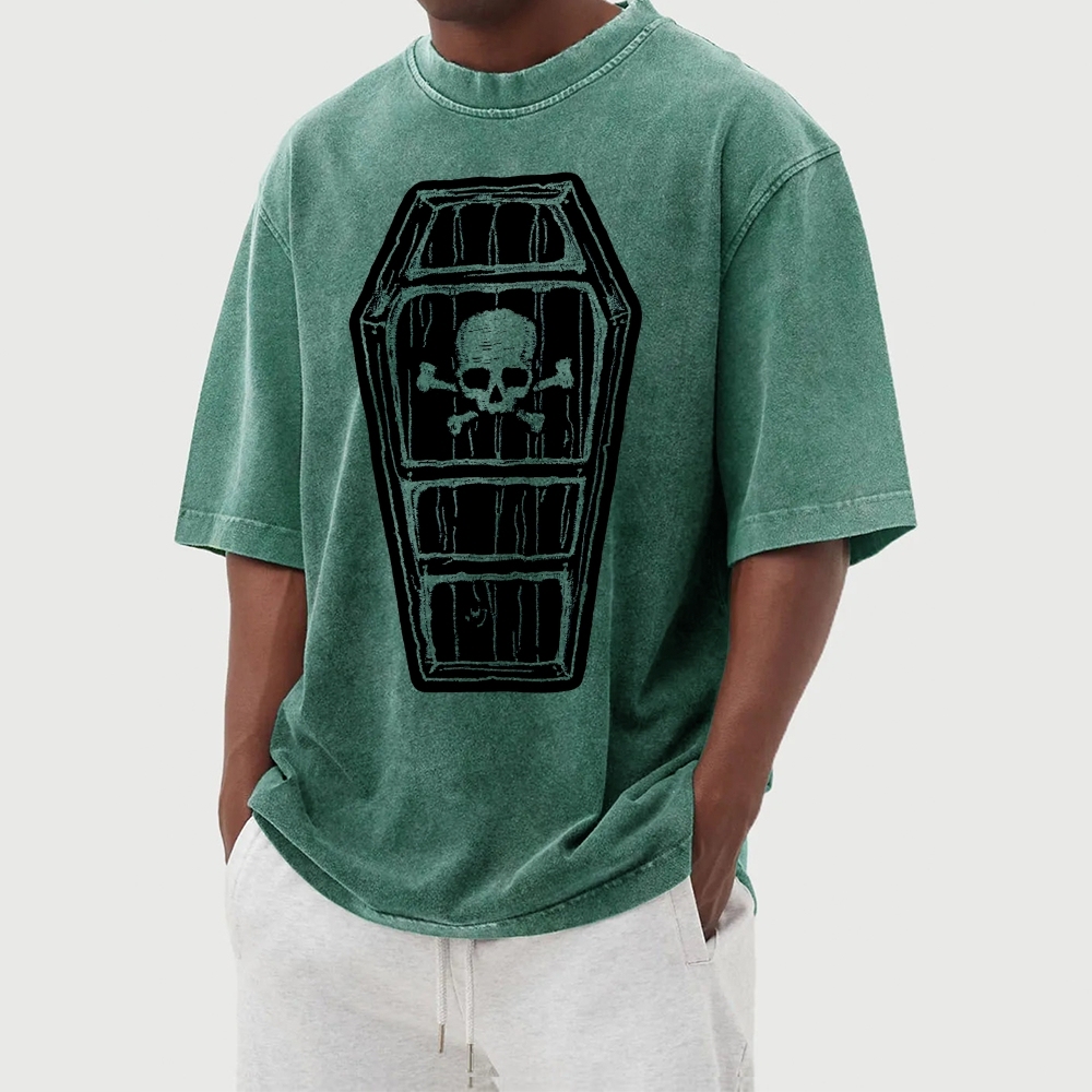 Scary Coffin Pattern Washed Vintage Short Sleeves T-Shirt