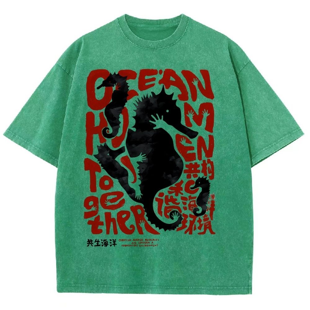 Sea Horse Washed Vintage Short Sleeves T-Shirt
