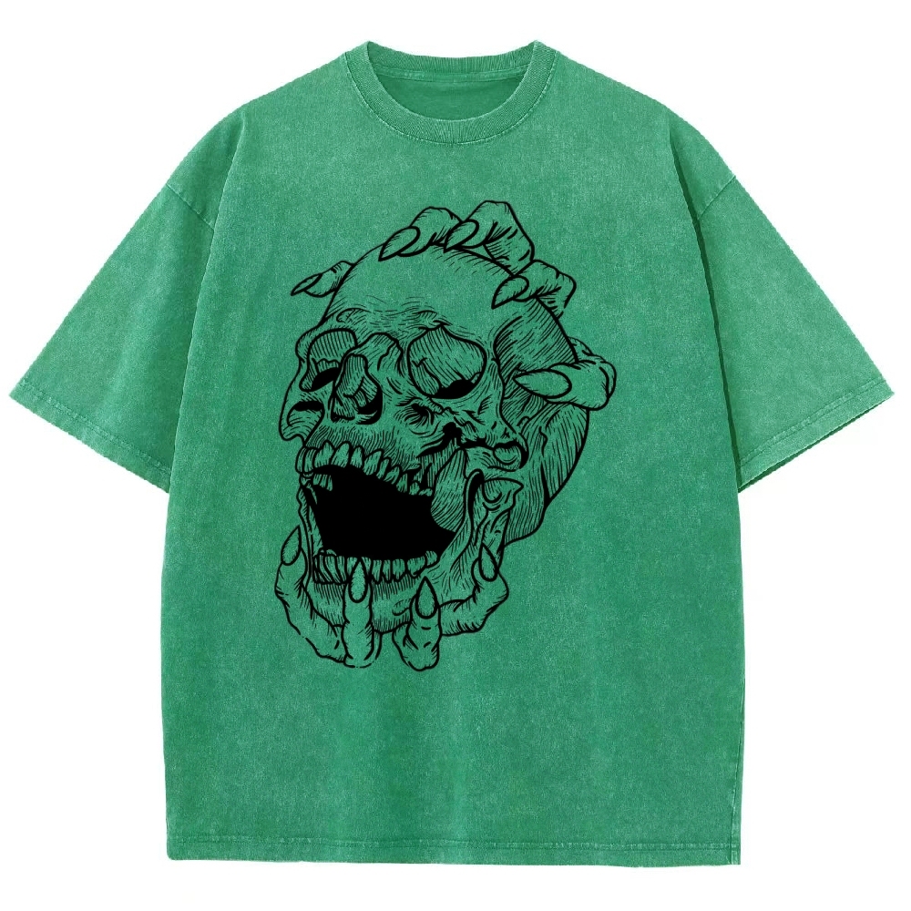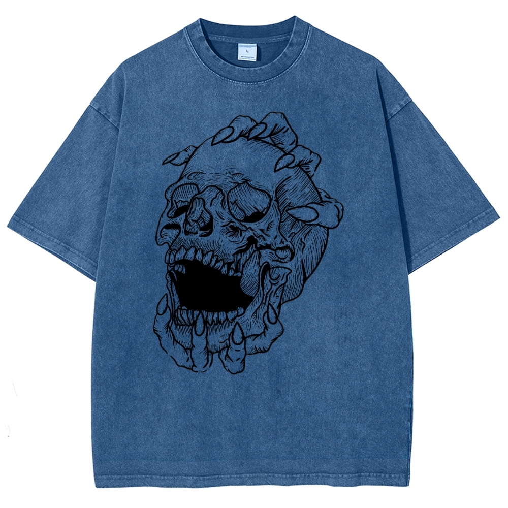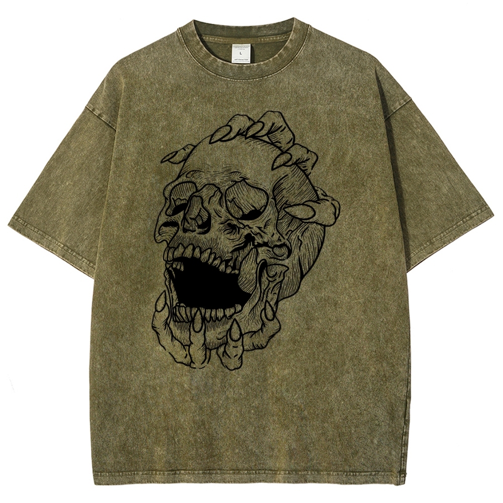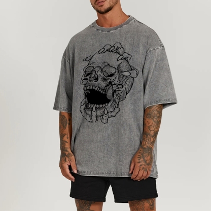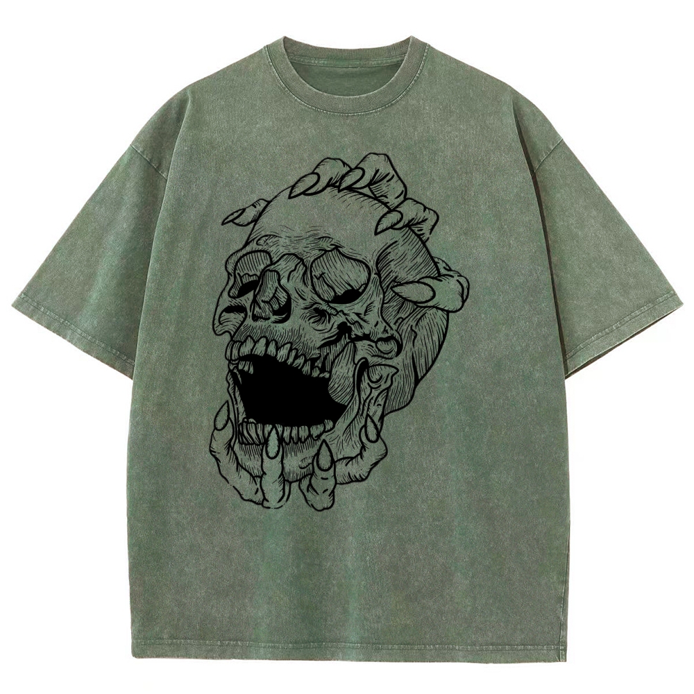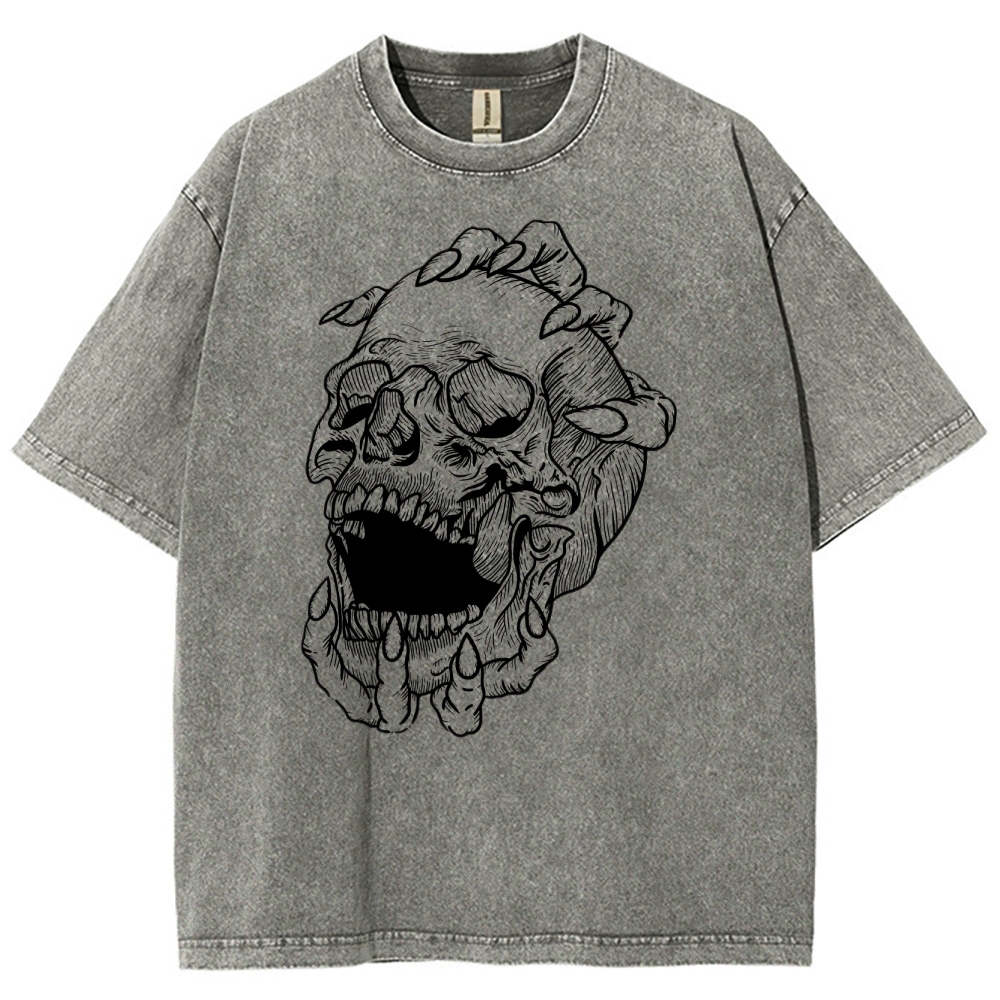 Skull Pattern Prints Washed Vintage Short Sleeves T-Shirt