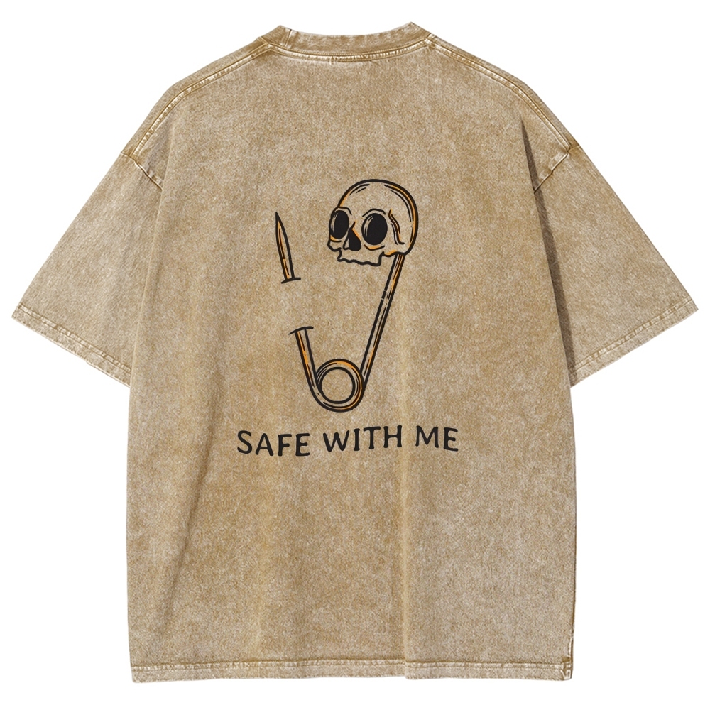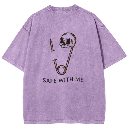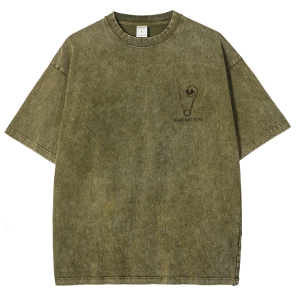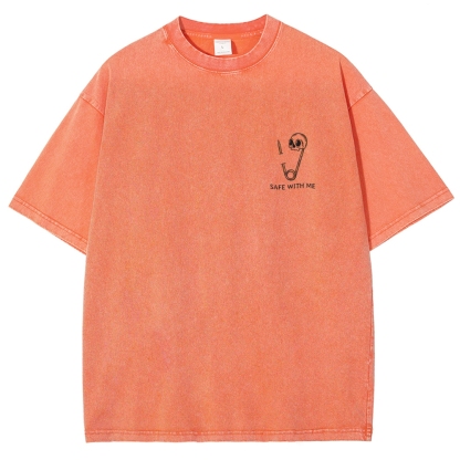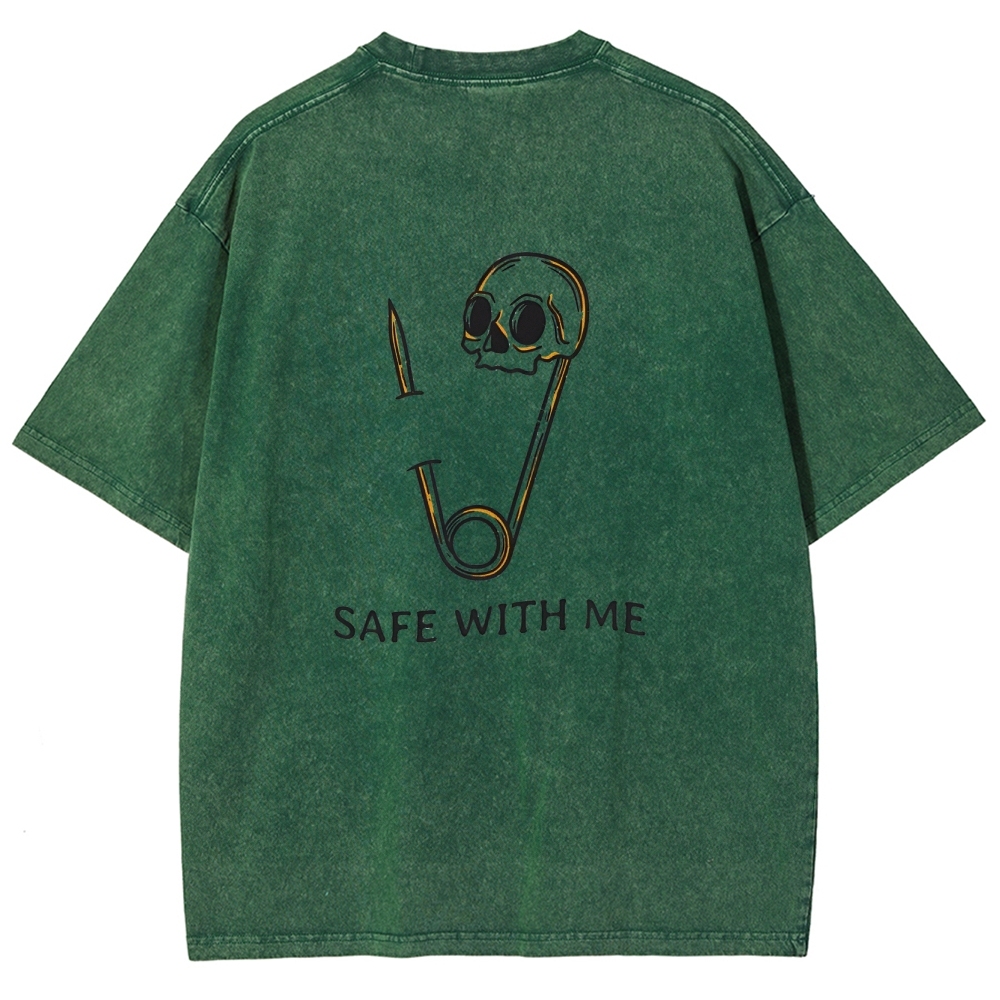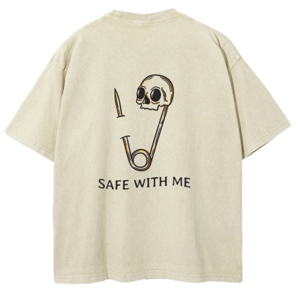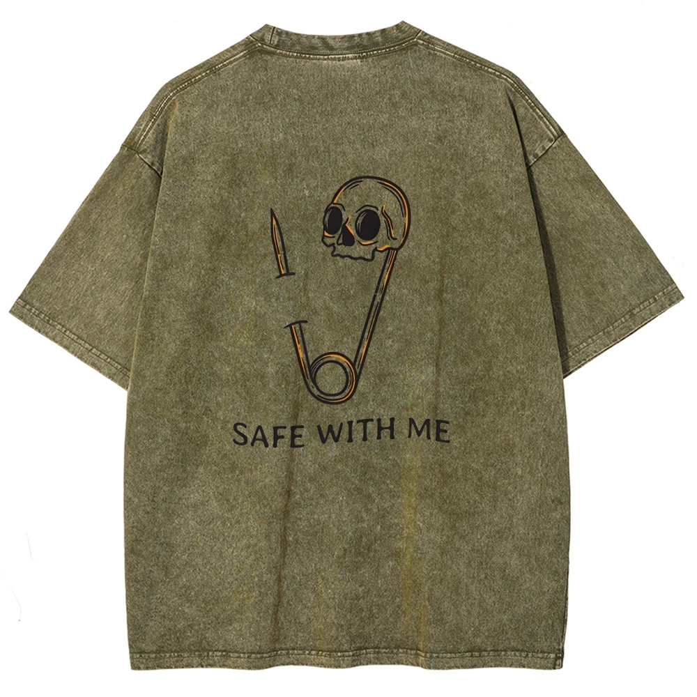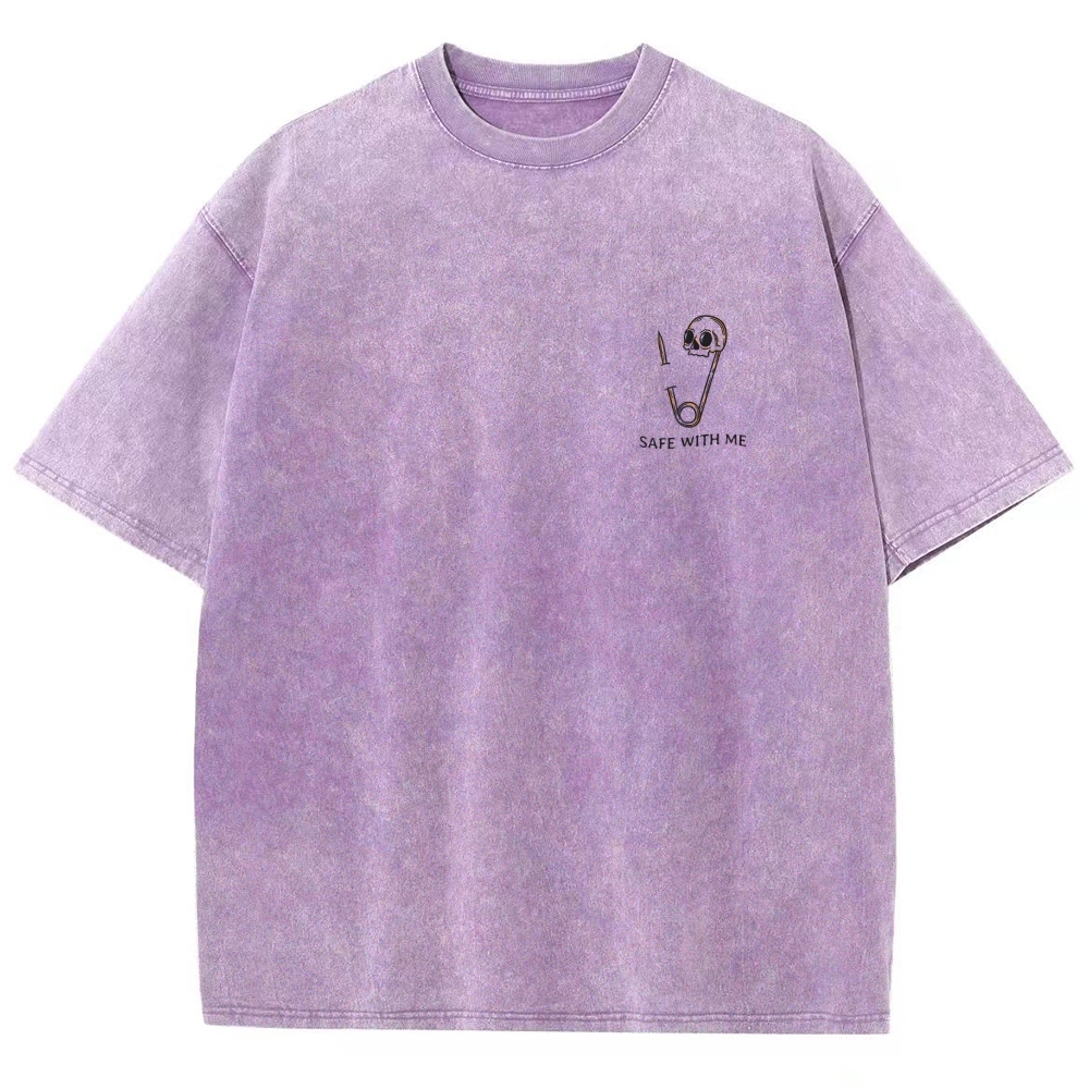Skull Pin Prints Washed Vintage Short Sleeves T-Shirt