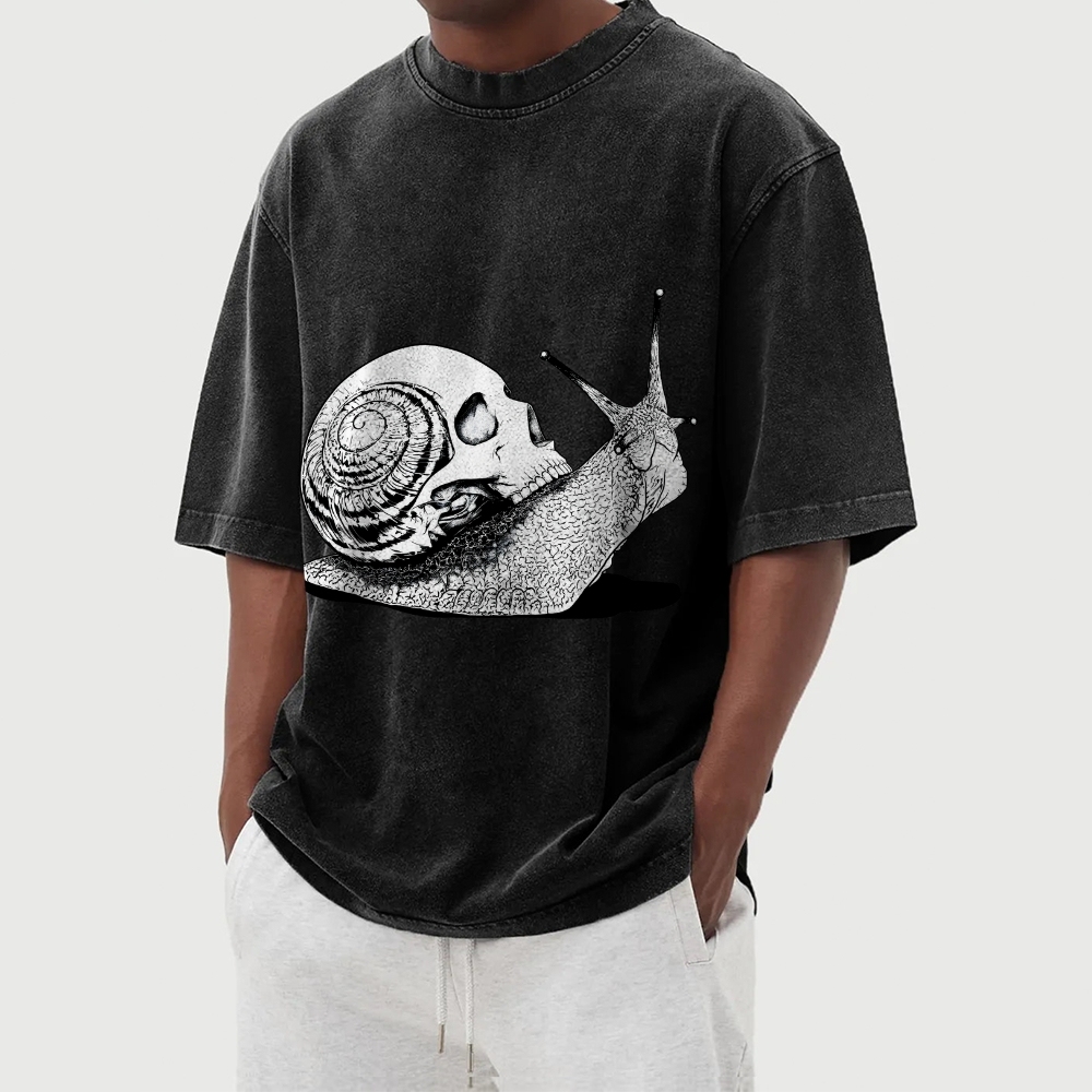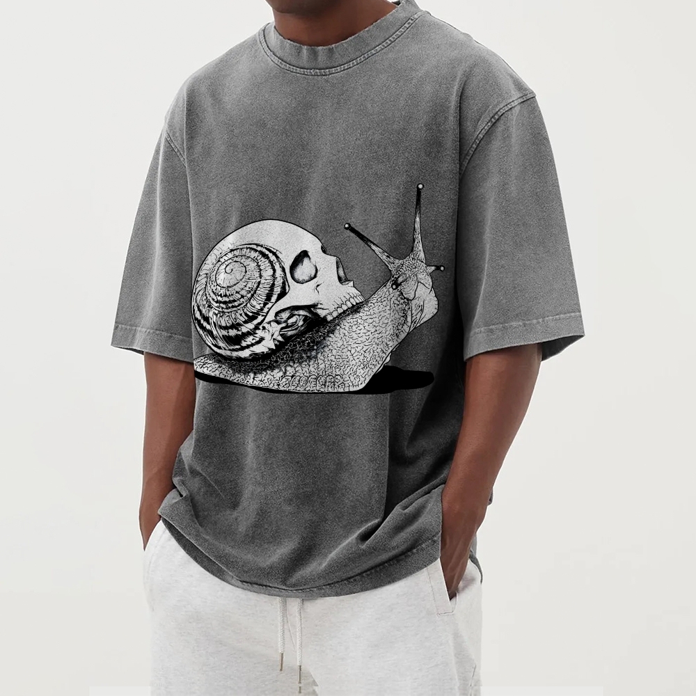 Skull Snail Washed Vintage Short Sleeves T-Shirt