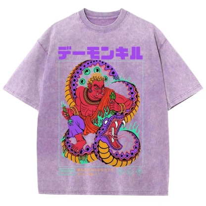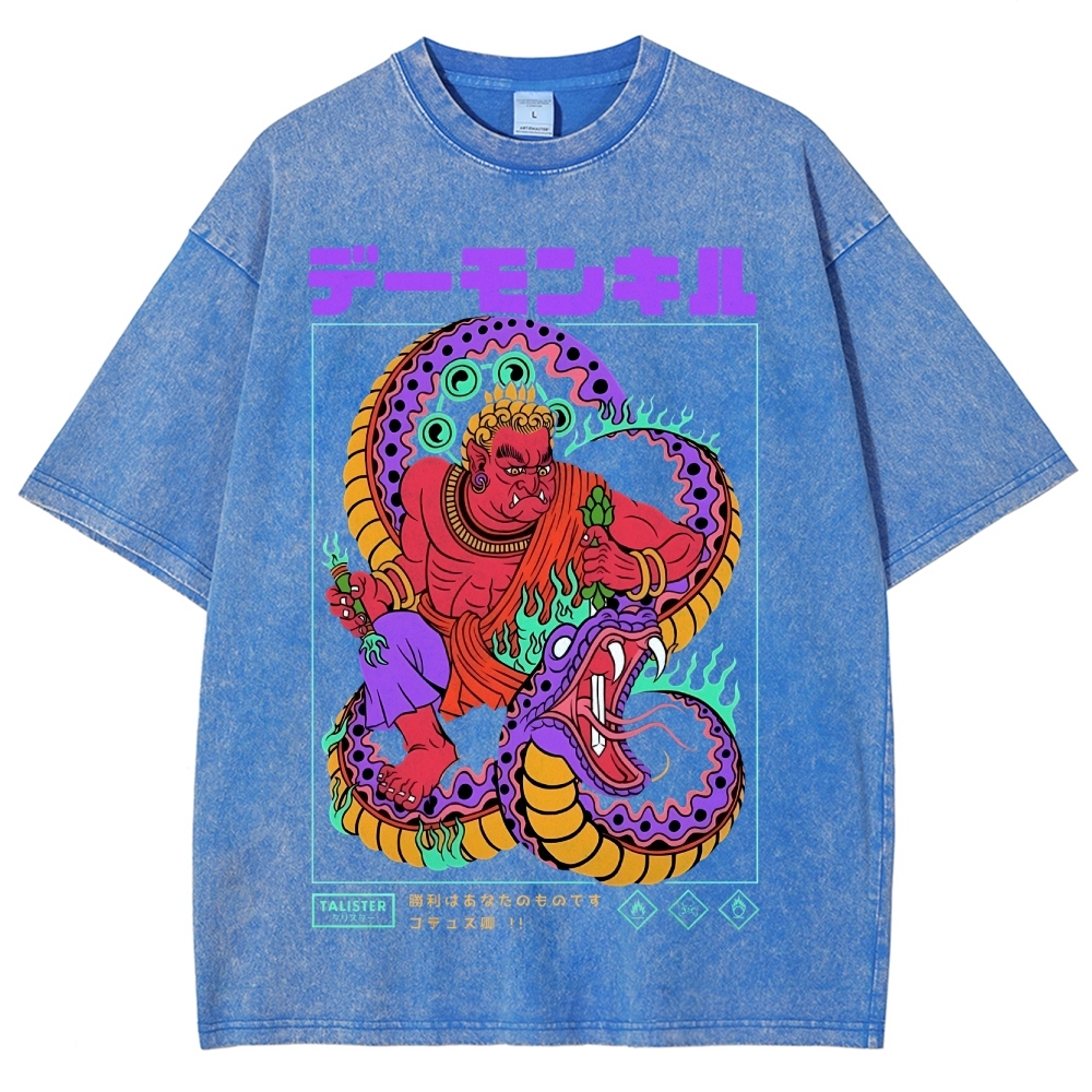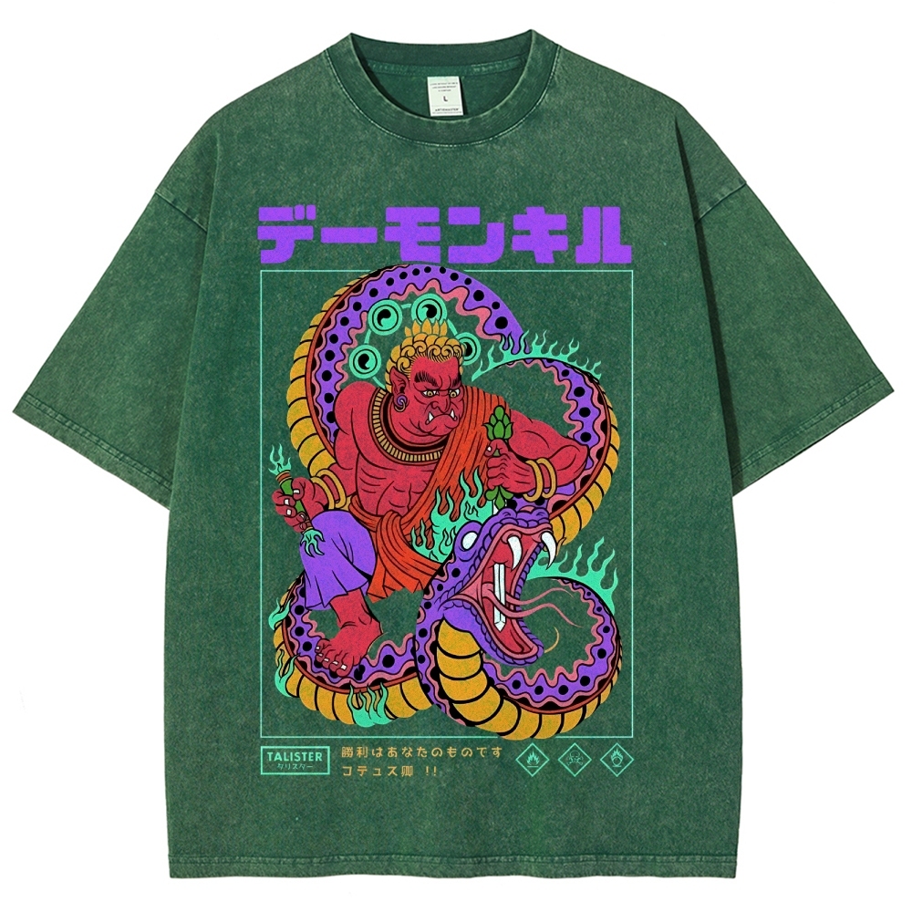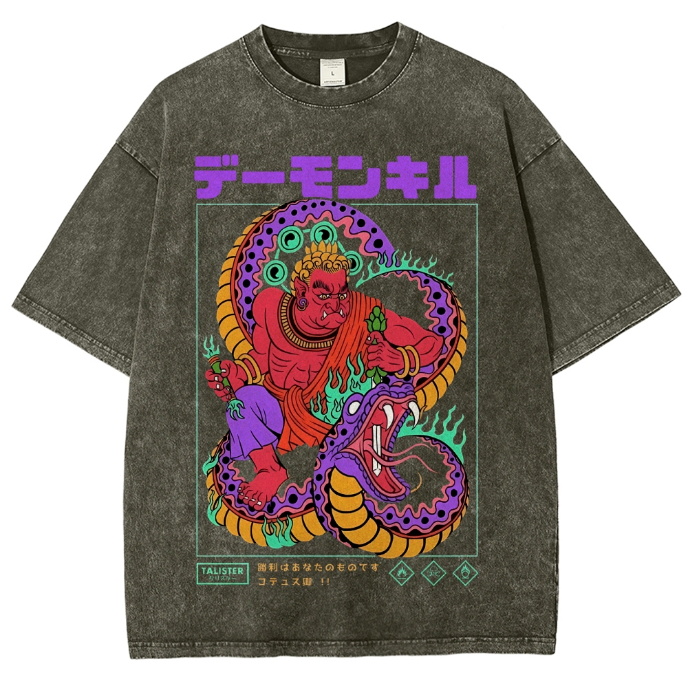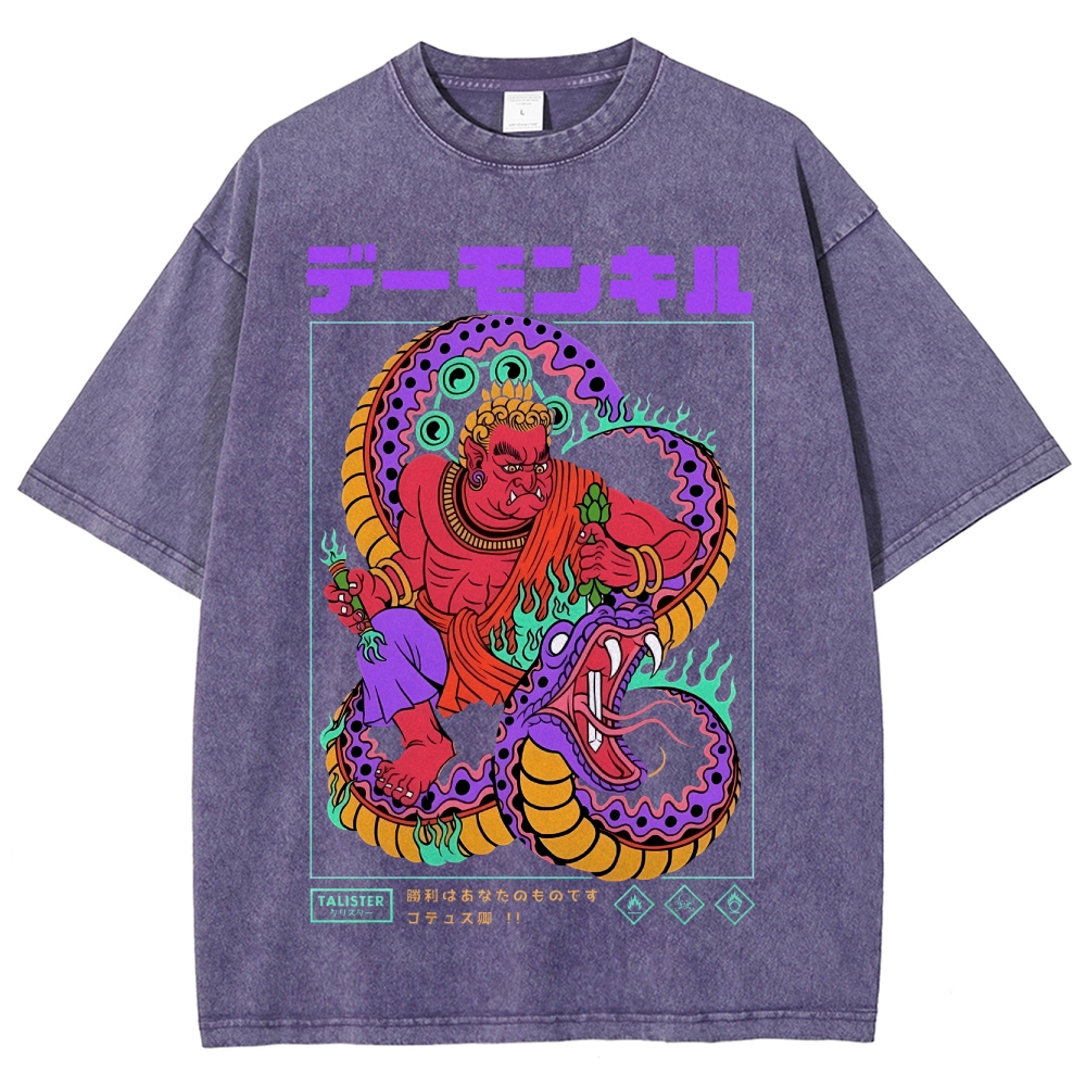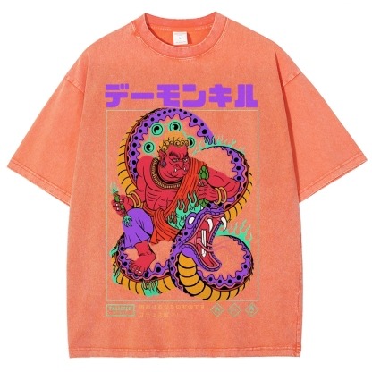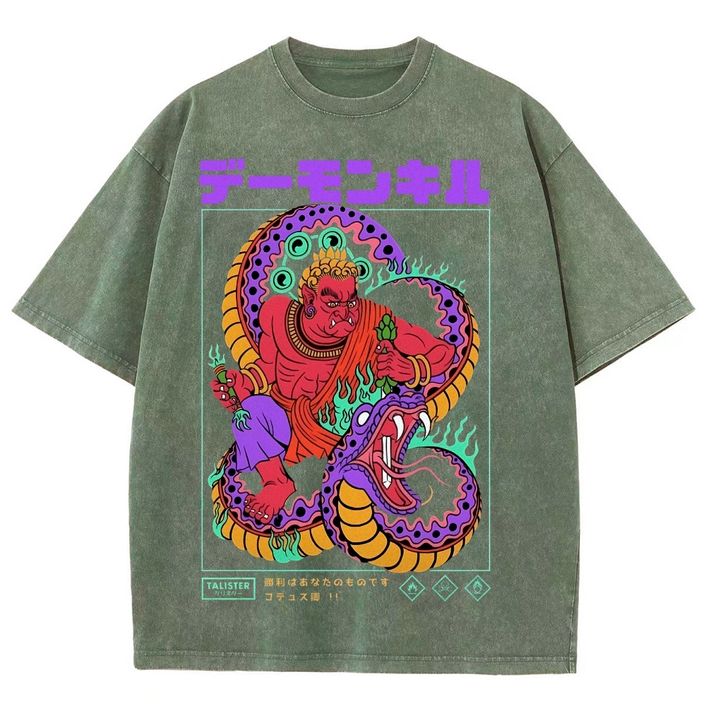 Snake Pattern Washed Vintage Short Sleeves T-Shirt