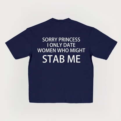 Sorry Princess I Only Date Women Who Might Stab Me Printed Short-Sleeved T-Shirt
