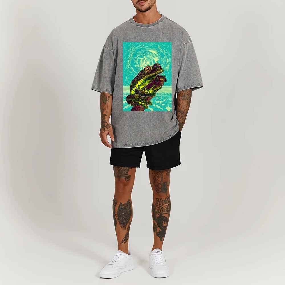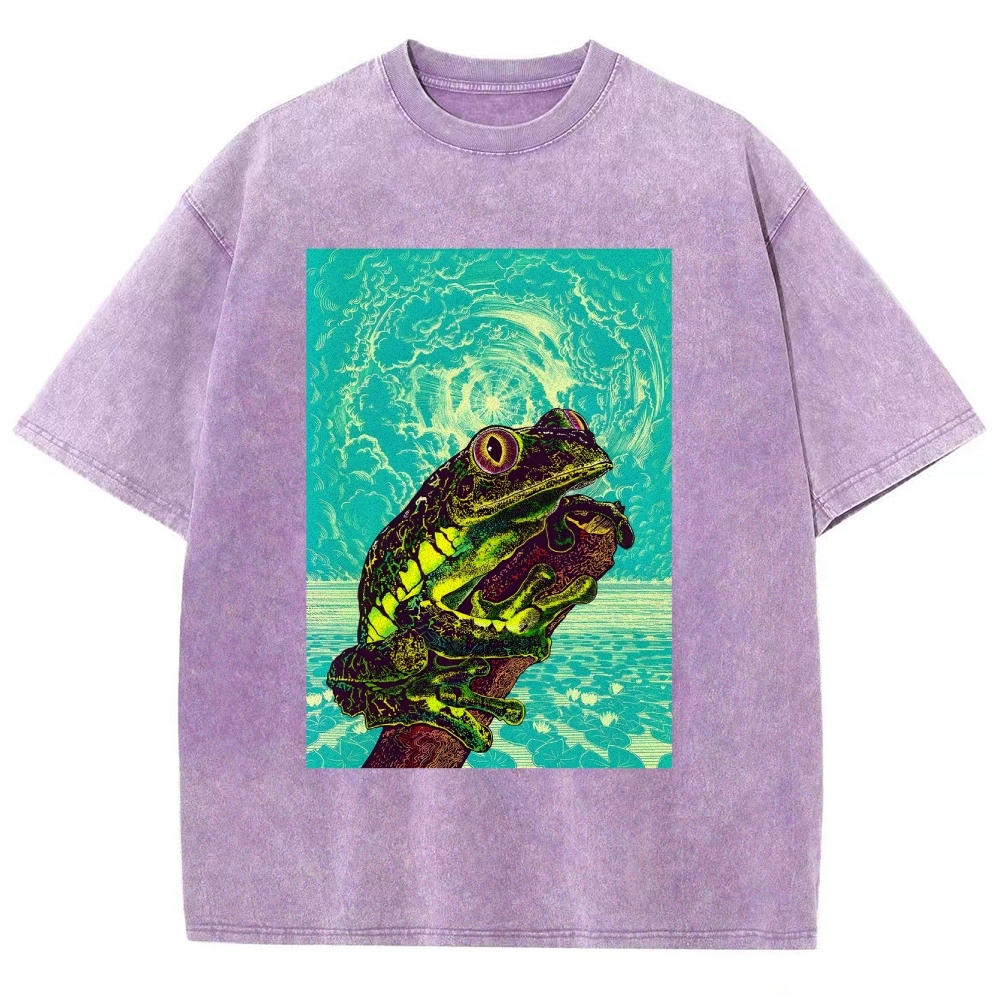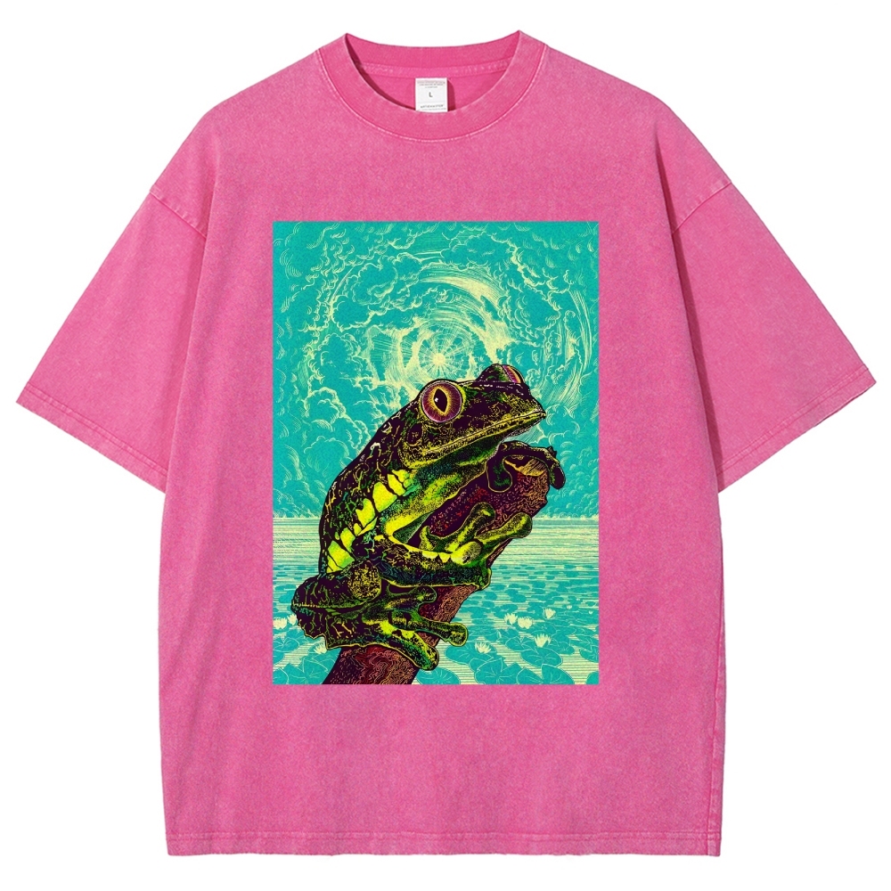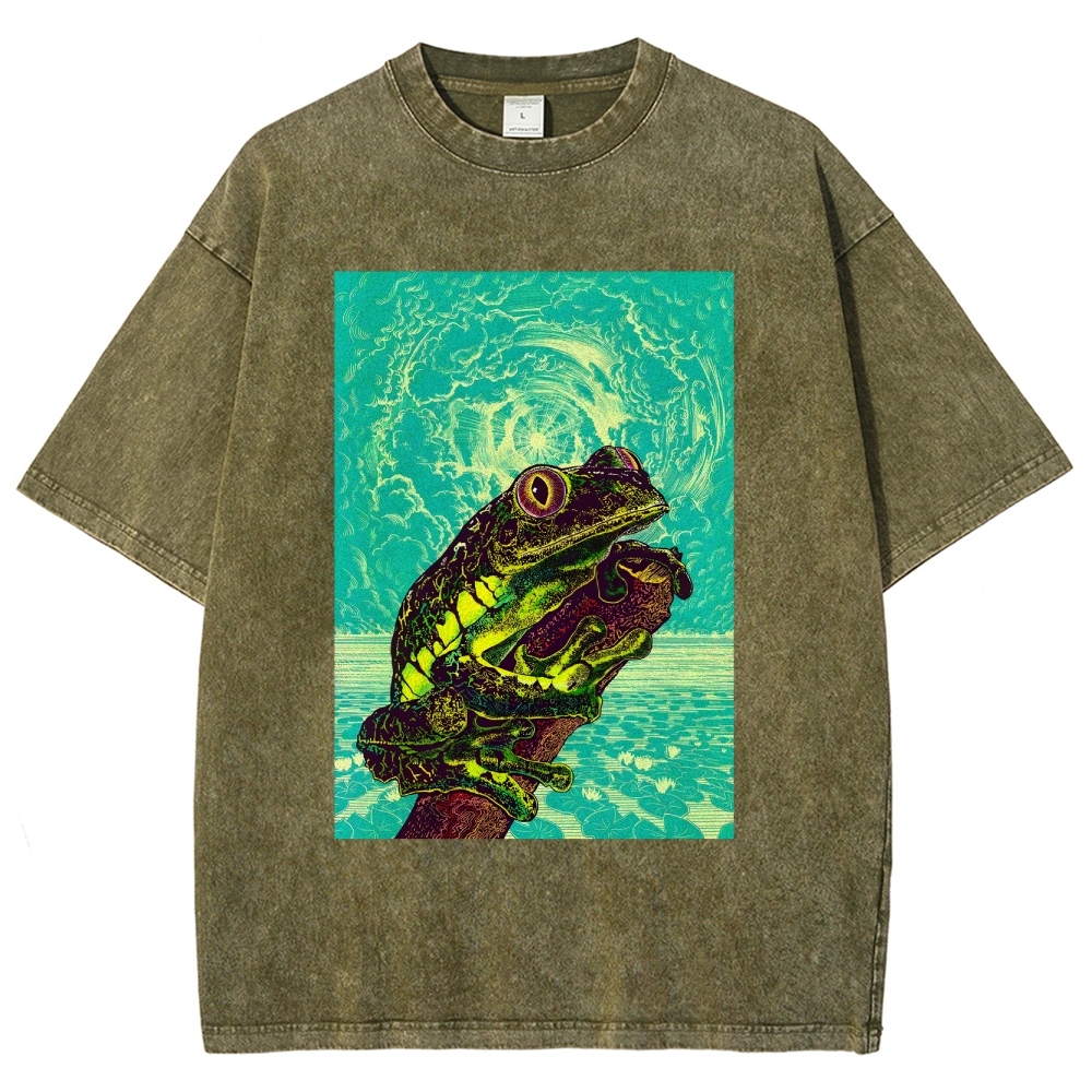 Sun And Frog Washed Vintage Short Sleeves T-Shirt