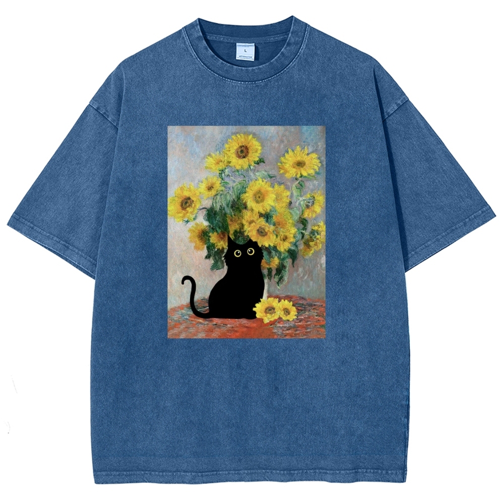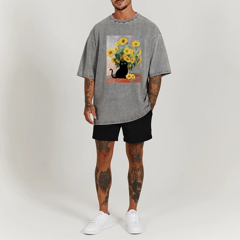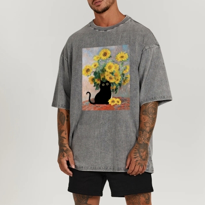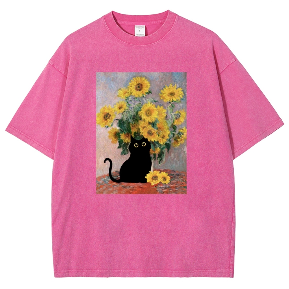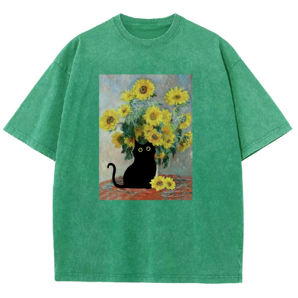 Sunflower Cat Unisex Fit Washed T-Shirt