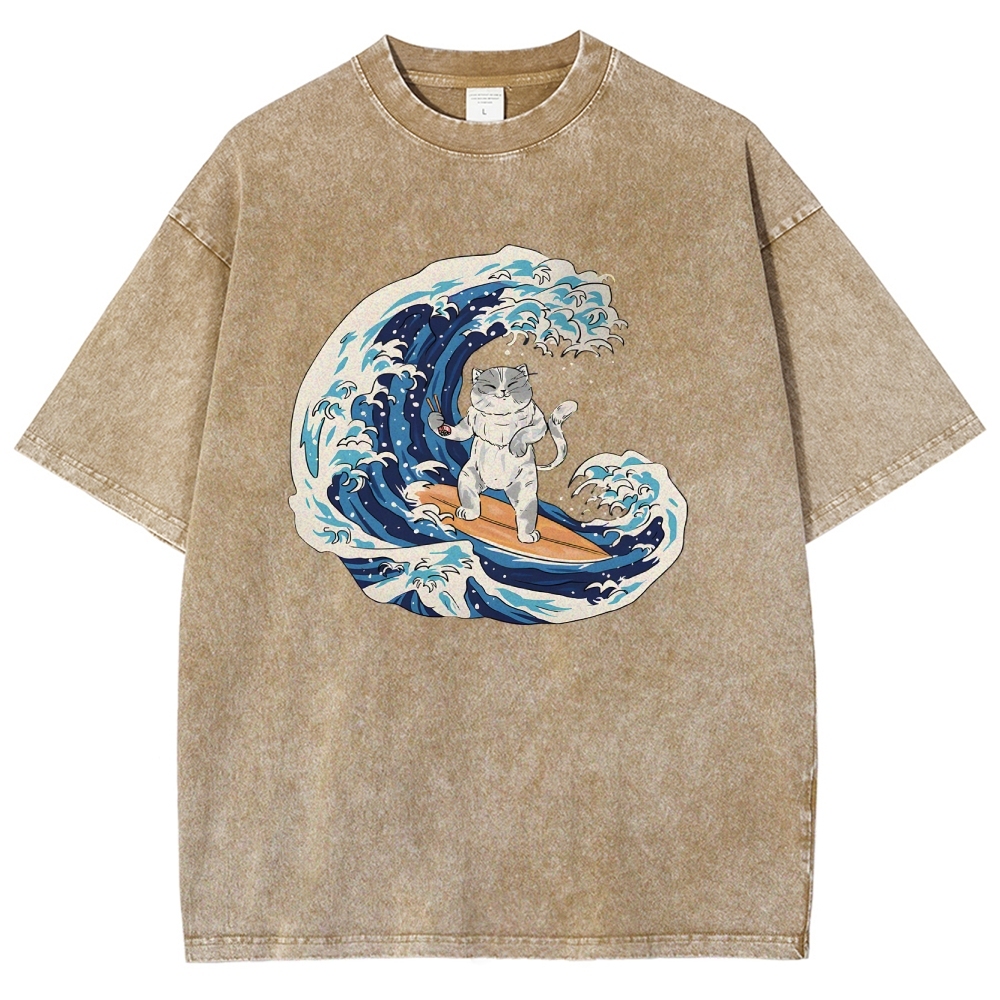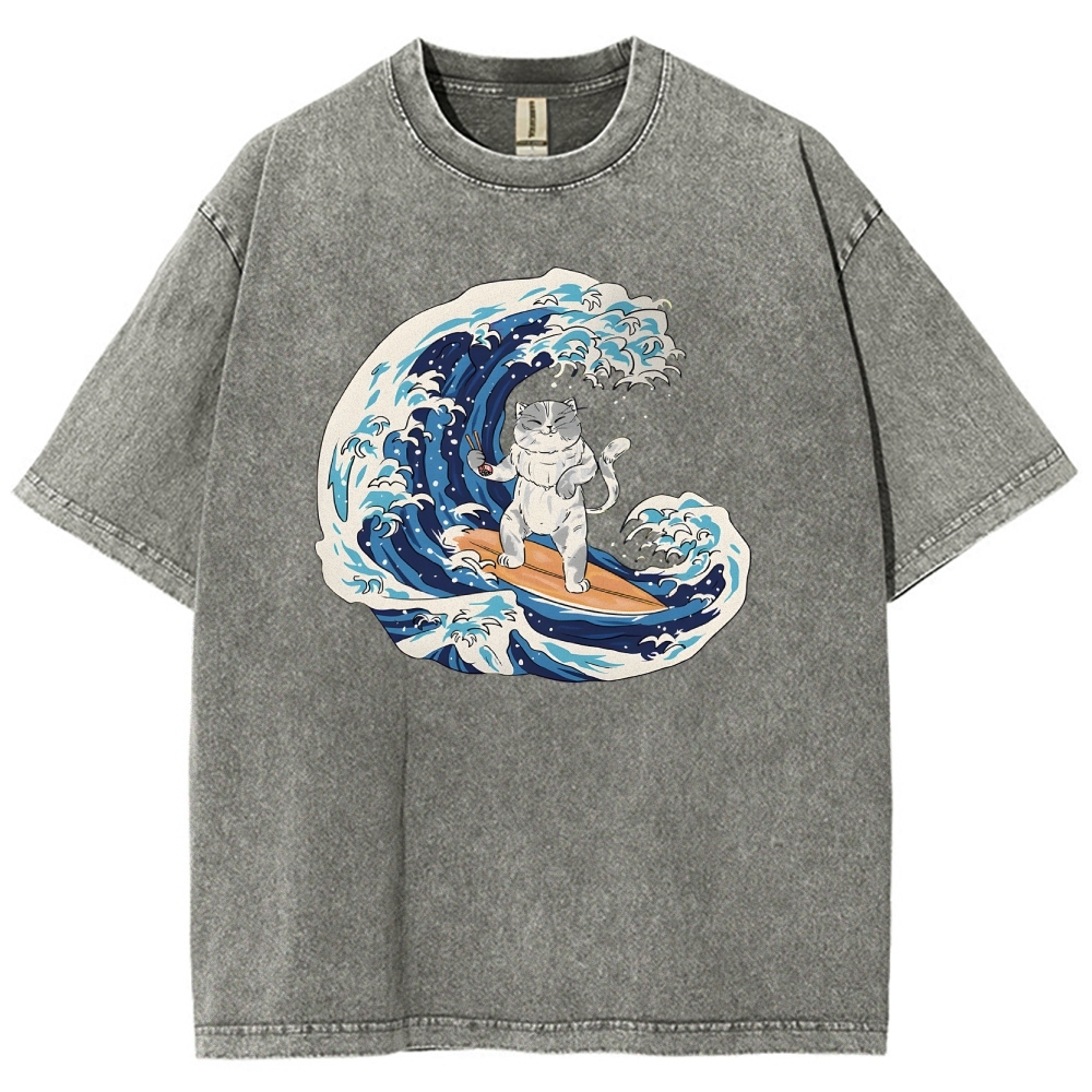 Surfing Cat Unisex Fit Washed T-Shirt