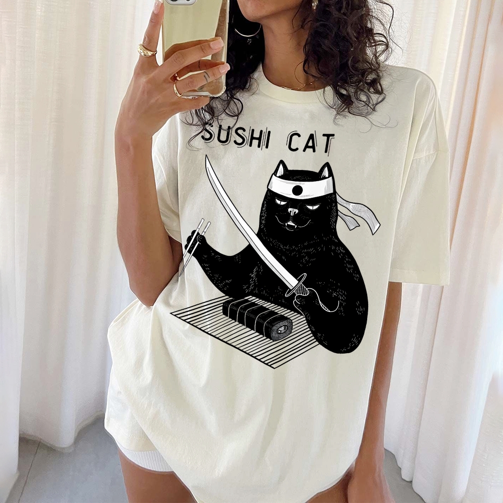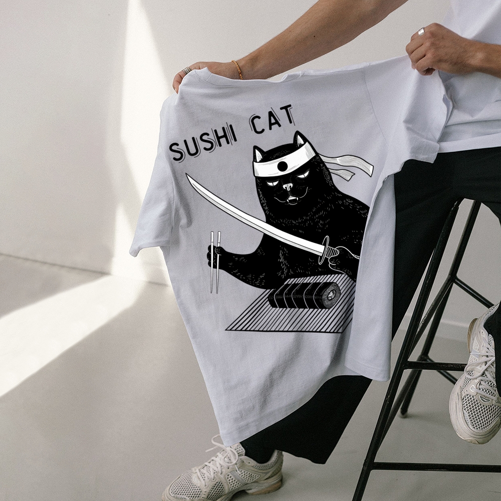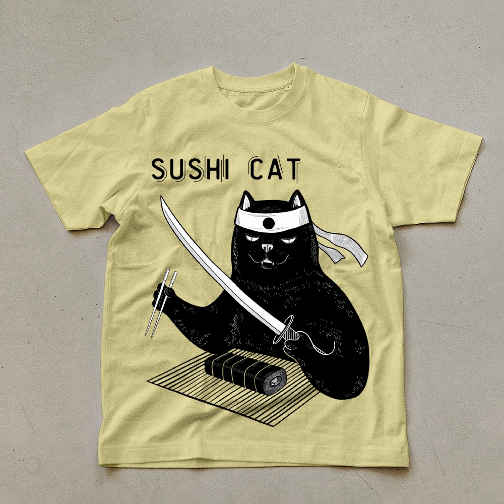 Sushi Cat Pattern Unisex Prints T-Shirt
