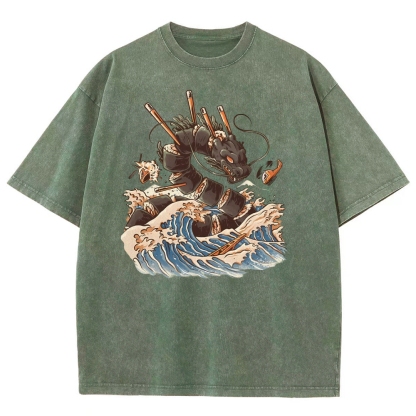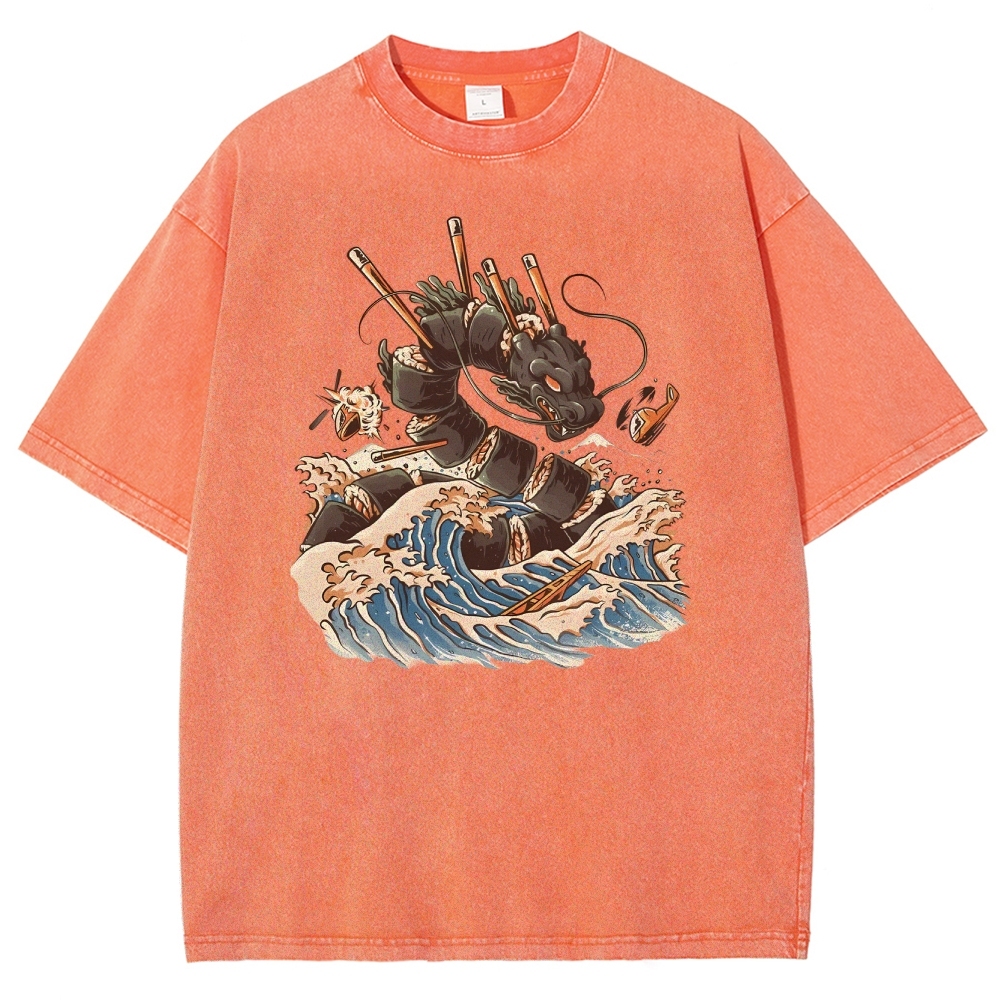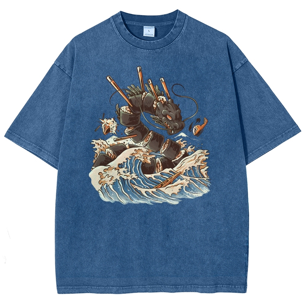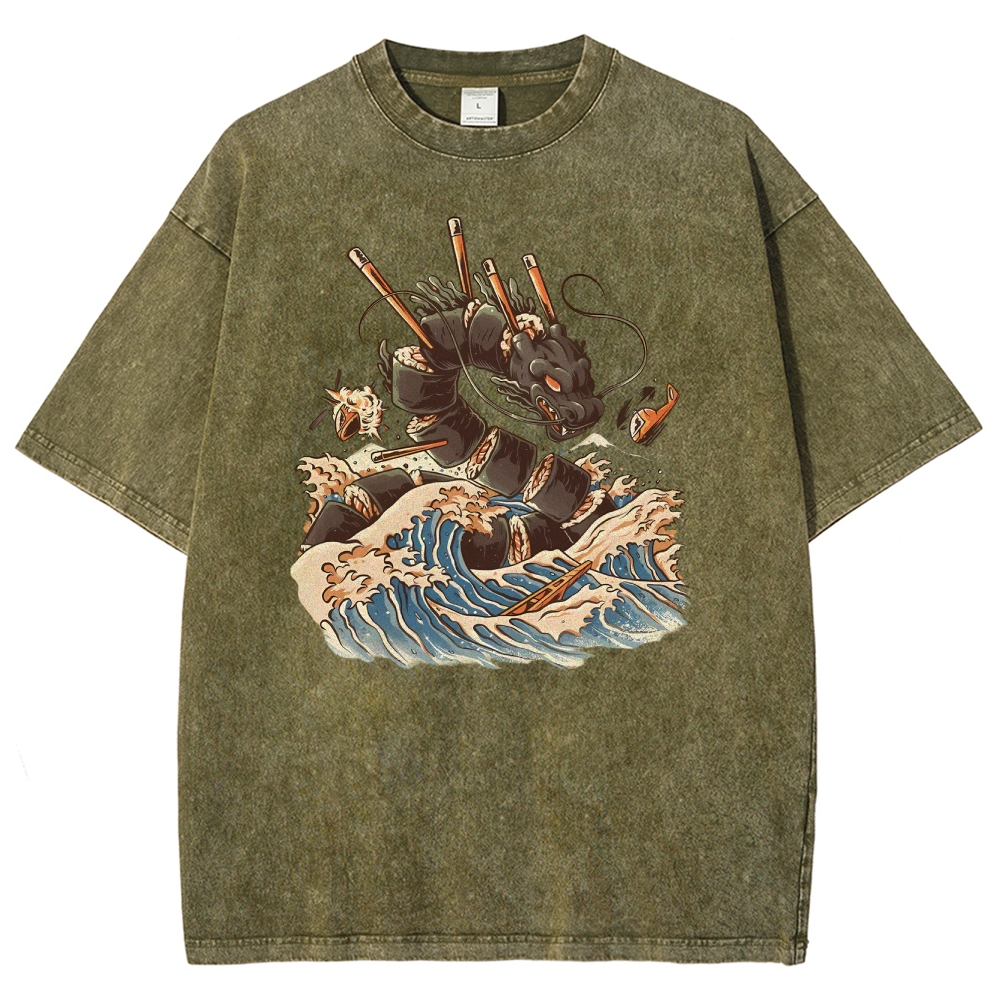 Sushi Dragon Washed Vintage Short Sleeves T-Shirt
