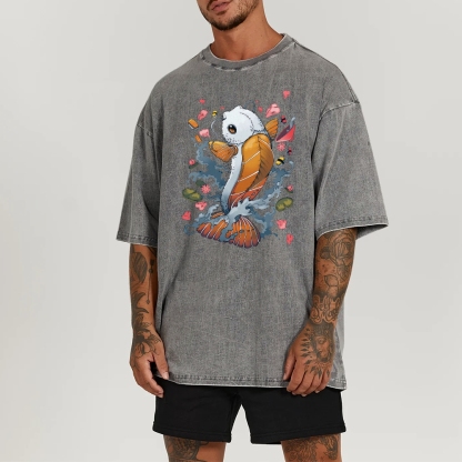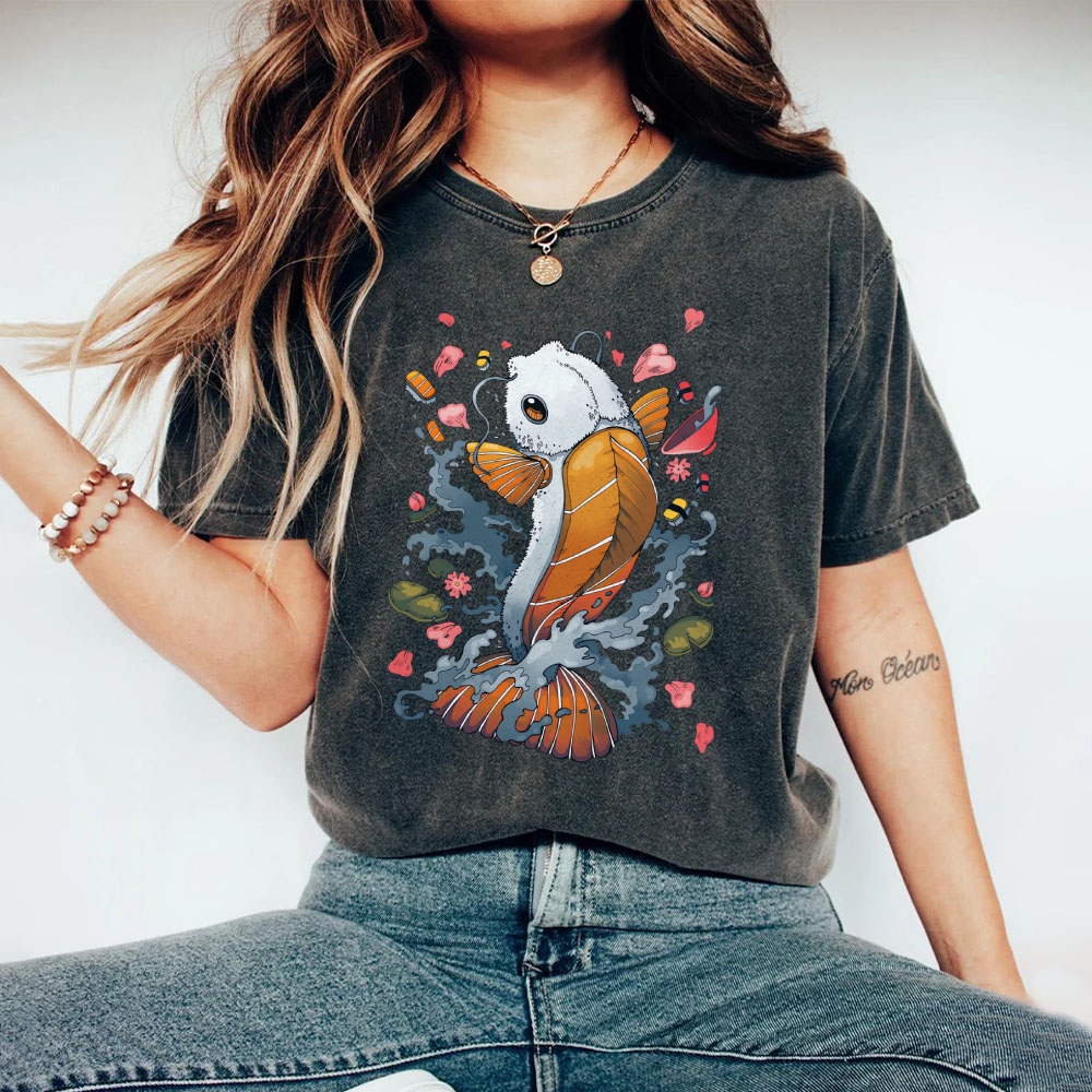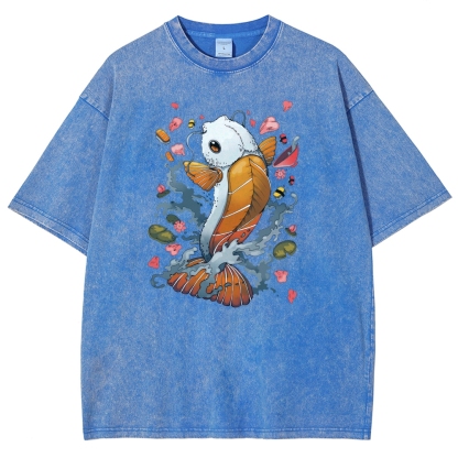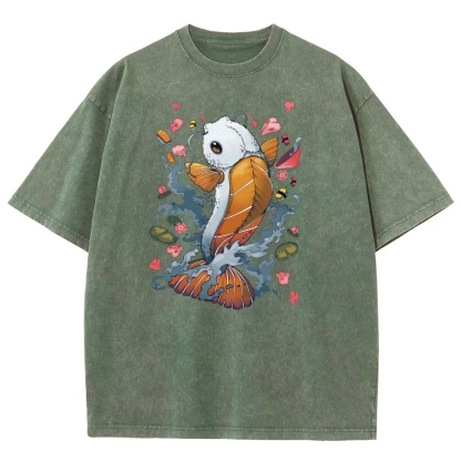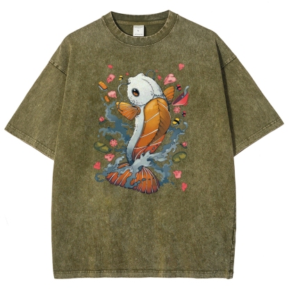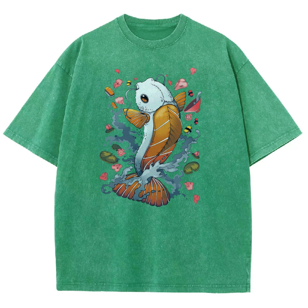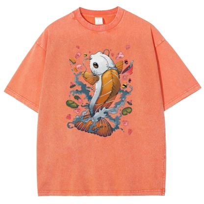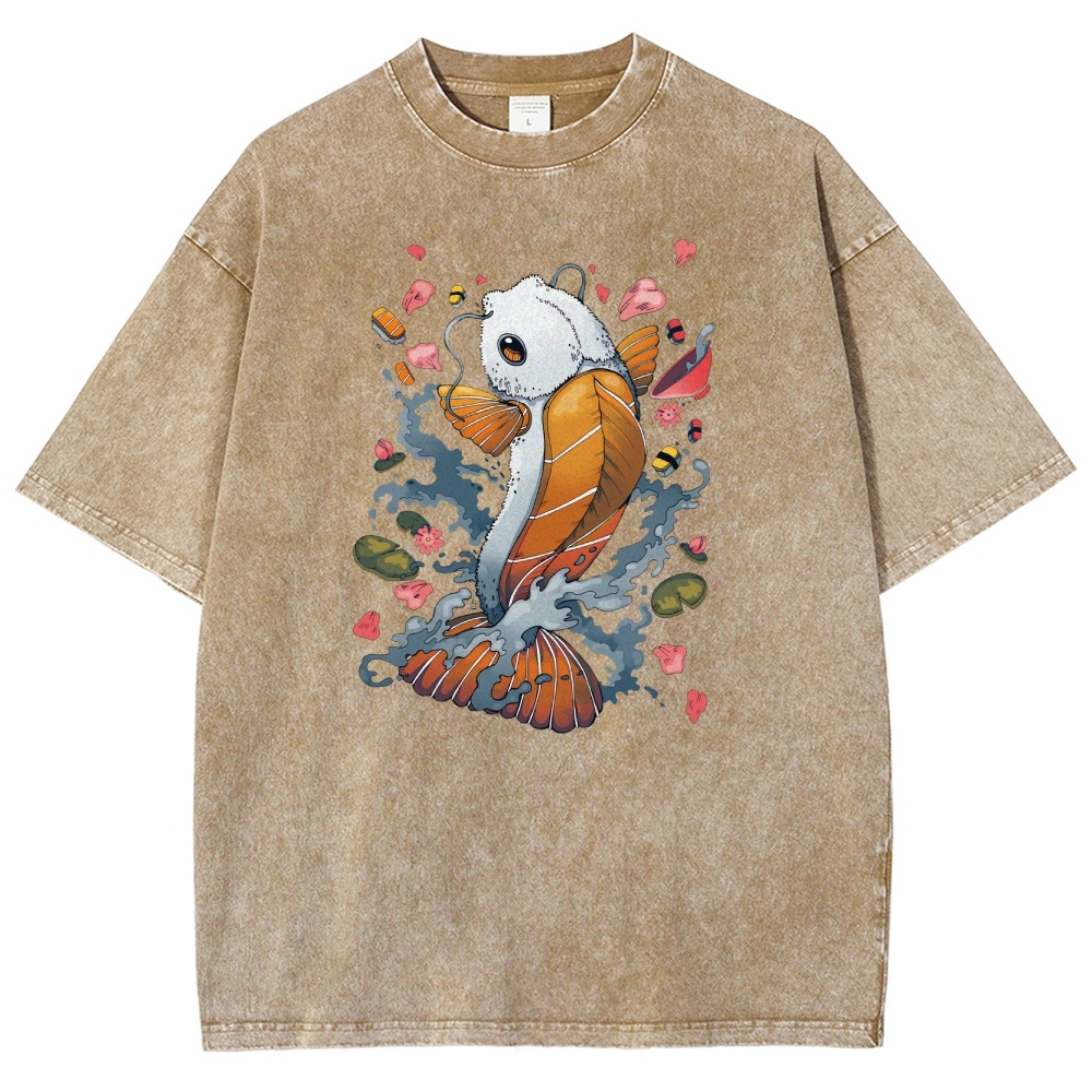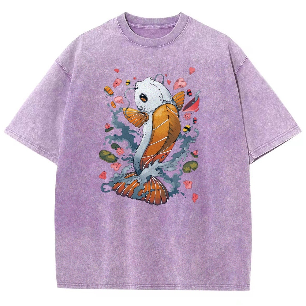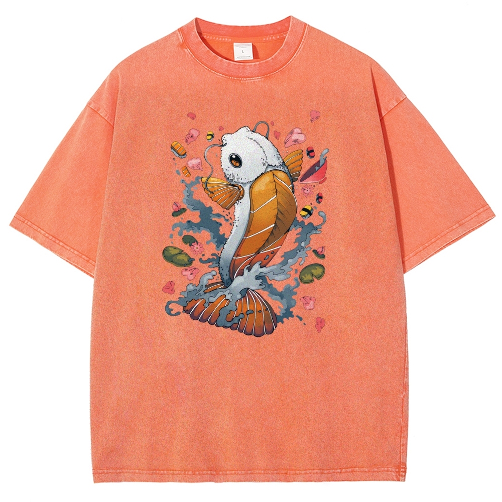 Sushi Fish Printed Washed Vintage Short Sleeves T-Shirt