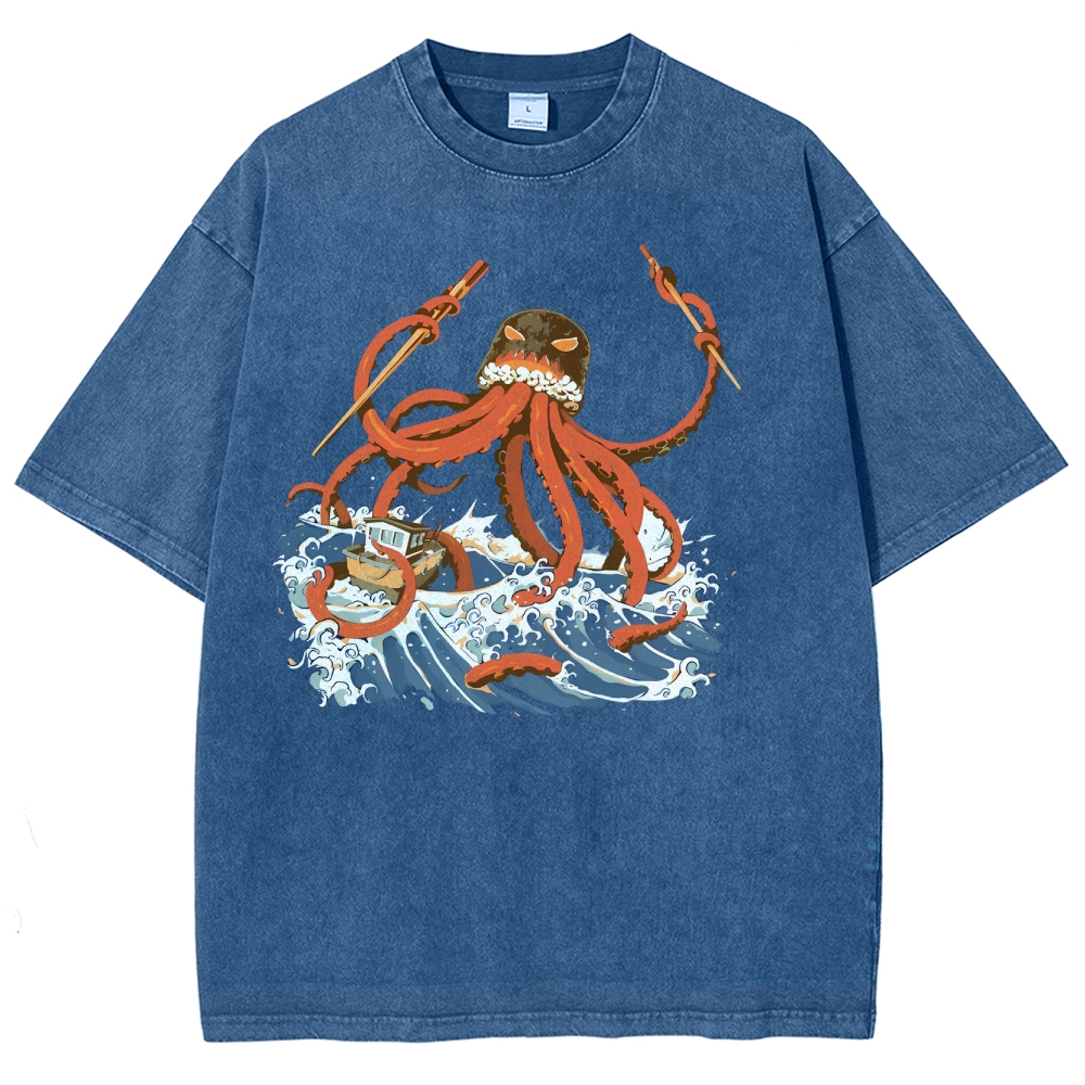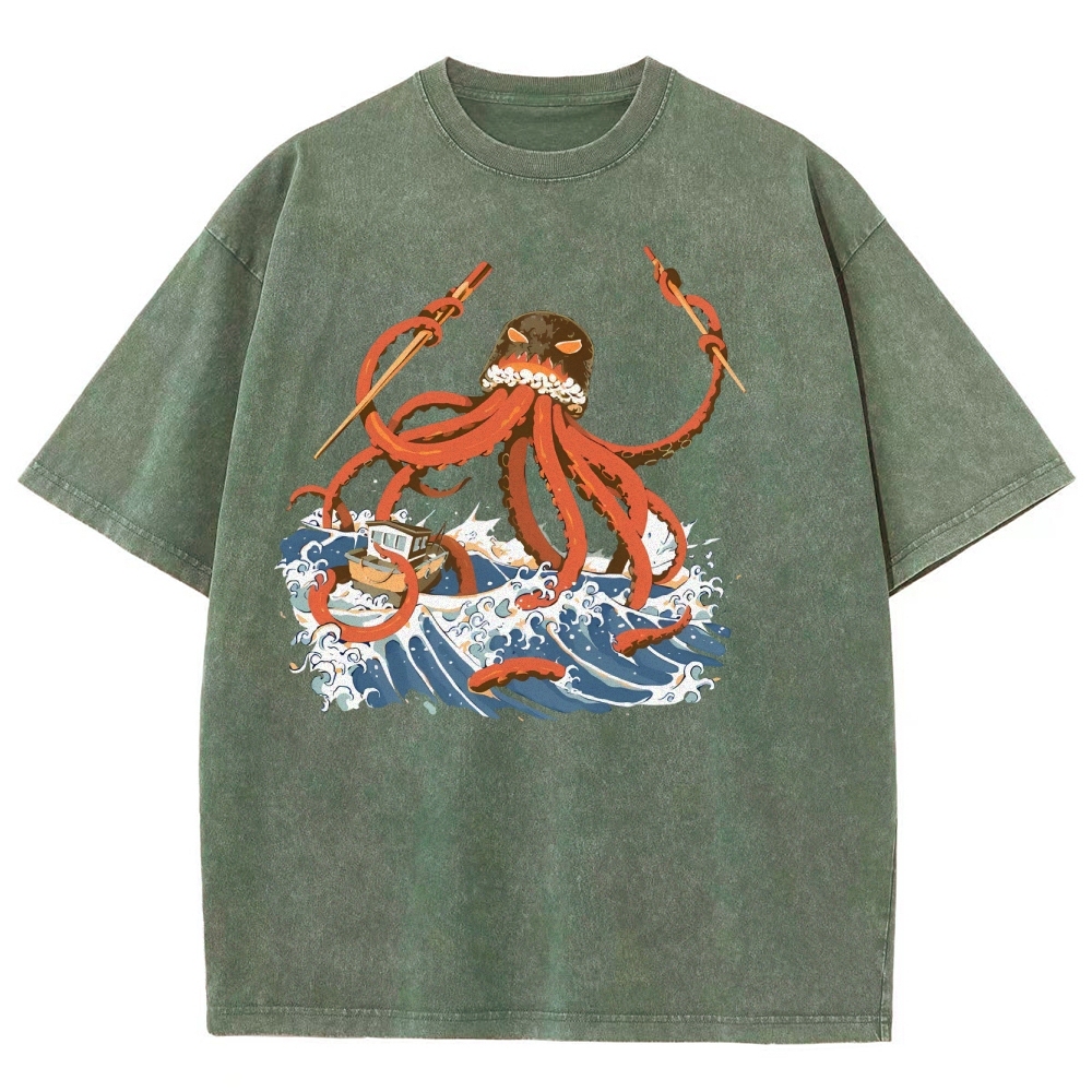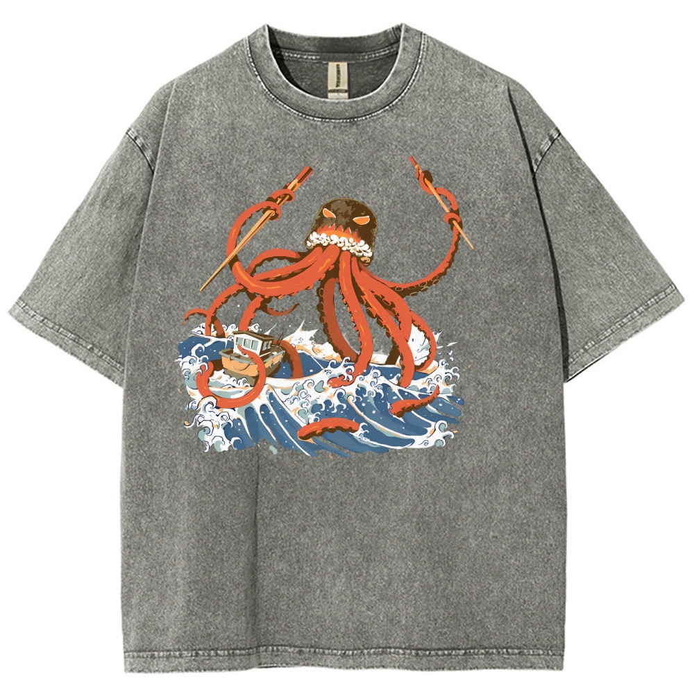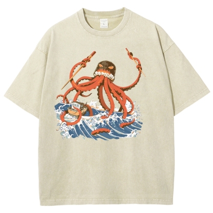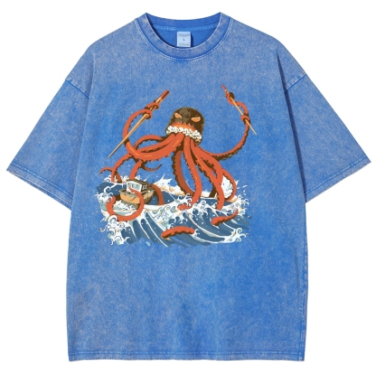 Sushi Octopus Washed Vintage Short Sleeves T-Shirt
