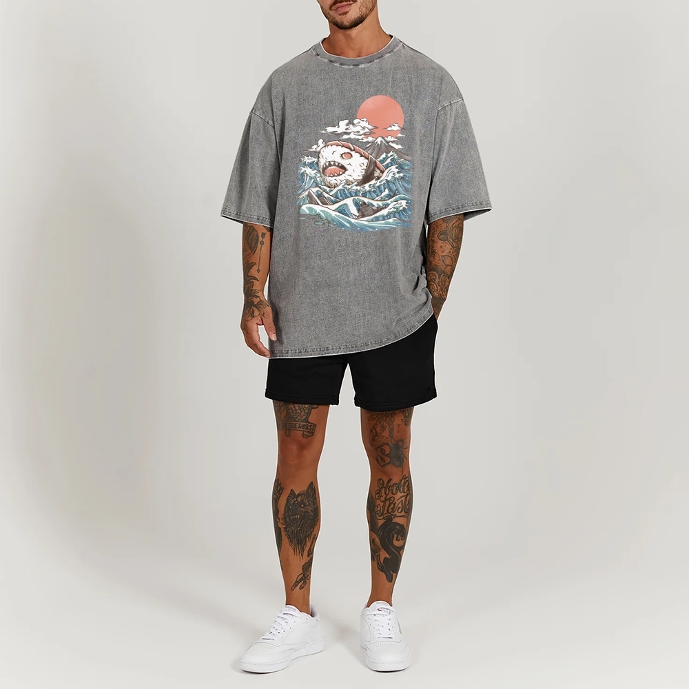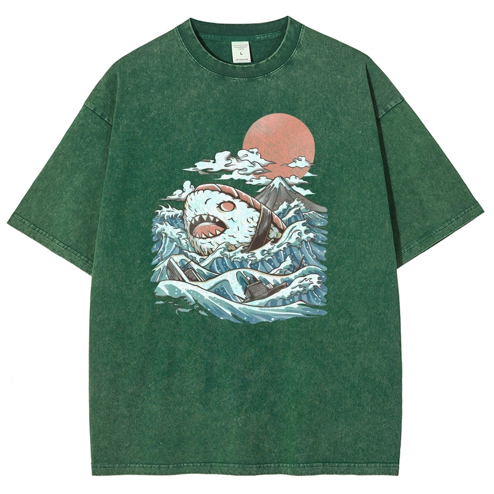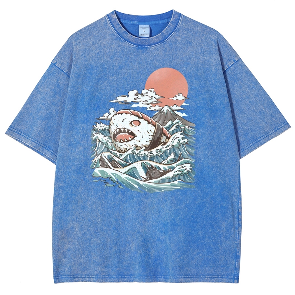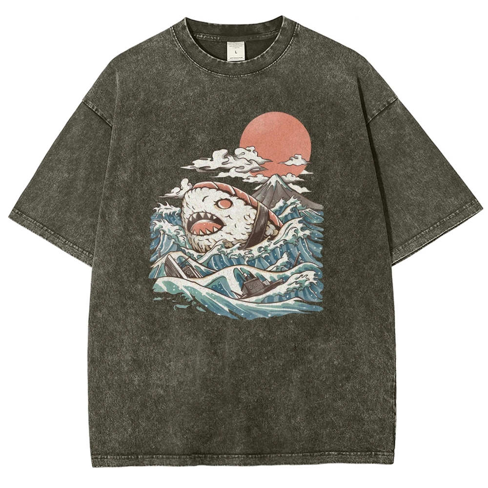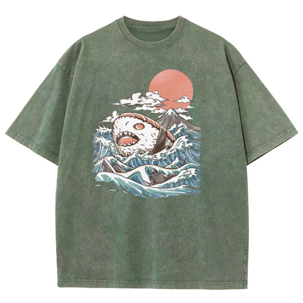 Sushi Shark Washed Vintage Short Sleeves T-Shirt