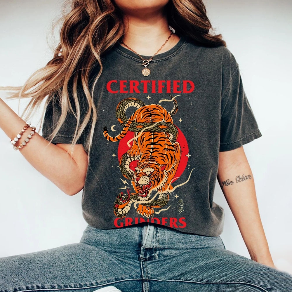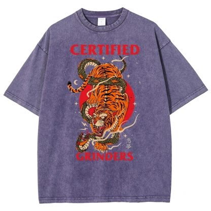 Tiger And Snake Washed Vintage Short Sleeves T-Shirt
