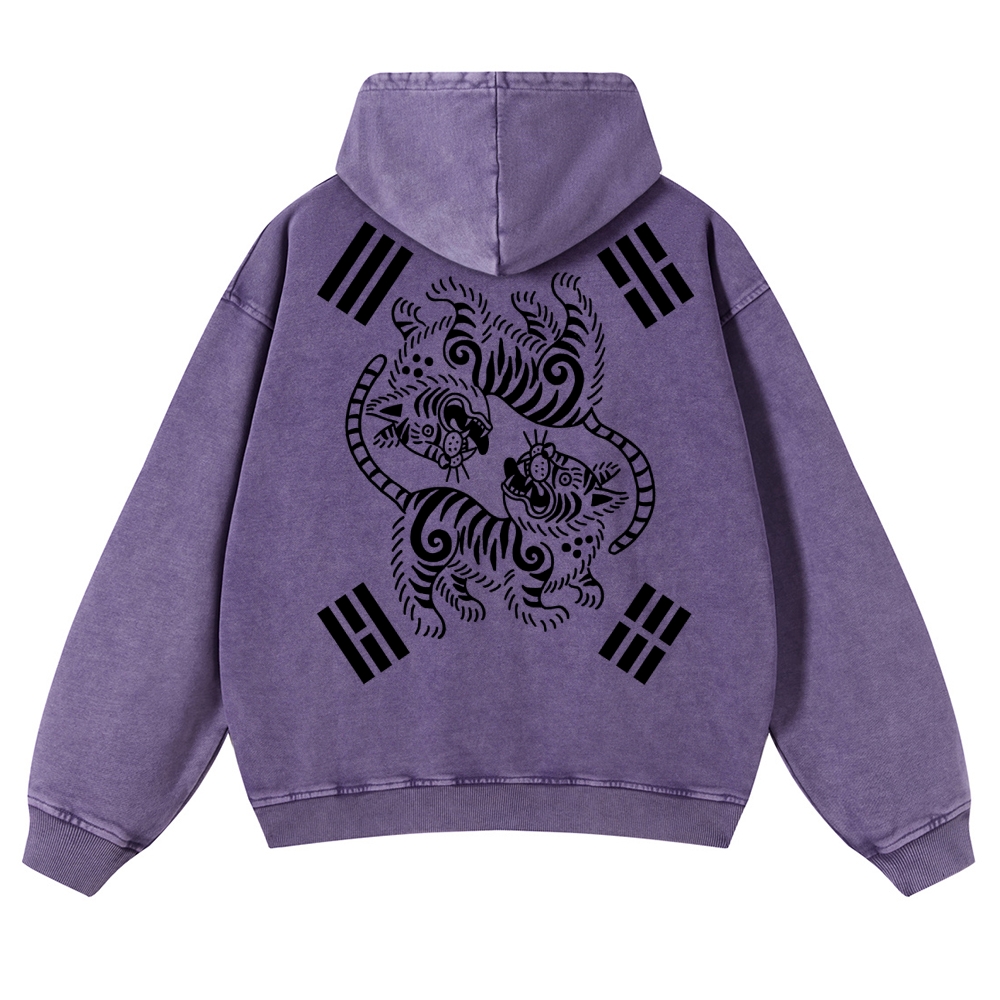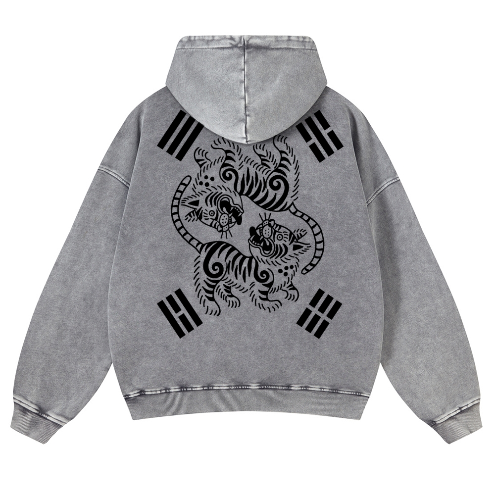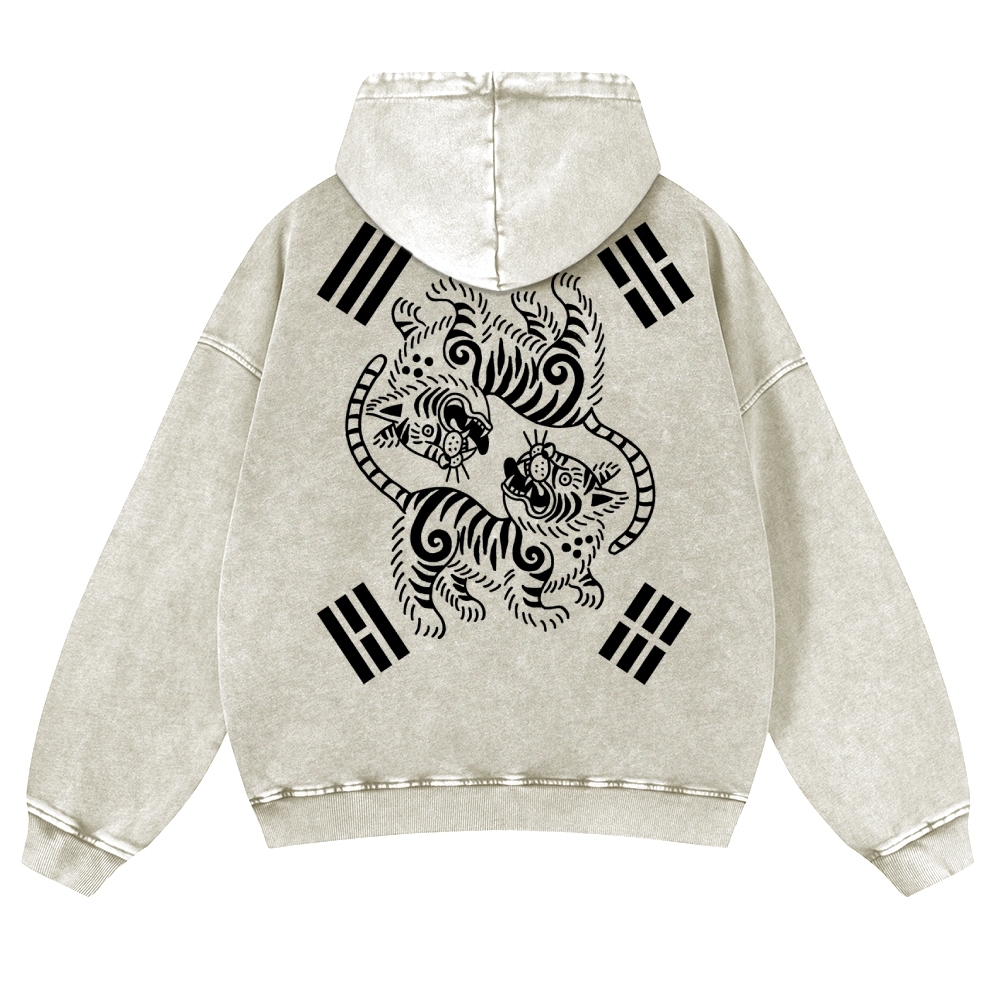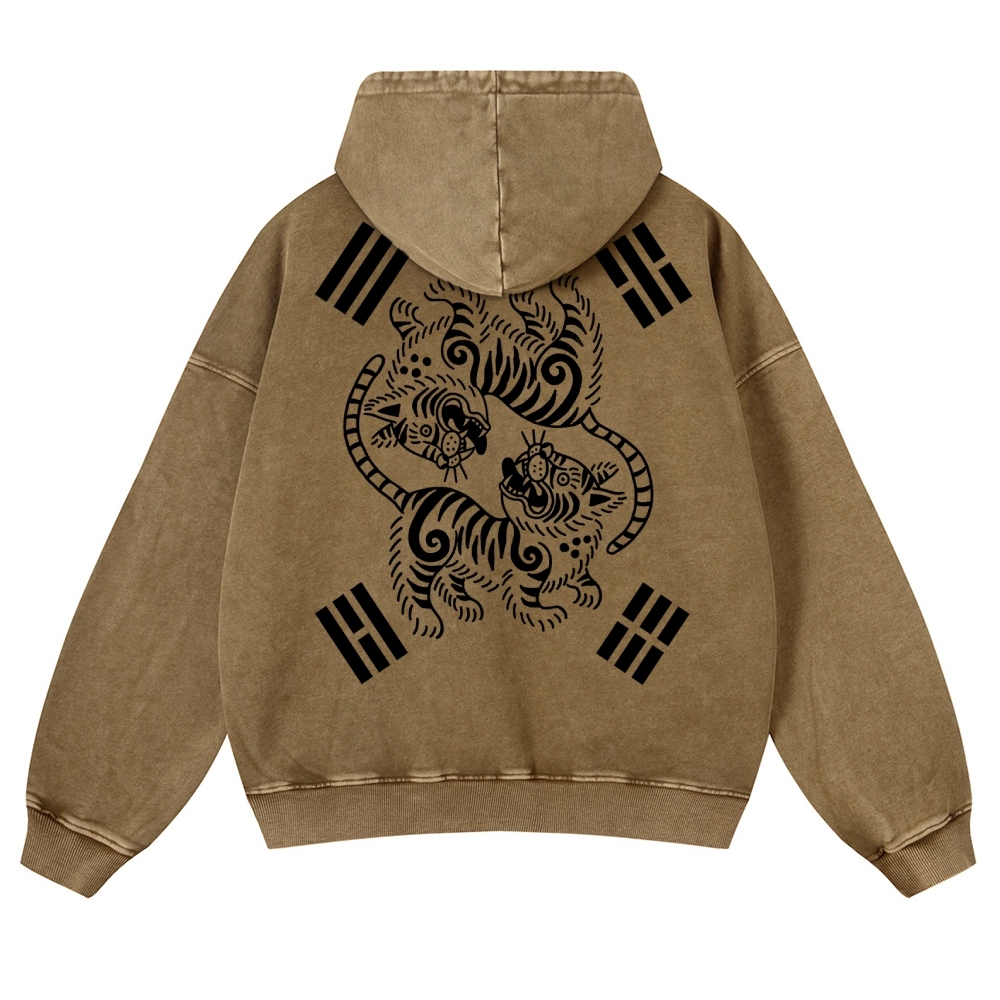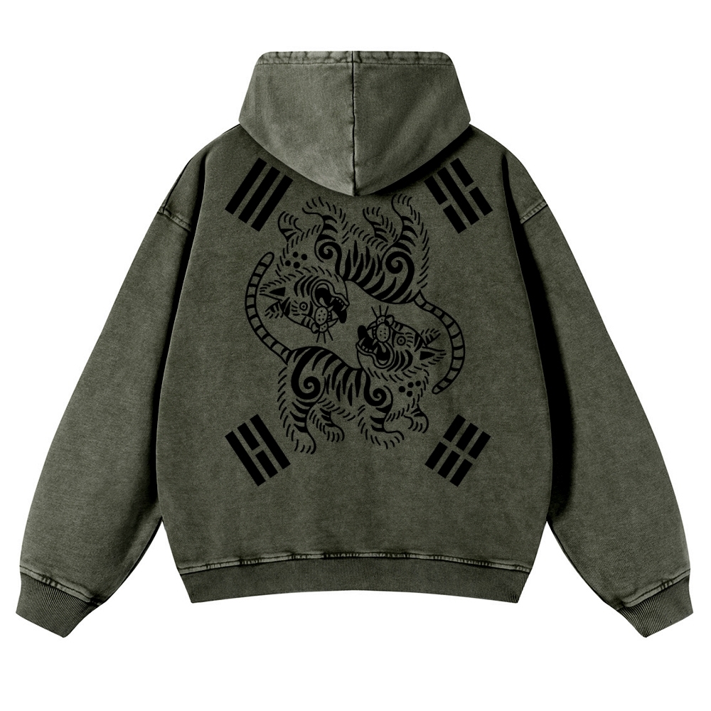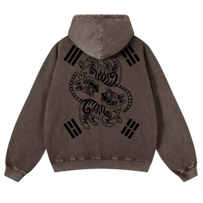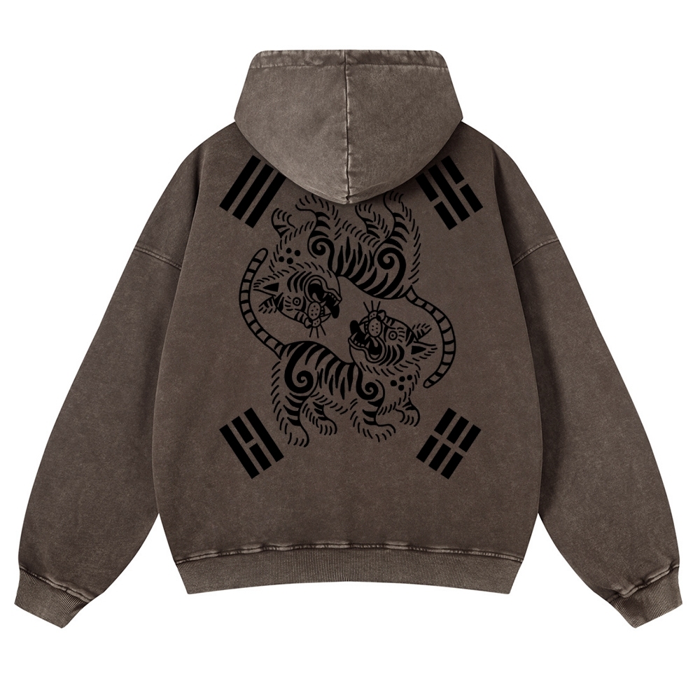 Tiger Eight-Diagram Vintage Washed Hoodie