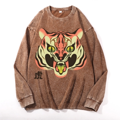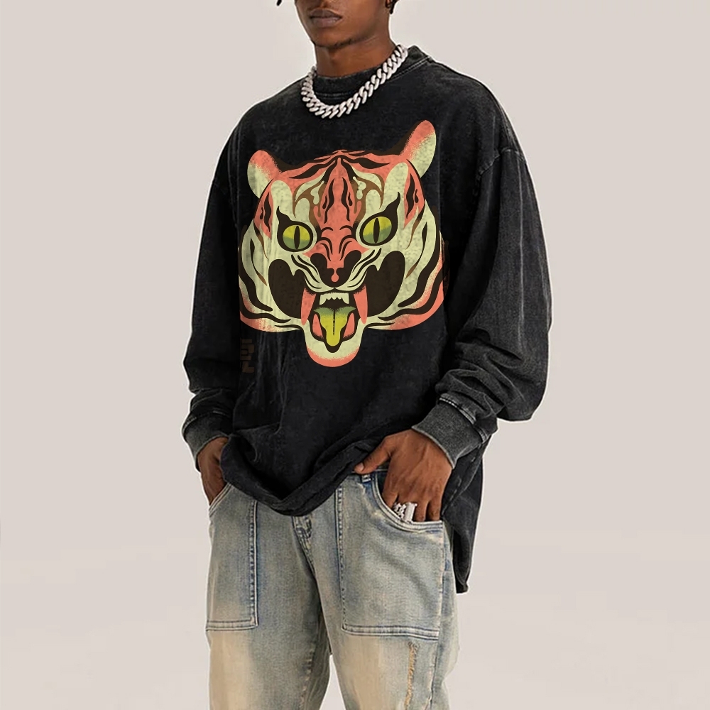 Tiger Roar Deep Washed Vintage Long Sleeves T-Shirt