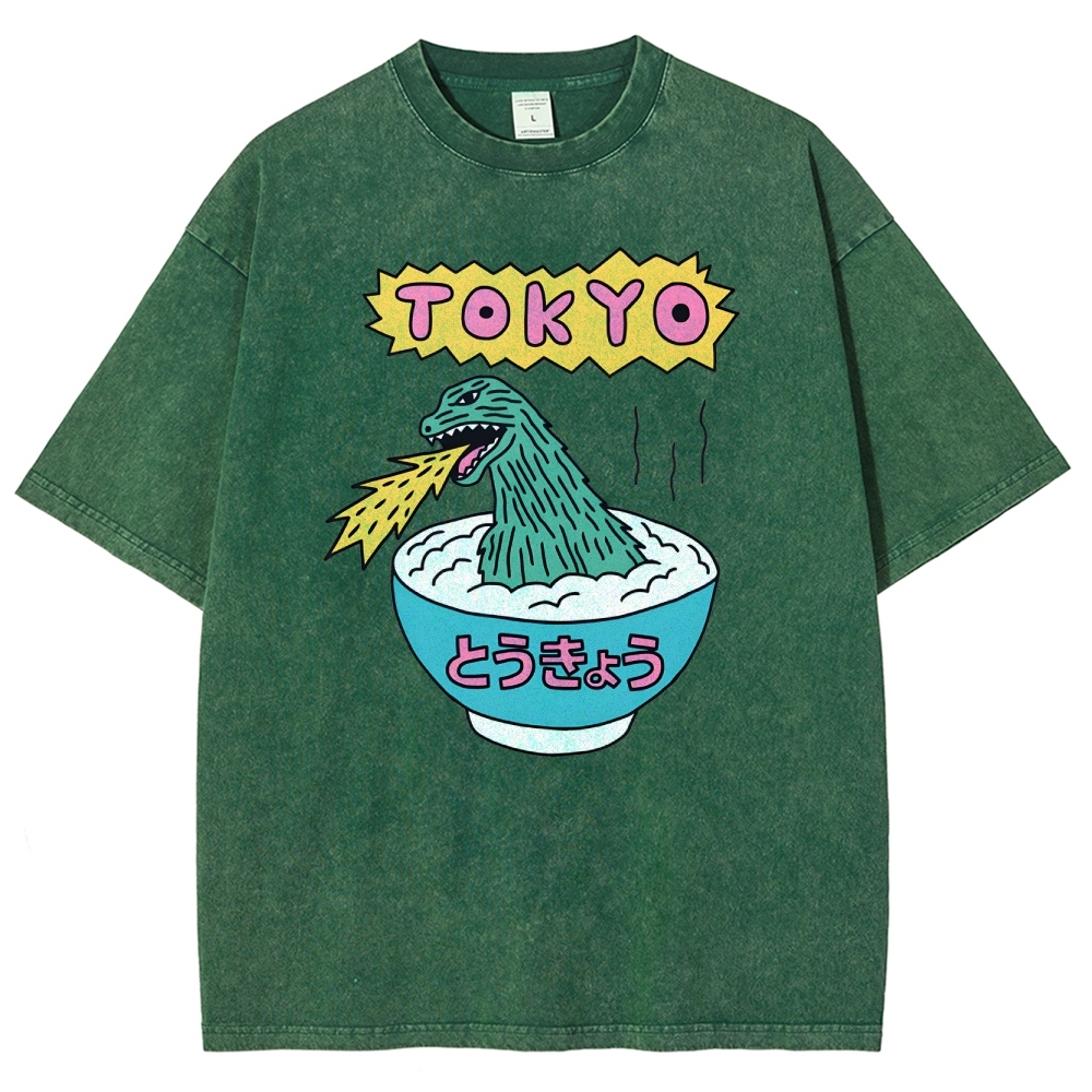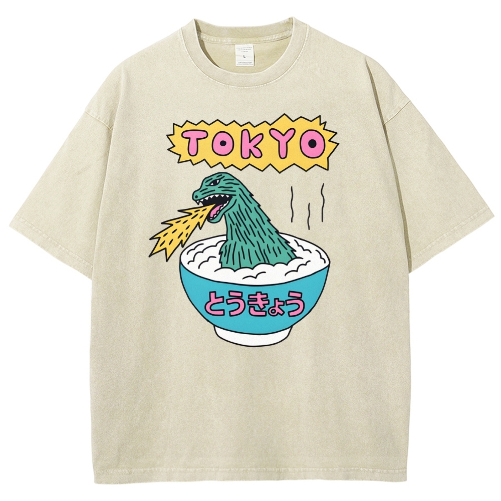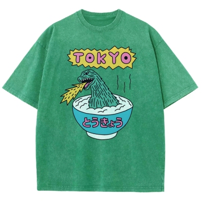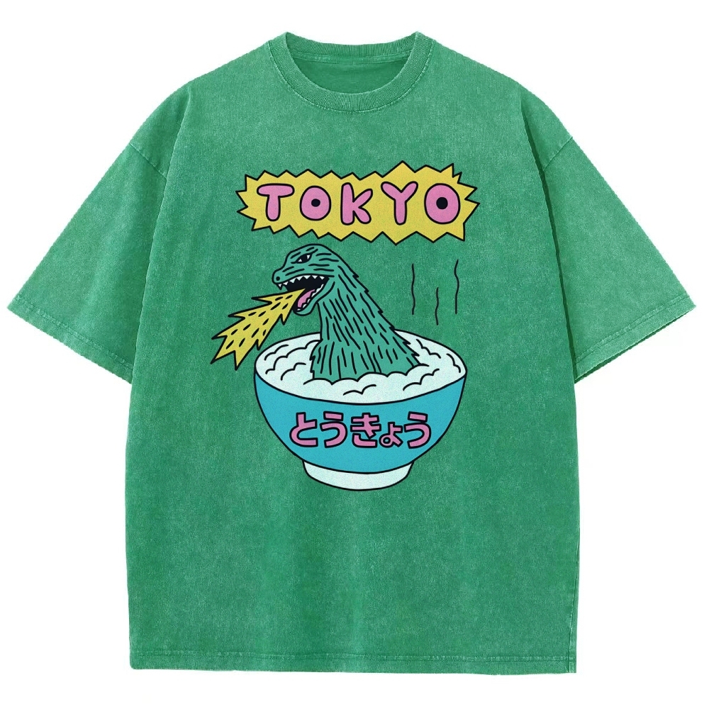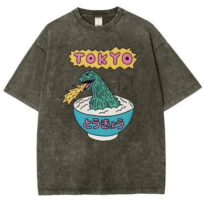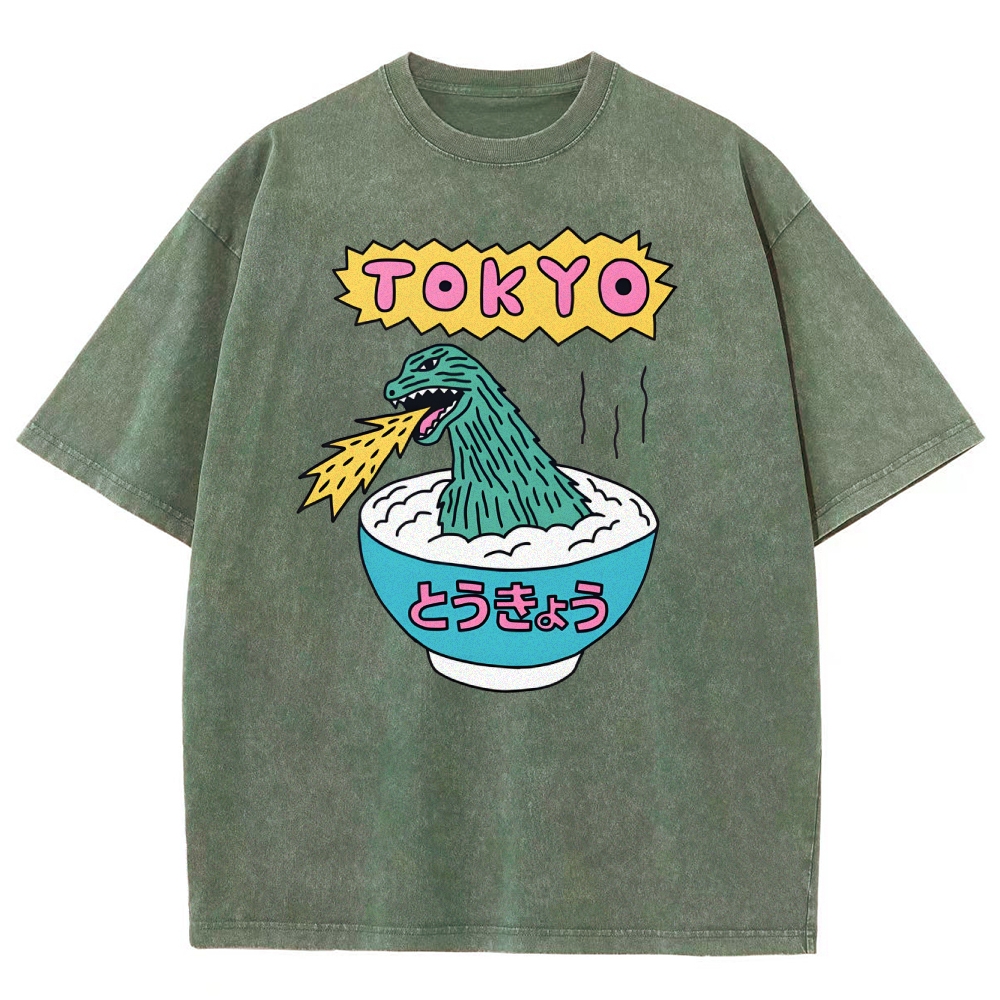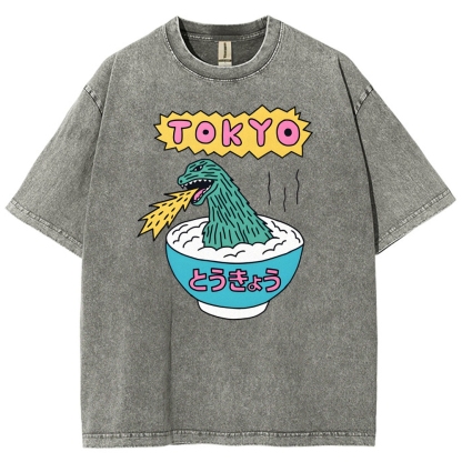 Tokyo Godzilla Prints Washed Vintage Short Sleeves T-Shirt