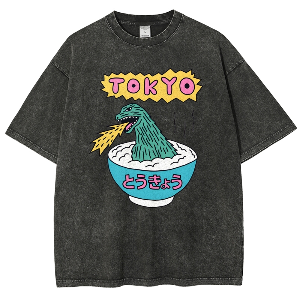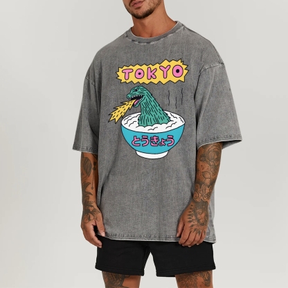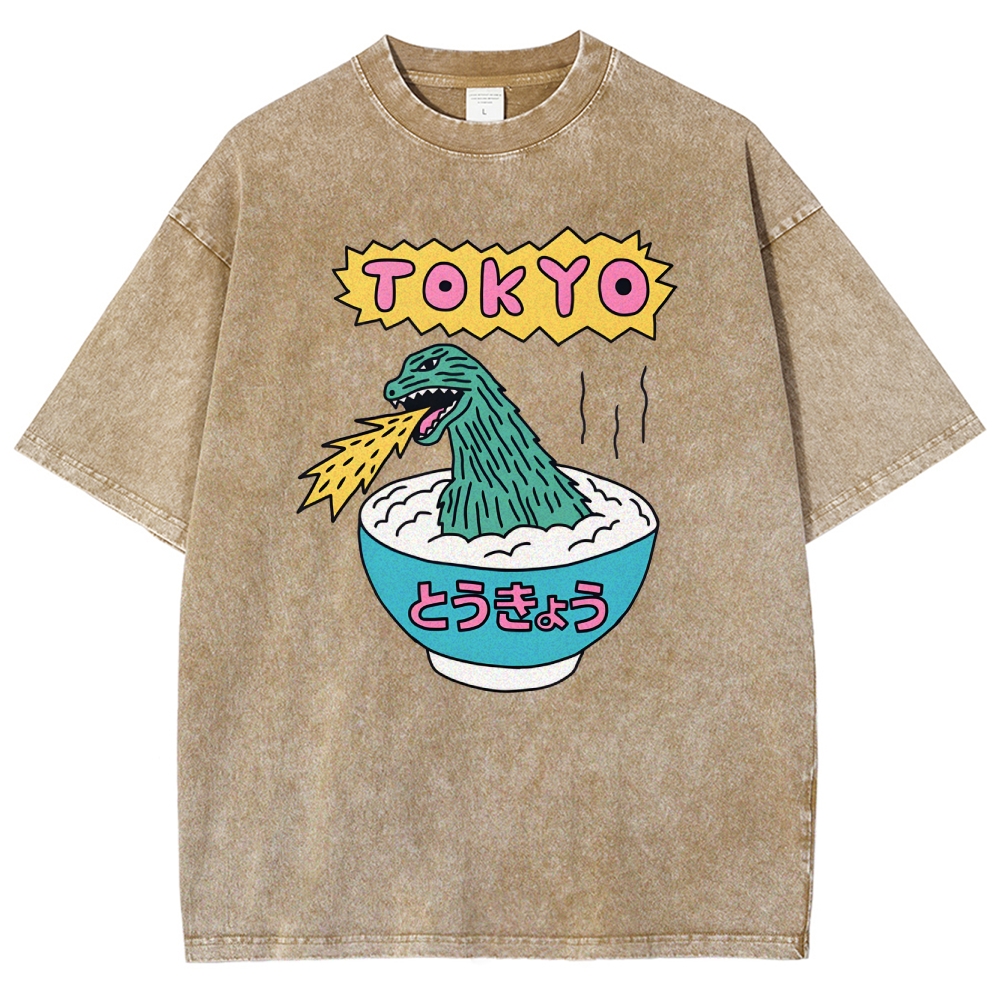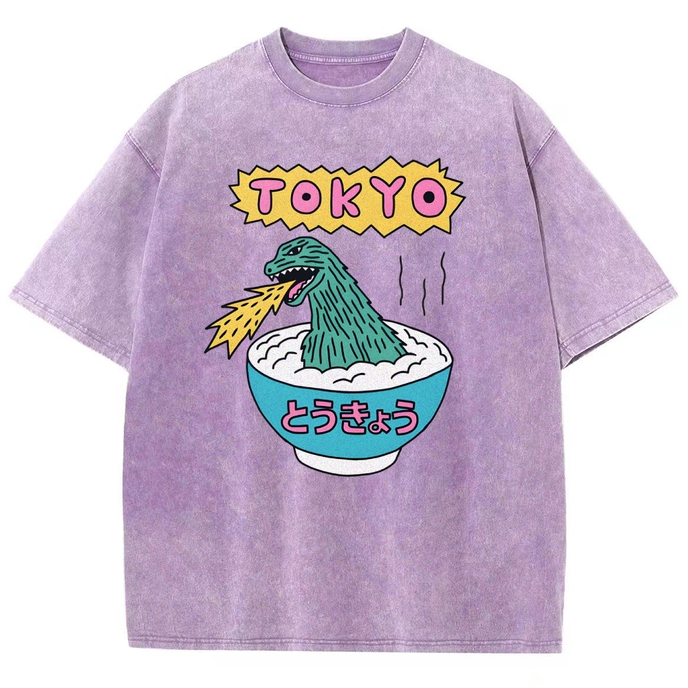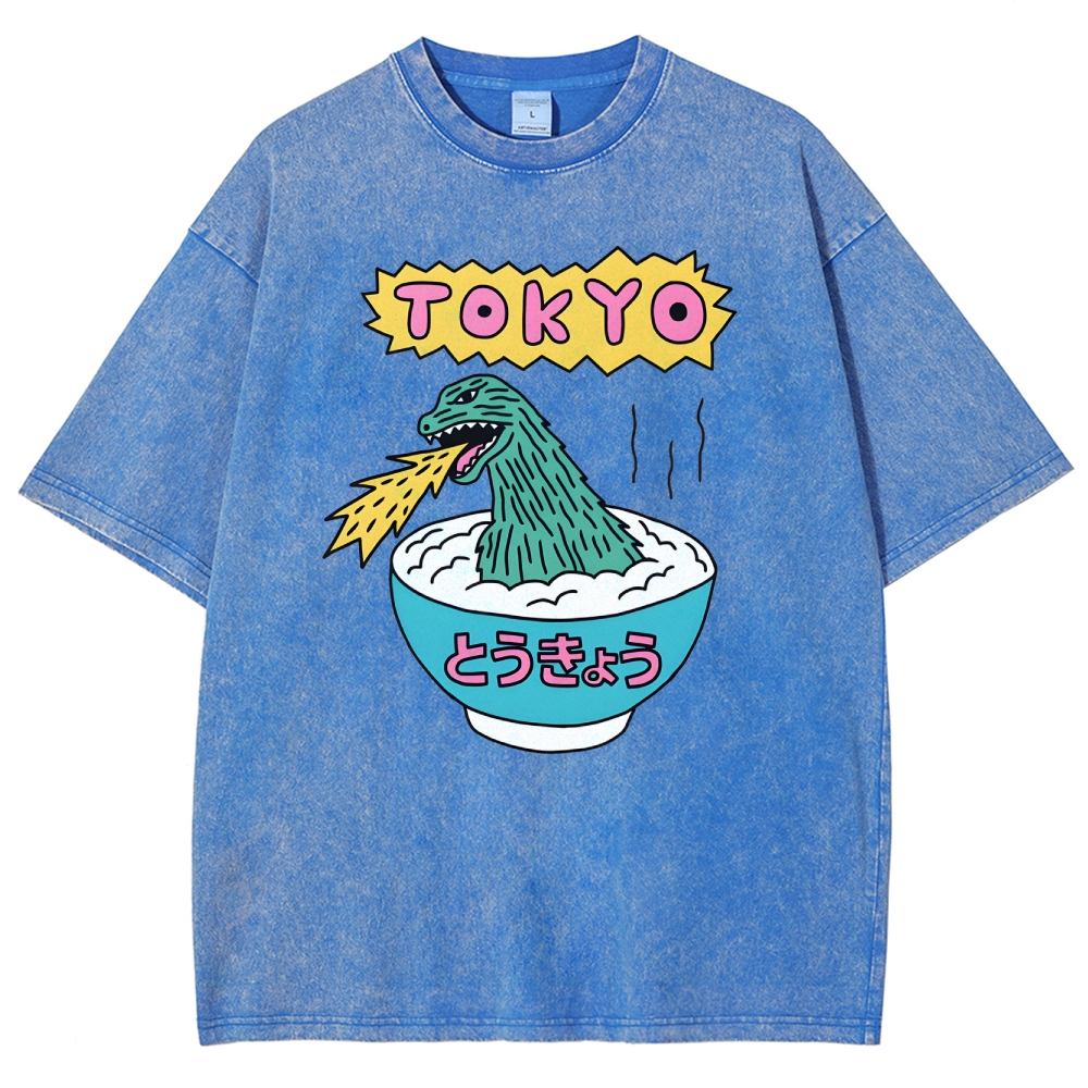 Tokyo Godzilla Prints Washed Vintage Short Sleeves T-Shirt