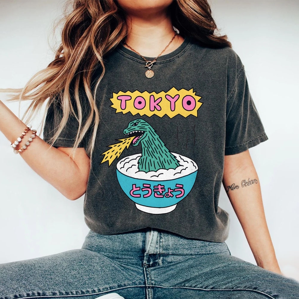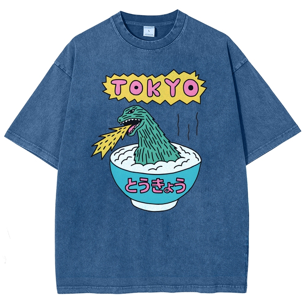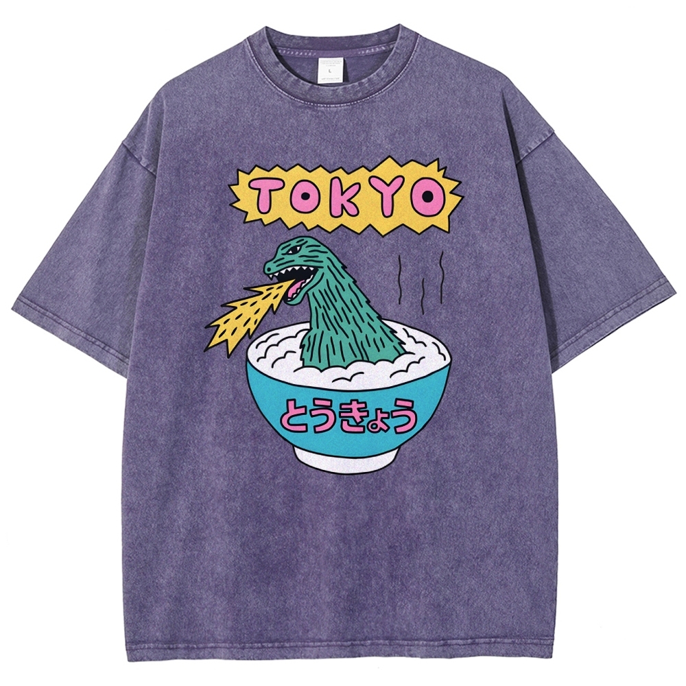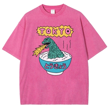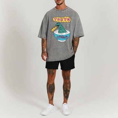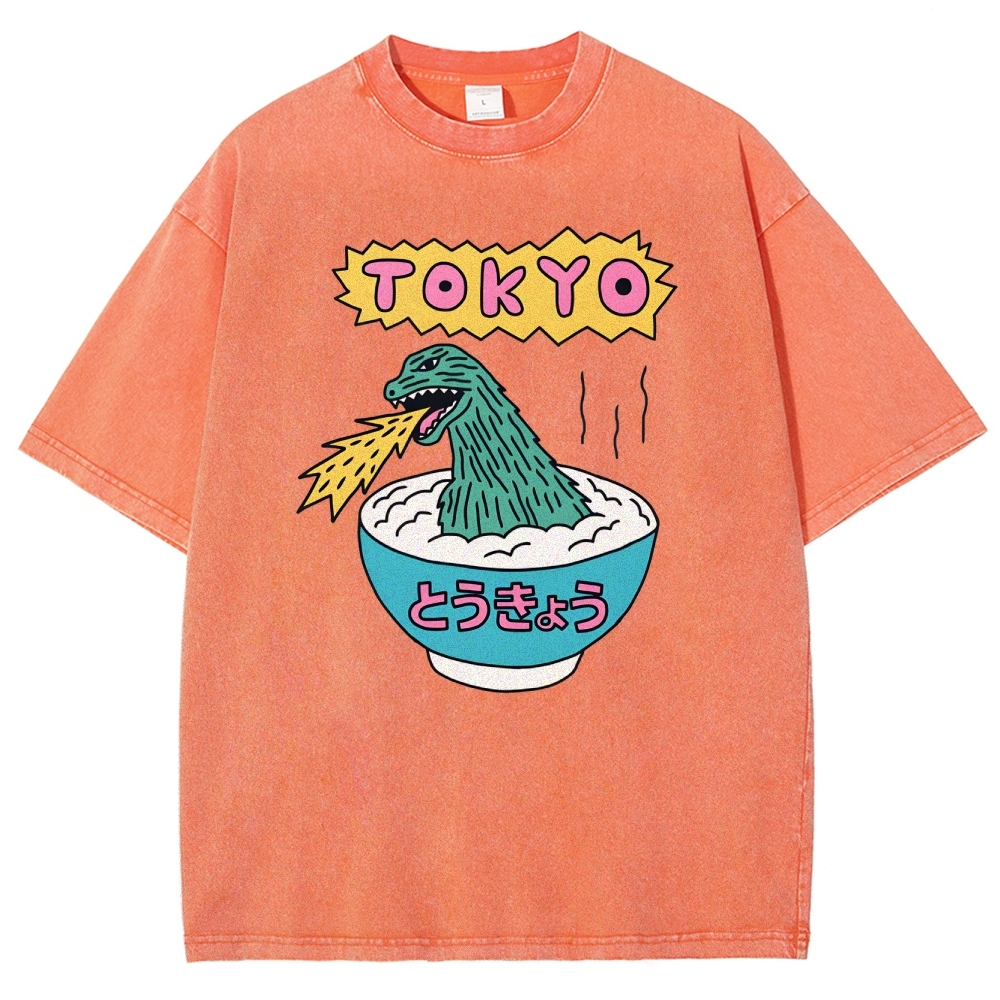 Tokyo Godzilla Prints Washed Vintage Short Sleeves T-Shirt