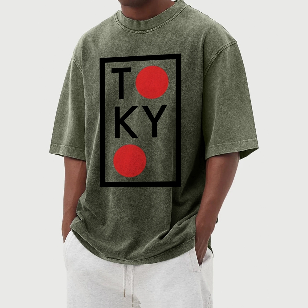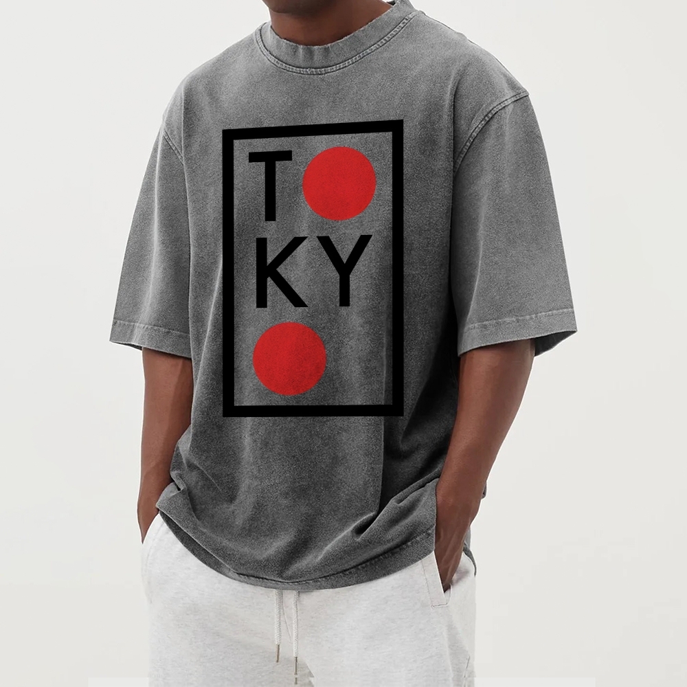 Tokyo Letter Pattern Washed Vintage Short Sleeves T-Shirt