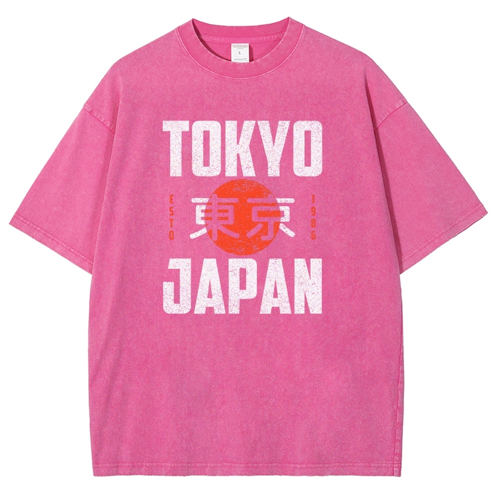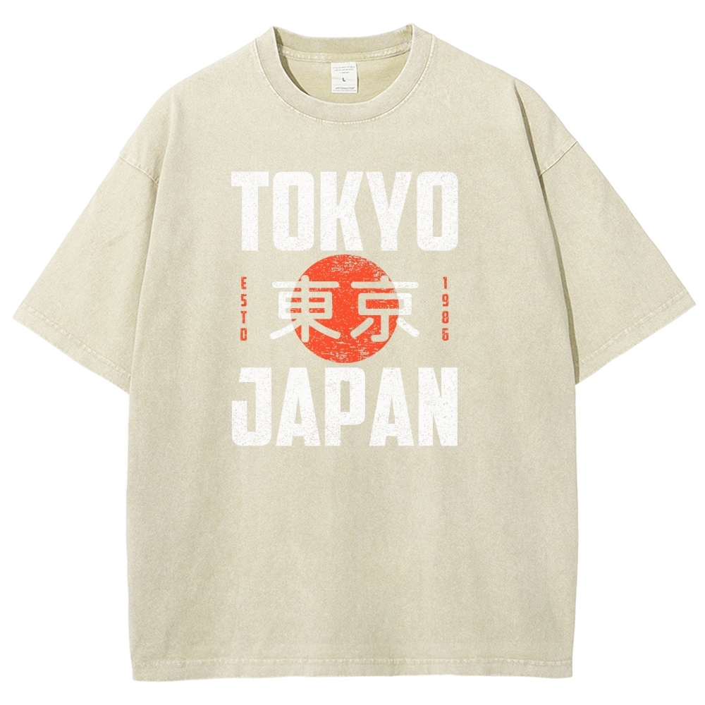 Tokyo Pattern Prints Washed Vintage Short Sleeves T-Shirt