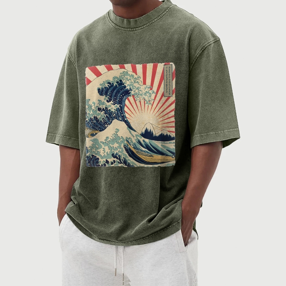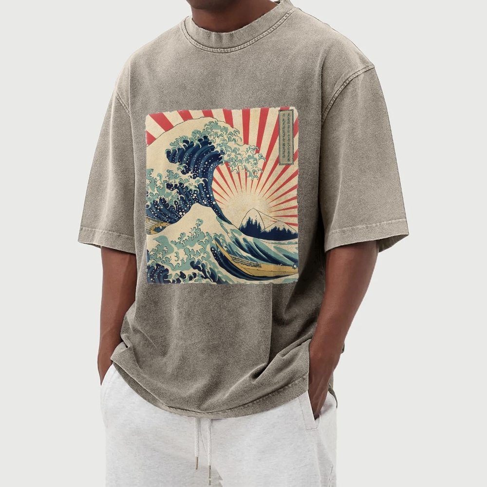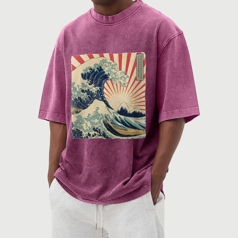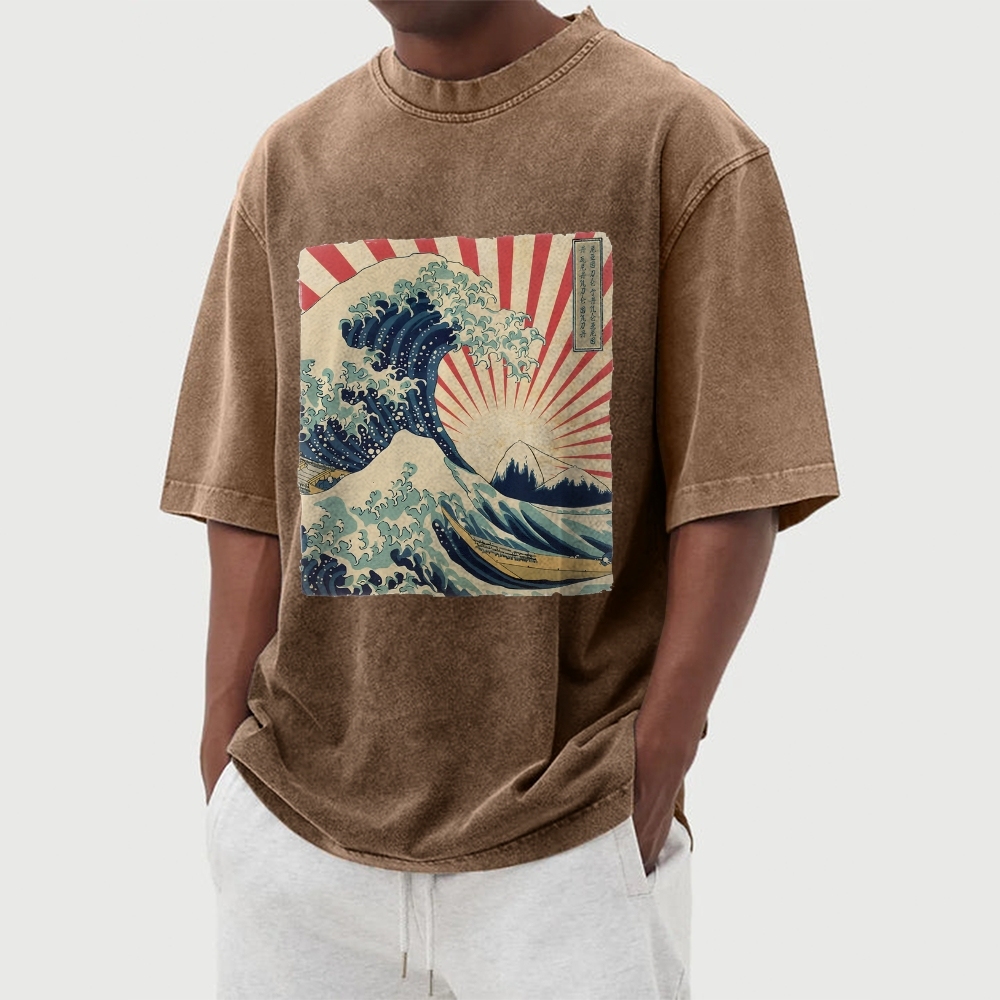 Ukiyoe Wave Washed Vintage Short Sleeves T-Shirt