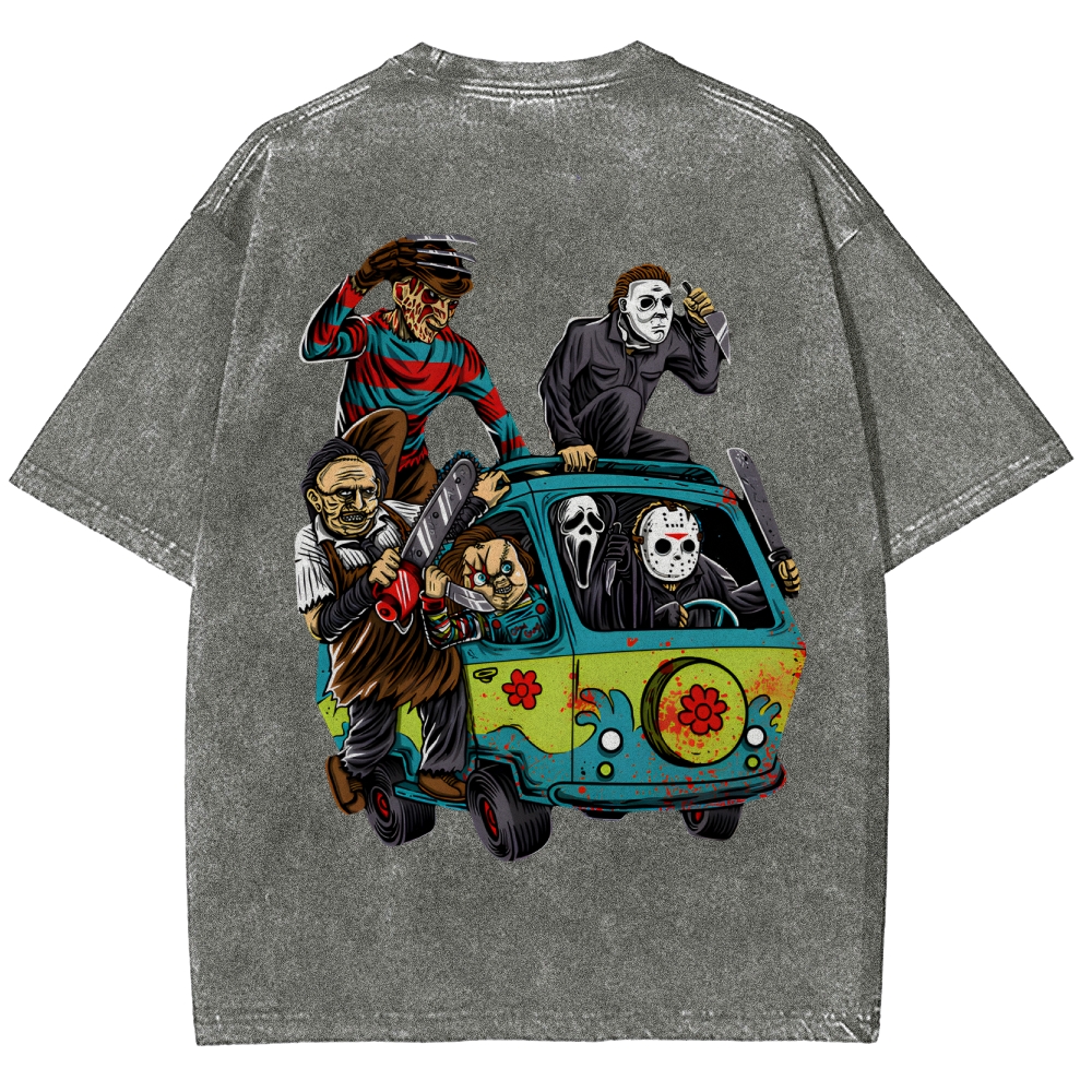 Unisex Fit Halloween Horror Mystery Van Washed T-Shirt
