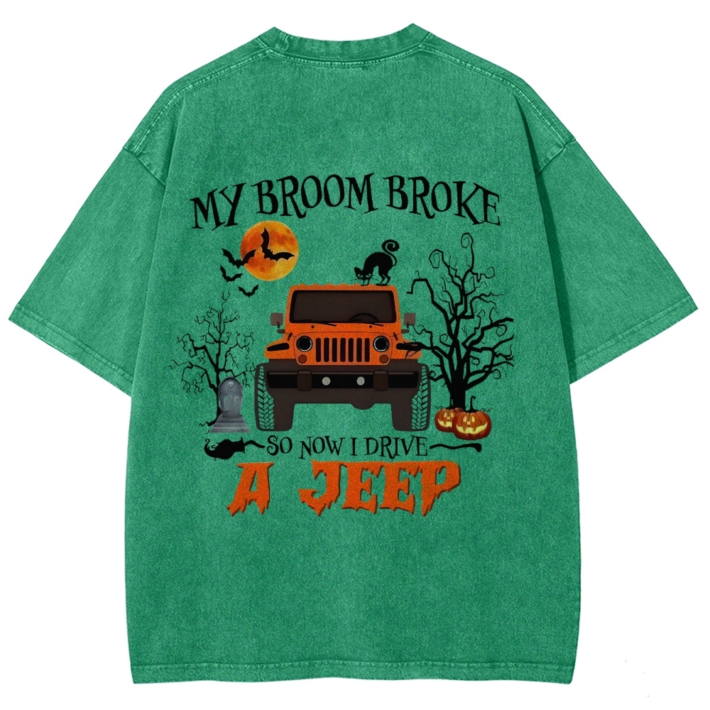 Unisex Fit My Broom Broke So Now I Drive A Jp Halloween Double Washed T-Shirt