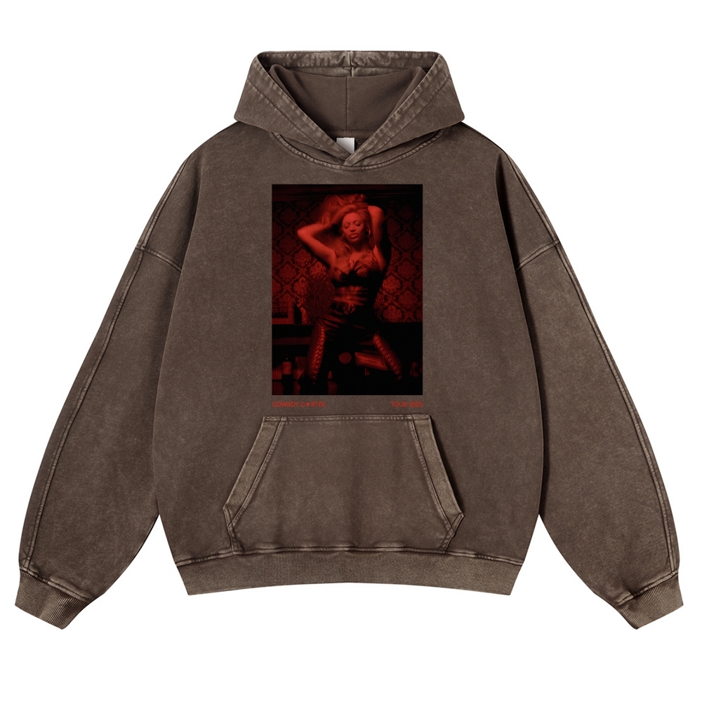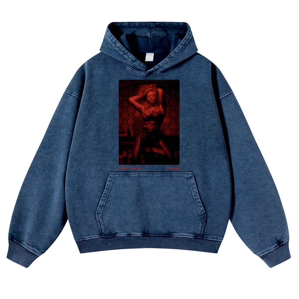 Unisex Fit Vintage Beyoncé Cowboy Carte Washed Hoodie