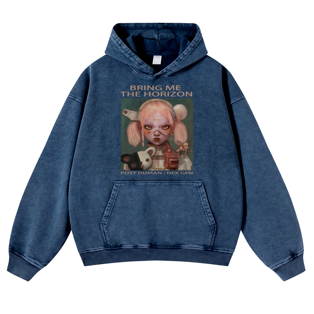 Unisex Fit Vintage "Metal Unique Print " Washed Hoodie