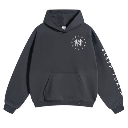 Unisex Fit Vintage Print Solid Cotton Hoodie