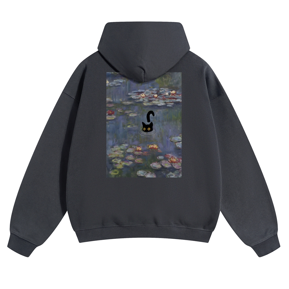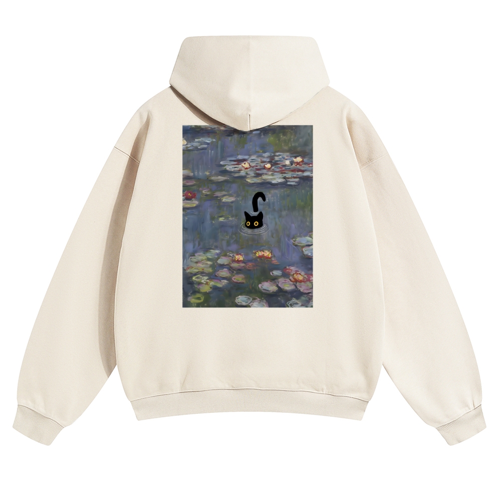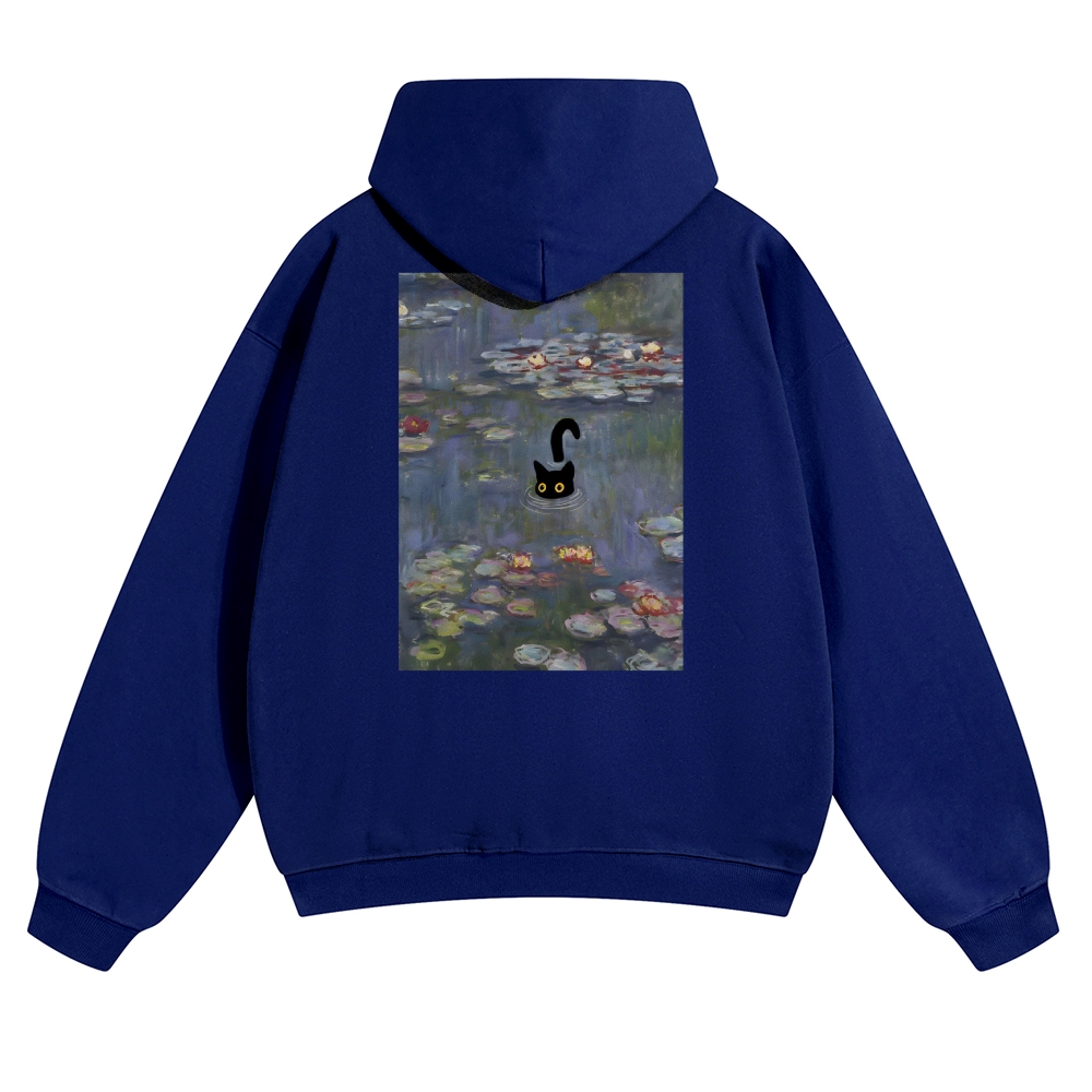 Water Lilies Cat Unisex Casual Prints Hoodie
